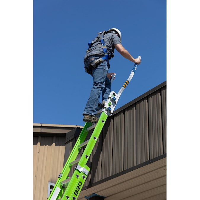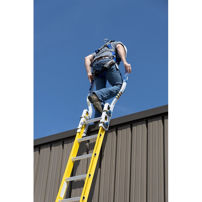 • Helps to provide a safe and easy transition from the extension ladder to a secondary surface