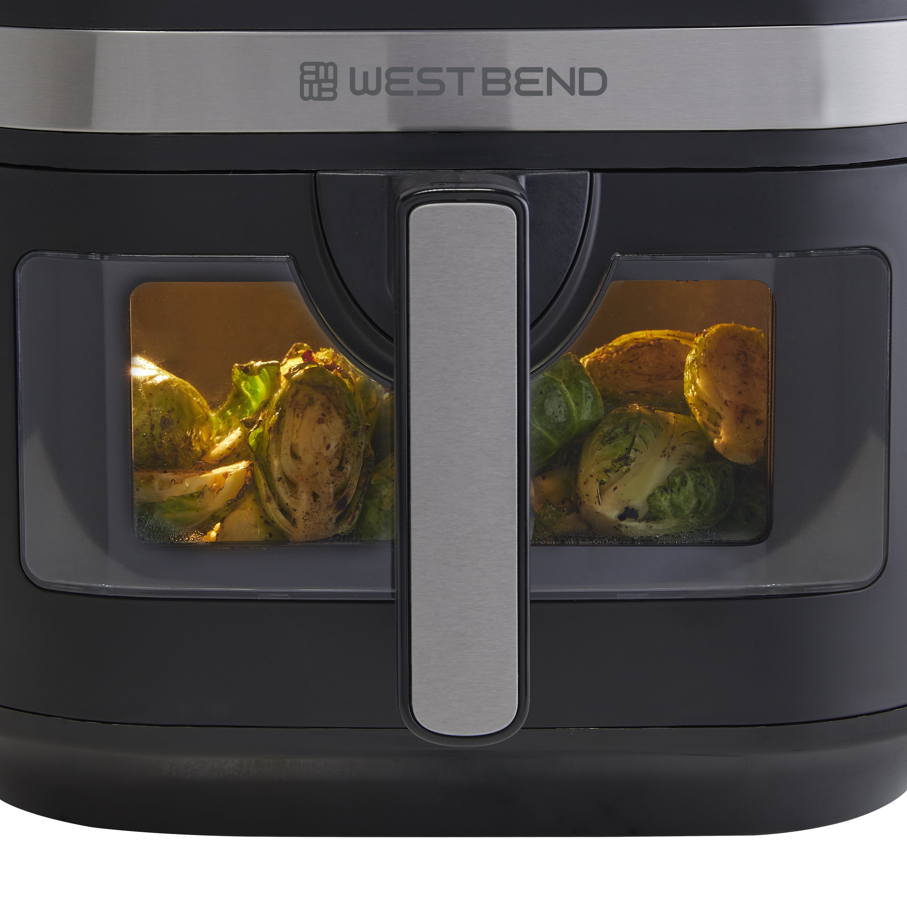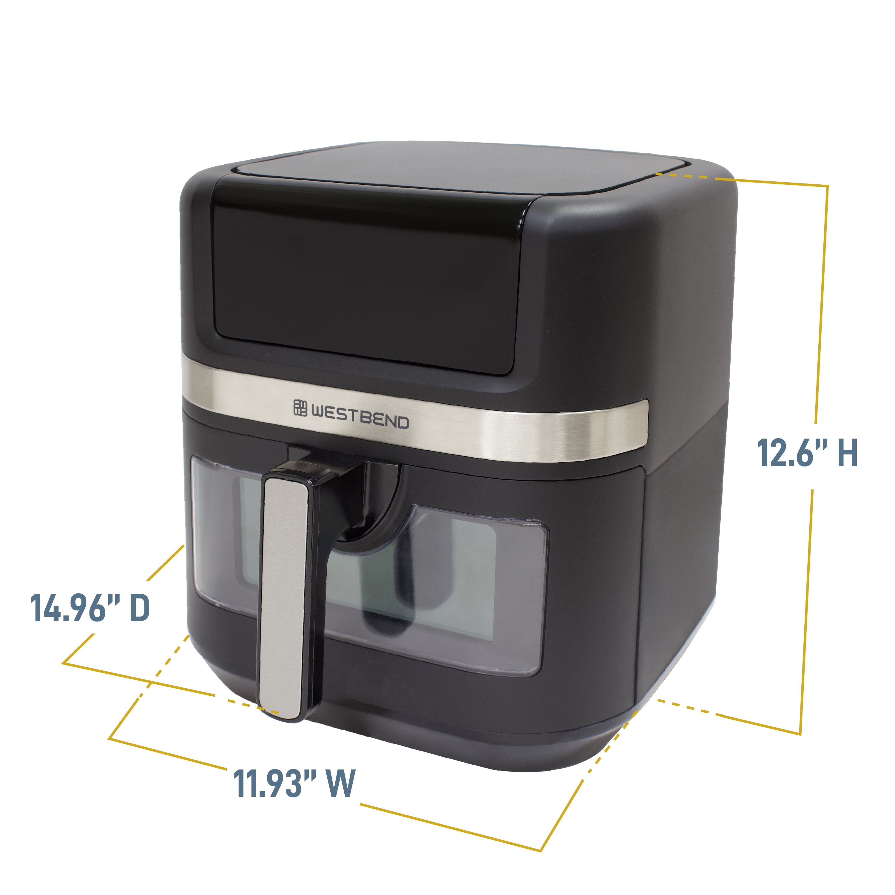 Discover a quick and easy way to cook healthy, delicious food with the West Bend Air Fryer. The 7-quart capacity is perfect for feeding a whole family. Take the guesswork out of preparing your favorite foods to crispy perfection with 13 one-touch preset functions (Air Fry, Bake, Broil, Chicken, Dehydrate, Fish, Fries, Frozen, Keep Warm, Preheat, Roast, Reheat and Vegetables). The touchscreen LED digital interface is easy to read and access while you’re cooking. The baskets feature an easy-view clear window so you can watch as your favorite recipe is cooked to perfection. The frying basket features our strong, PTFE-free Diamond Shield™ infused coating, providing scratch-resistant durability and preventing foods from sticking for easy cleanup. The easy-to-grip, ergonomic handle is cool to the touch, making it safe to pull while cooking. This easy-to-use large-capacity air fryer will fit nicely on your countertop, and the sleek look complements any kitchen décor. Covered by the West Bend 12-Month Limited Warranty.