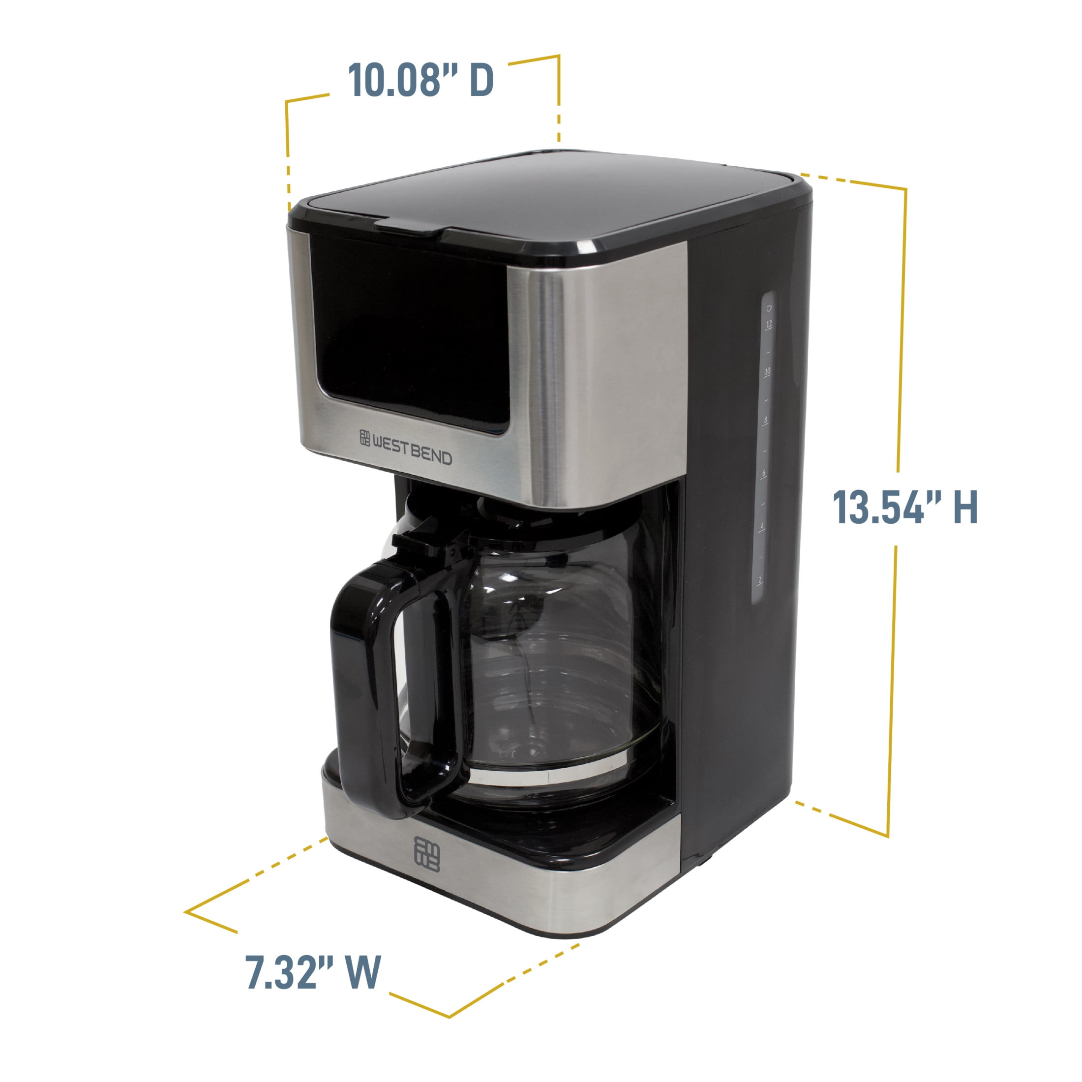 West Bend 12 Cup Hot & Iced Coffee Maker, in Stainless Steel (CMWB12BK13)