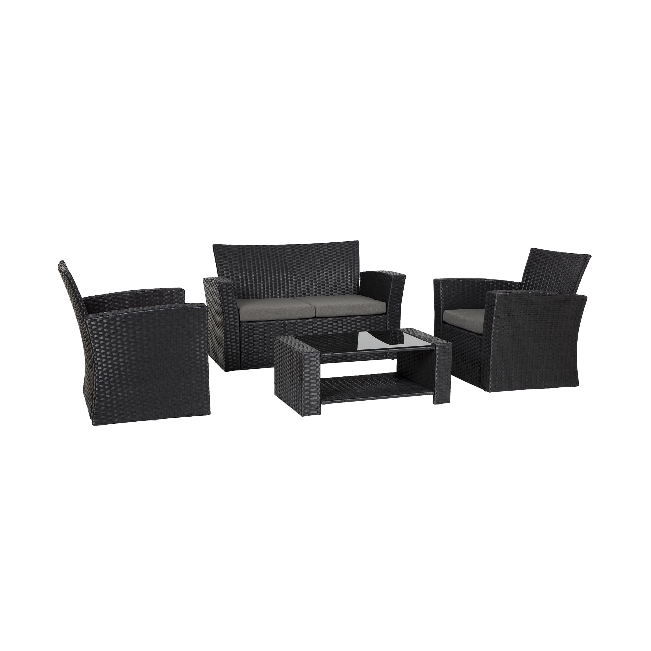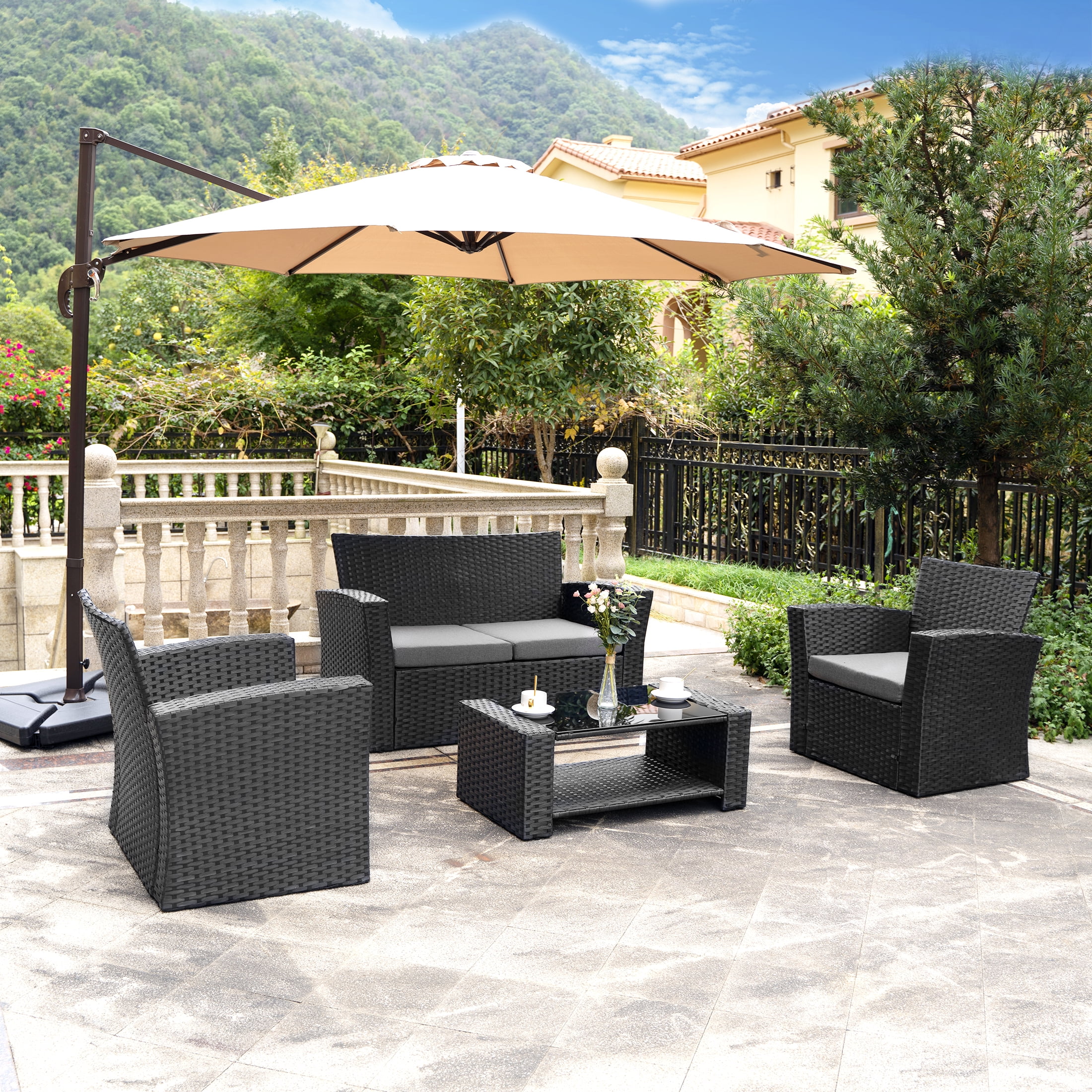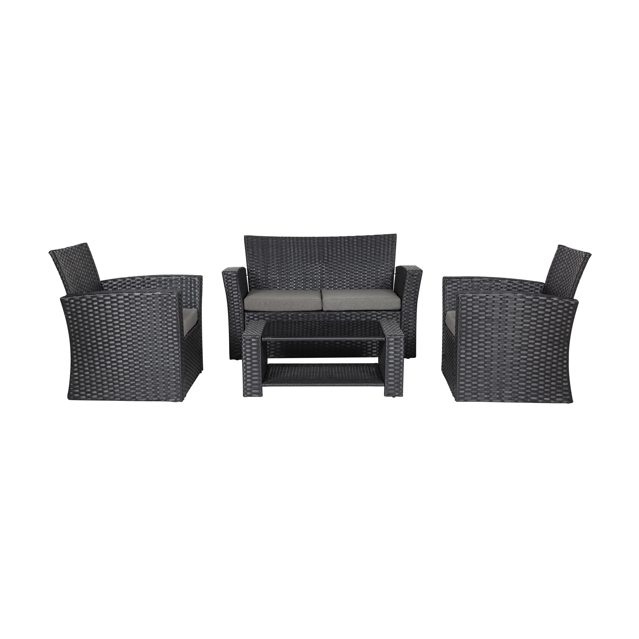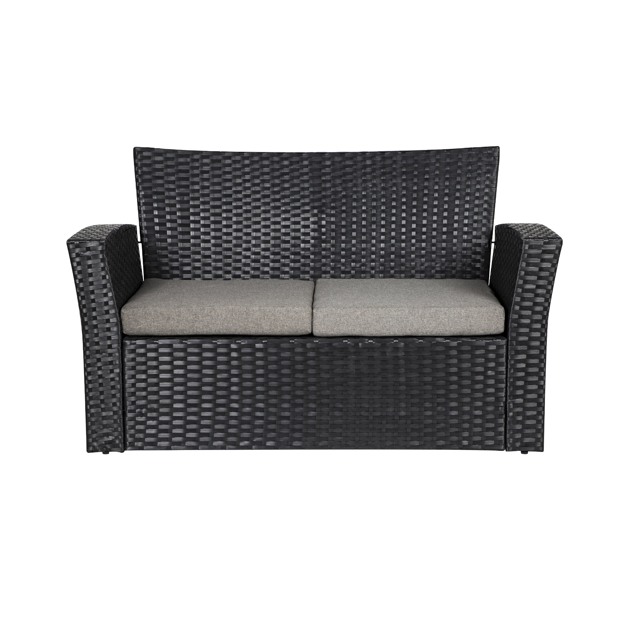 Westin Outdoor 4-Piece Rattan Wicker Conversation Sofa Set with Cushions, Black/Gray