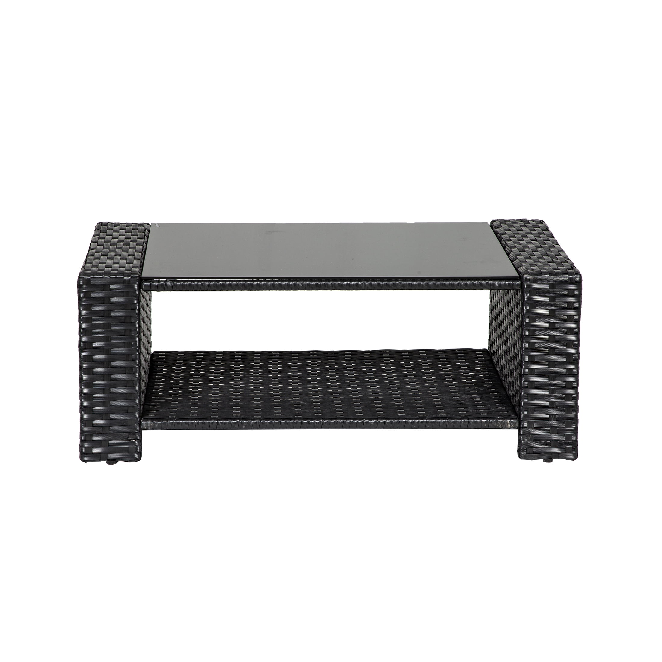 Set Includes: One (1) Sofa Loveseat, Two (2) Armchairs, One (1) Coffee Table Rattan Wicker Removable Seat Cushion Tempered Glass Coffee Table UV and Weather Resistant Simple Assembly Required