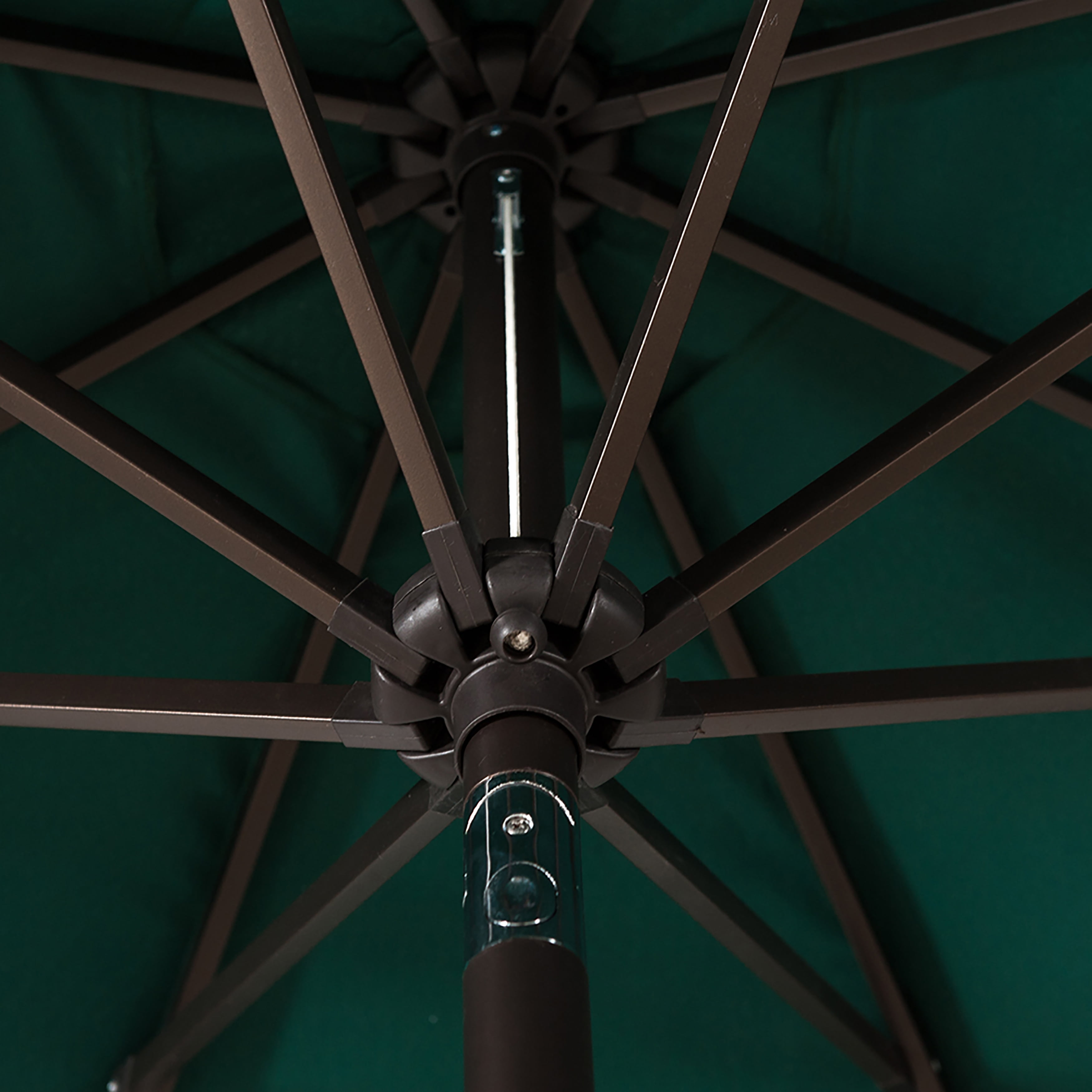 Durable UV & Water Weather Resistant Polyester Canopy Manual Push Button Tilt to cover the sun in any angle Simple to Crank Lift Mechanism Air vented canopy designed to facilitate air flow and windy climates Strong and Durable Powder Coated Steel Frame Perfect for Outdoor Patio Garden, Dining Table, Pool, Lounge area Foldable: Includes stitched on Canopy tie downs Crank and Tilt Mechanism