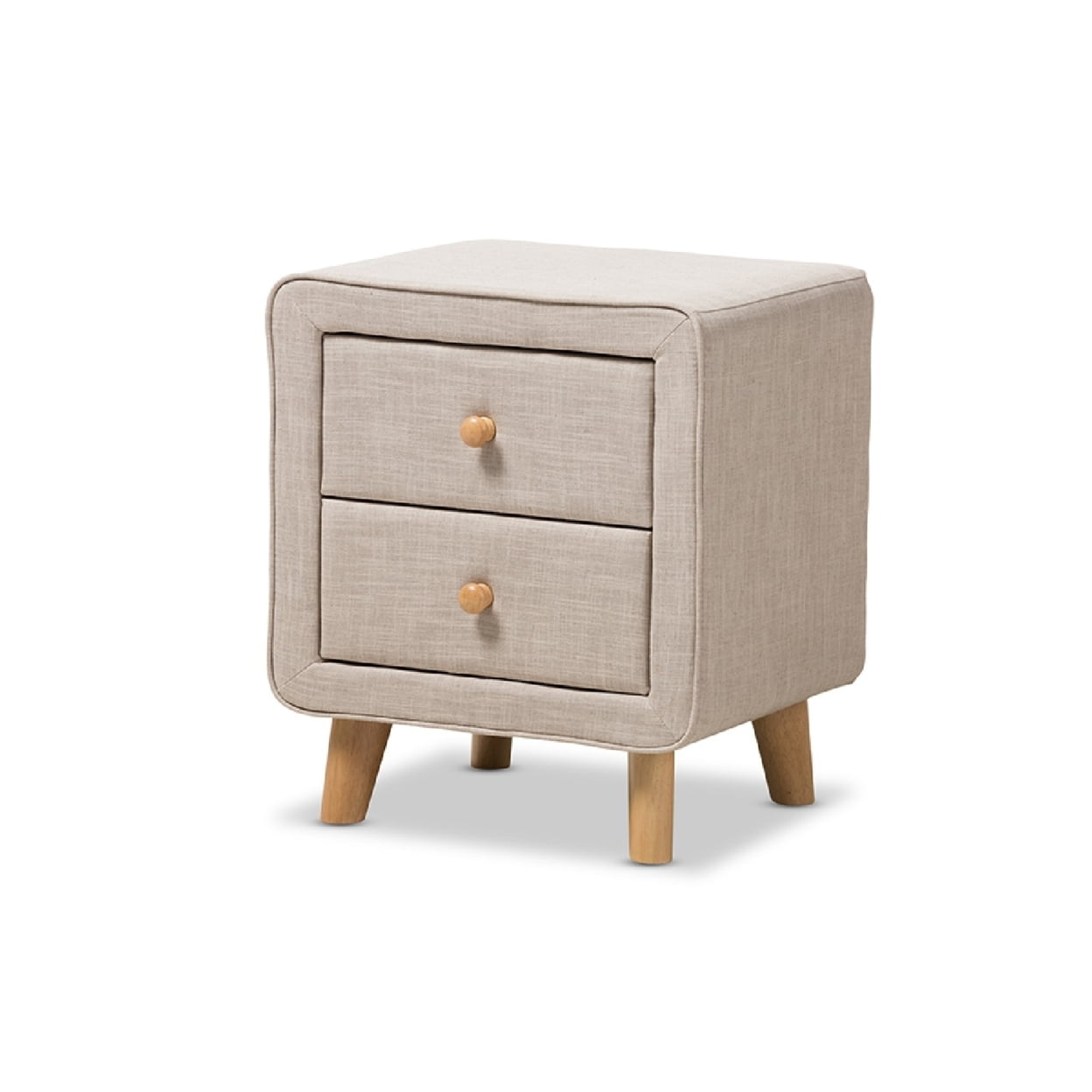 Button Tufted Backrest Linen Upholstery Fabric High Density Foam Wooden Frame Rubber Wood Legs Easy Assembly Required