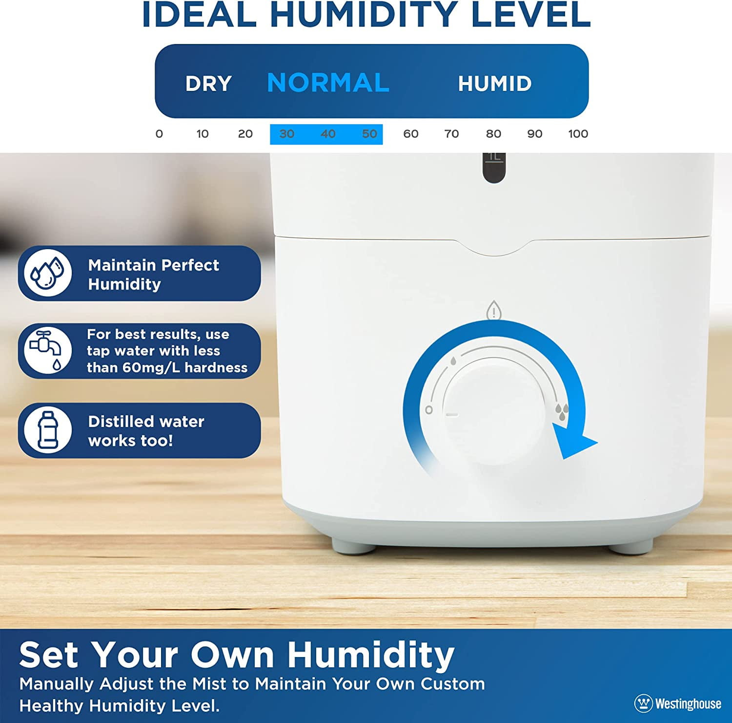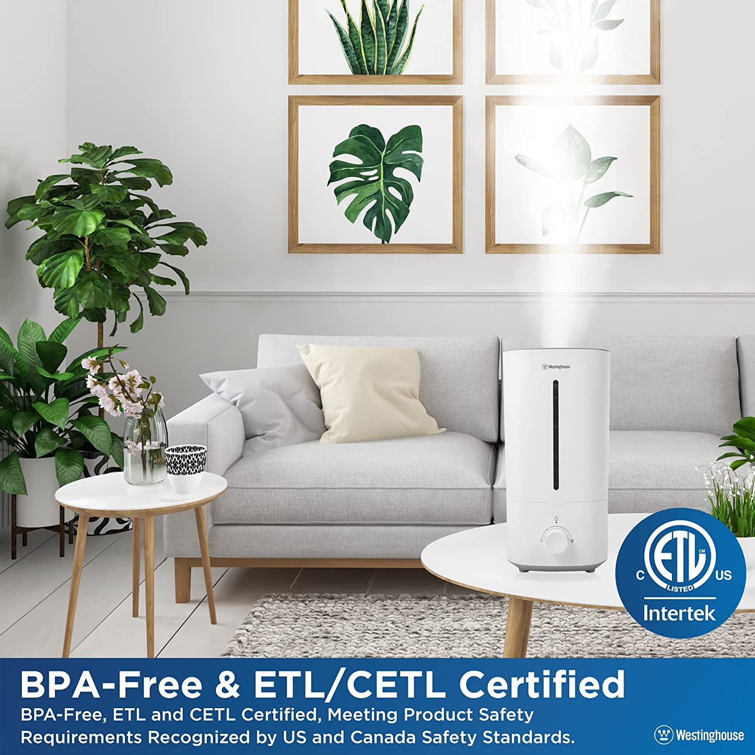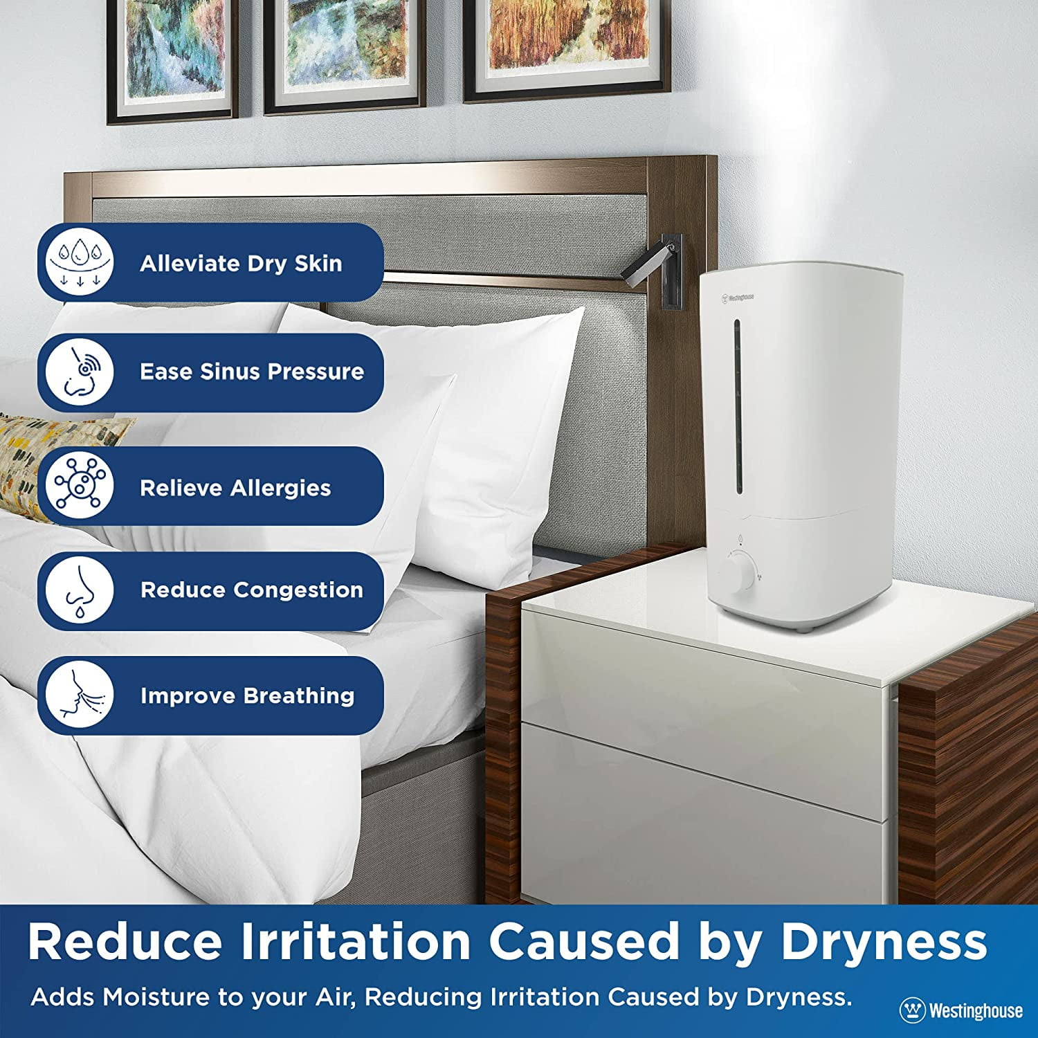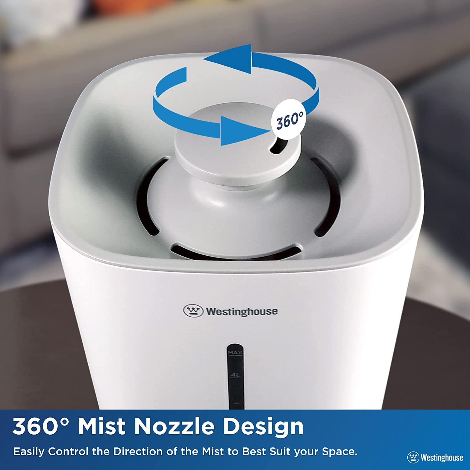 Westinghouse 4.5L Ultrasonic Cool Mist Humidifier, Quiet, Top-Fill, Adjustable Mist, Low Water Alarm