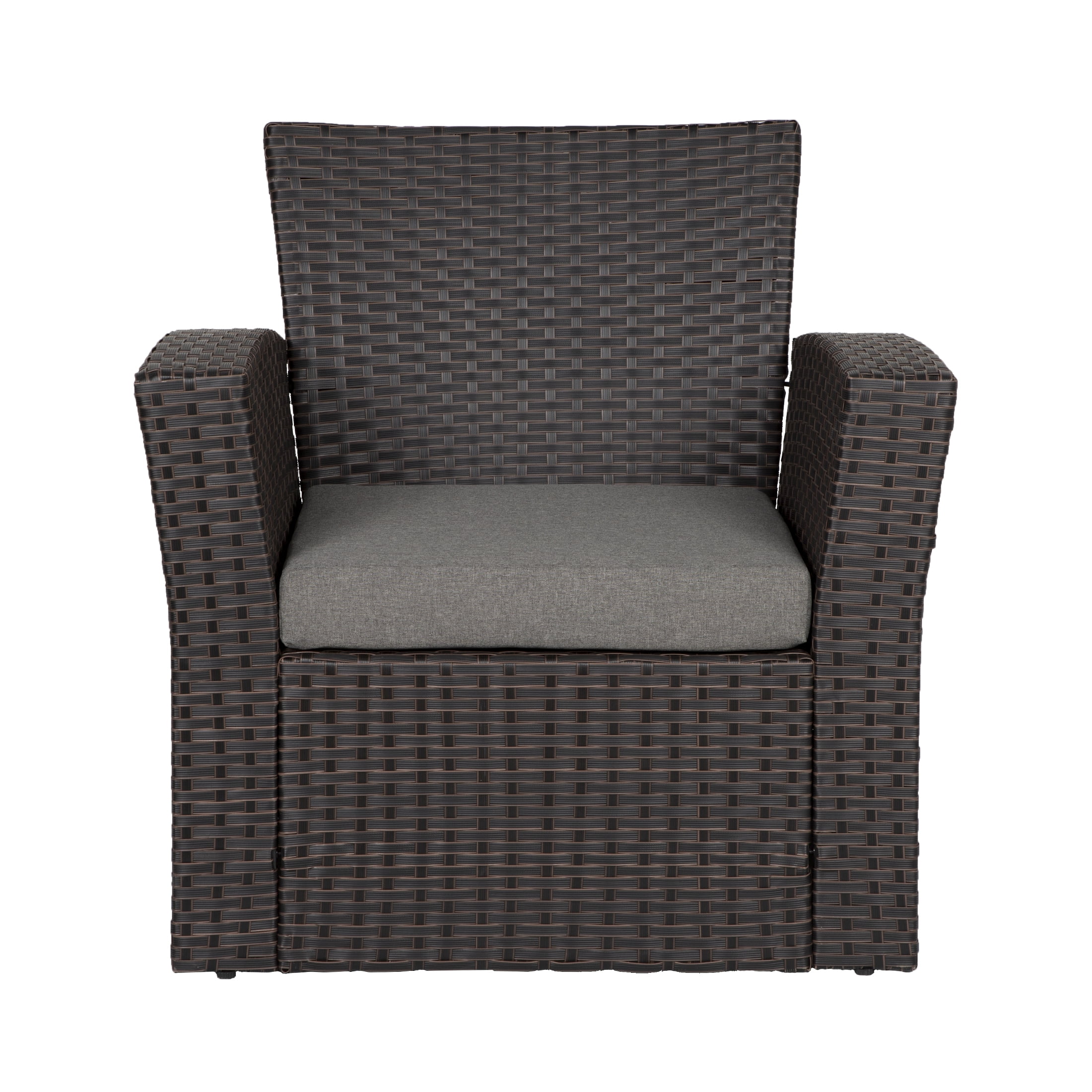 Se Includes: One (1) Sofa Loveseat, Two (2) Armchairs, One (1) Tempered Glass Coffee Table Fade and Water Resistant Rattan Wicker Rust Resistant Durable Steel Frame Easy to clean: 3″ Inches washable seat cushions with zipper Smoked Black Tempered Glass Coffee Table Maximum Weight Capacity: 700 Lbs (Loveseat) , 350 Lbs (Armchairs) All Weather Resistant Patio Furniture Durable and UV Protected PE Rattan Wicker Weaving Removable & Washable Polyester Slip Cover: 3″ Inches Thick Seat Cushion Water Resistant Wicker, Steel Frame, Seat Cushion Ideal Outdoor Use: Patio Conversation Sets, Lounge Seating, Patio Seating, Patio Sofas, Patio Furniture Sets 4 Piece Patio Furniture Set: This patio set includes 1 wicker loveseat, 2 wicker chairs and 1 coffee table, provides four seats that can be mixed & matched to your sitting space or your preference layouts. Place it in your garden to have an afternoon tea with your families, or use it in a patio to have a conversation with your friends. All Weather Resistant: Made with textured weaven in all-weather HDPE wicker to mimic the natural wicker and enhance elegant stylish and durability. The powder coated metal frame is solid and rust-proof for strength and stability. The wicker chairs can holds up to 250 Lbs per seat. Upgraded Comfort: Ergonomic design armrest and backrest can support your body in a comfortable posture, the wide and deep chairs cushioned by 3 inch thick sponge padded cushion for optimal comfort and relaxiation. Covered with water-resistant polyester fabric is removable and spot washable. Size: The wicker patio furniture sets come in one box. Armchair: 28.75″L x 30.75″W x 31.5″H, Loveseat: 51″L x 23.5″W x 31.5″H, Coffee Table: 34.5″L x 19.25″W x 13.75″H. The wicker coffee table comes with smoked tempered glass top, you can put drinks, food, books and other decorations on it. Simple Assembly: The package comes with detailed instructions and all necessary installation hardware. If you have any problem, please feel free to contact us and we will help you. Any questions will be answered within 24 hours.