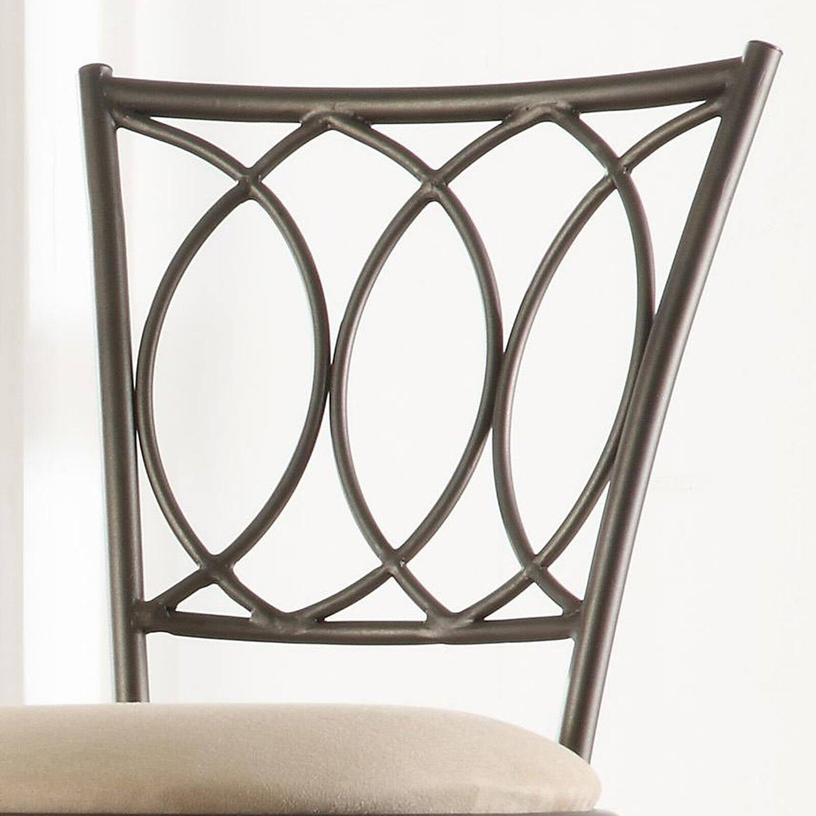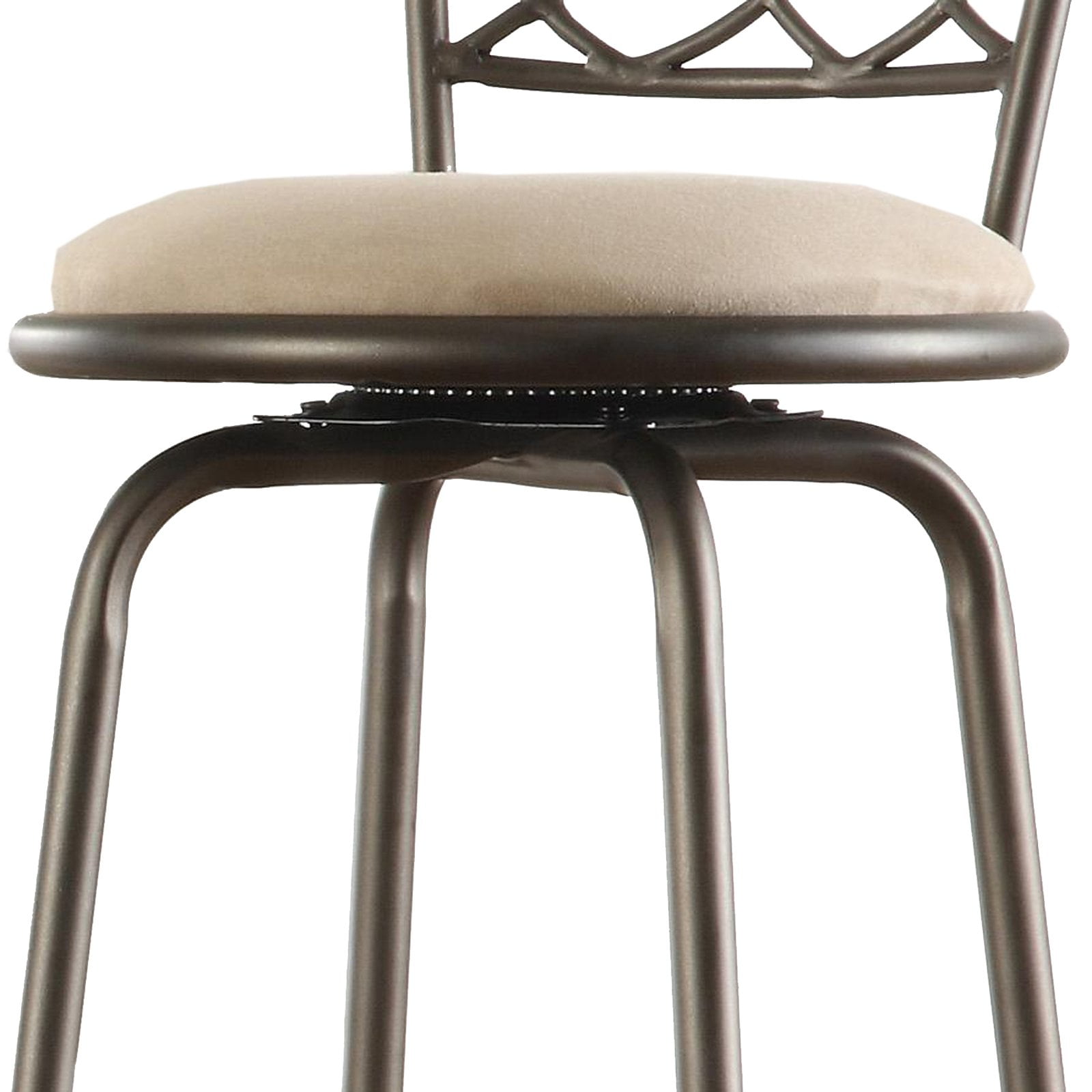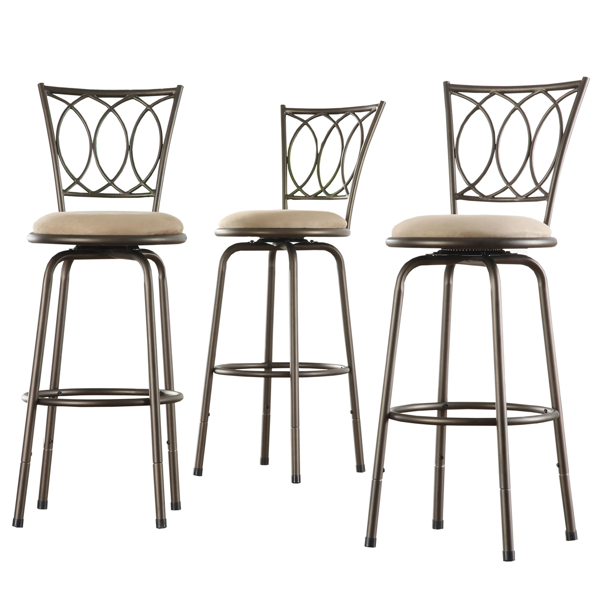Dimensions: 16W x 20.5D x 43-48H in. Seat height: 24 to 29 in. Set of 3- Kitchen & Dining Room Chairs Sturdy tubular frame Easy-to-clean microfiber seat Brown metal finish, beige upholstery Height-adjustable Swivel feature Integrated footrests provide support