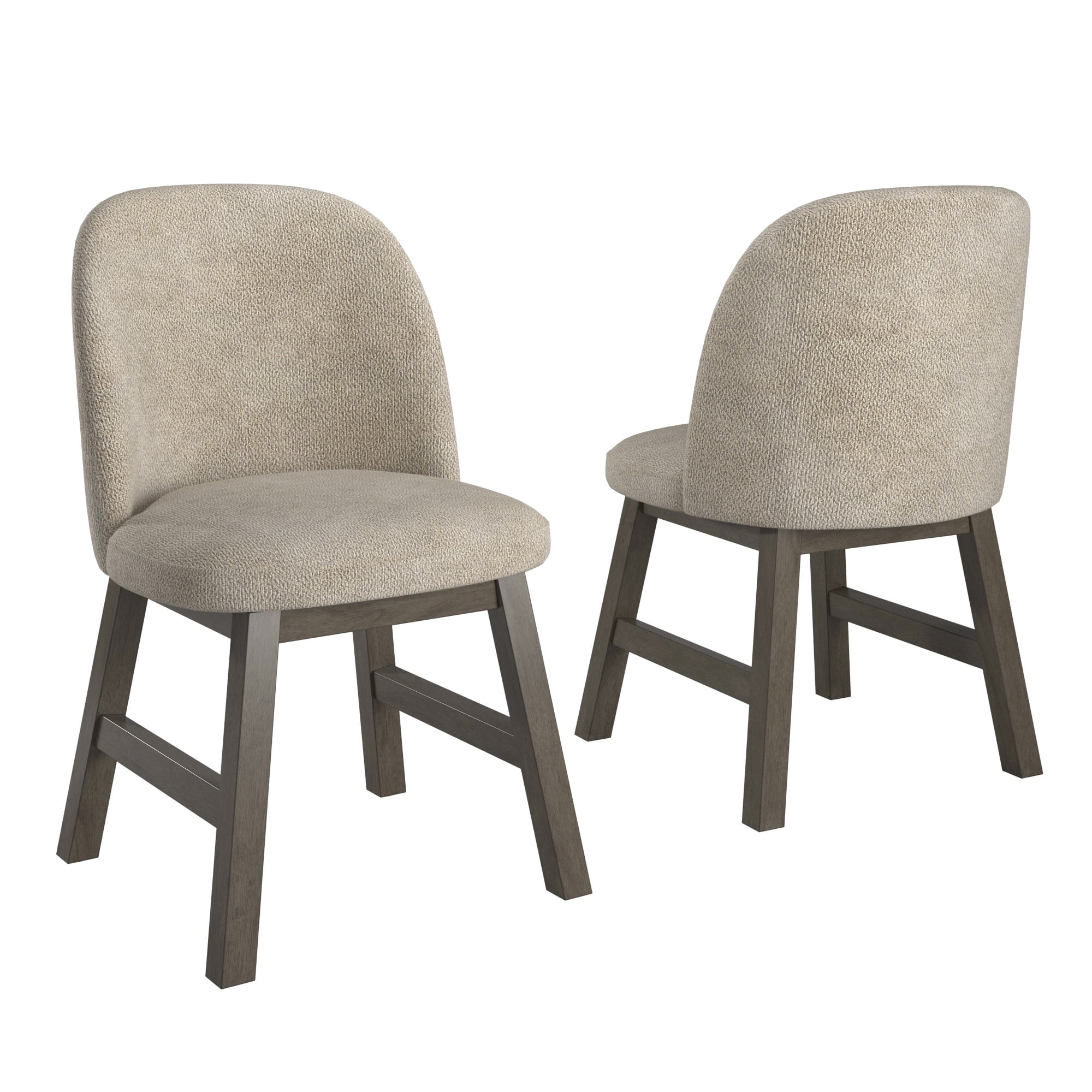 Weston Home Alta Wood Finish Taupe Fabric Curved Low Back Dining Chair, Set of 2, Gray