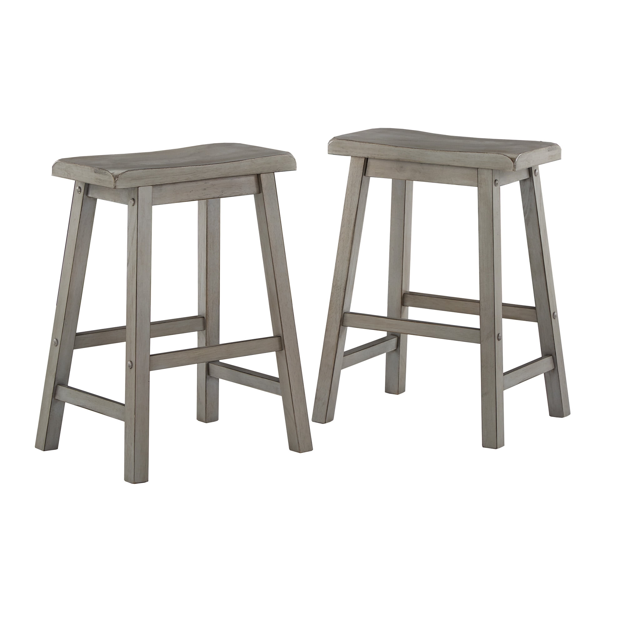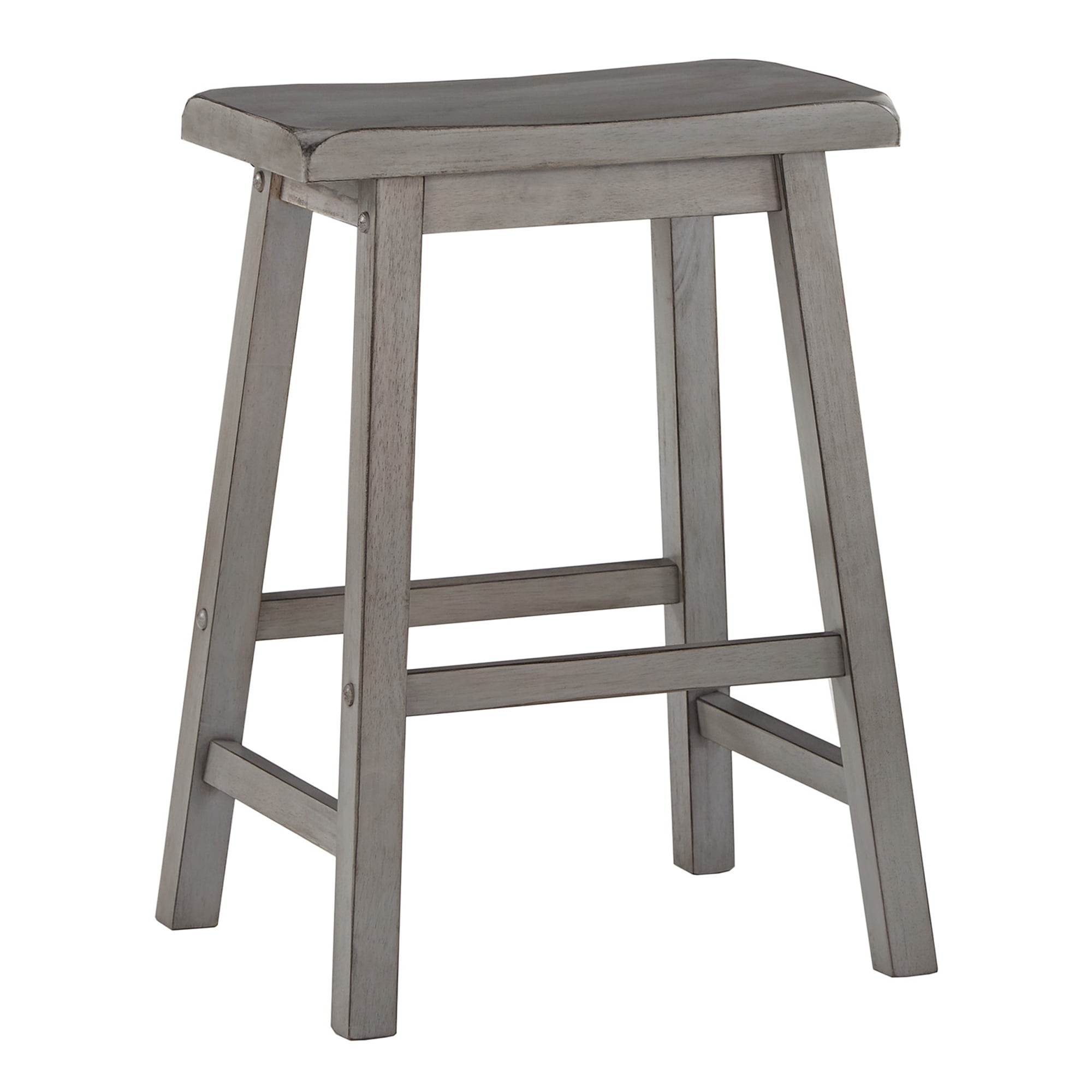 Weston Home Ashby Saddle Seat Backless Wood Counter Stools, Set of 2, Antique Grey