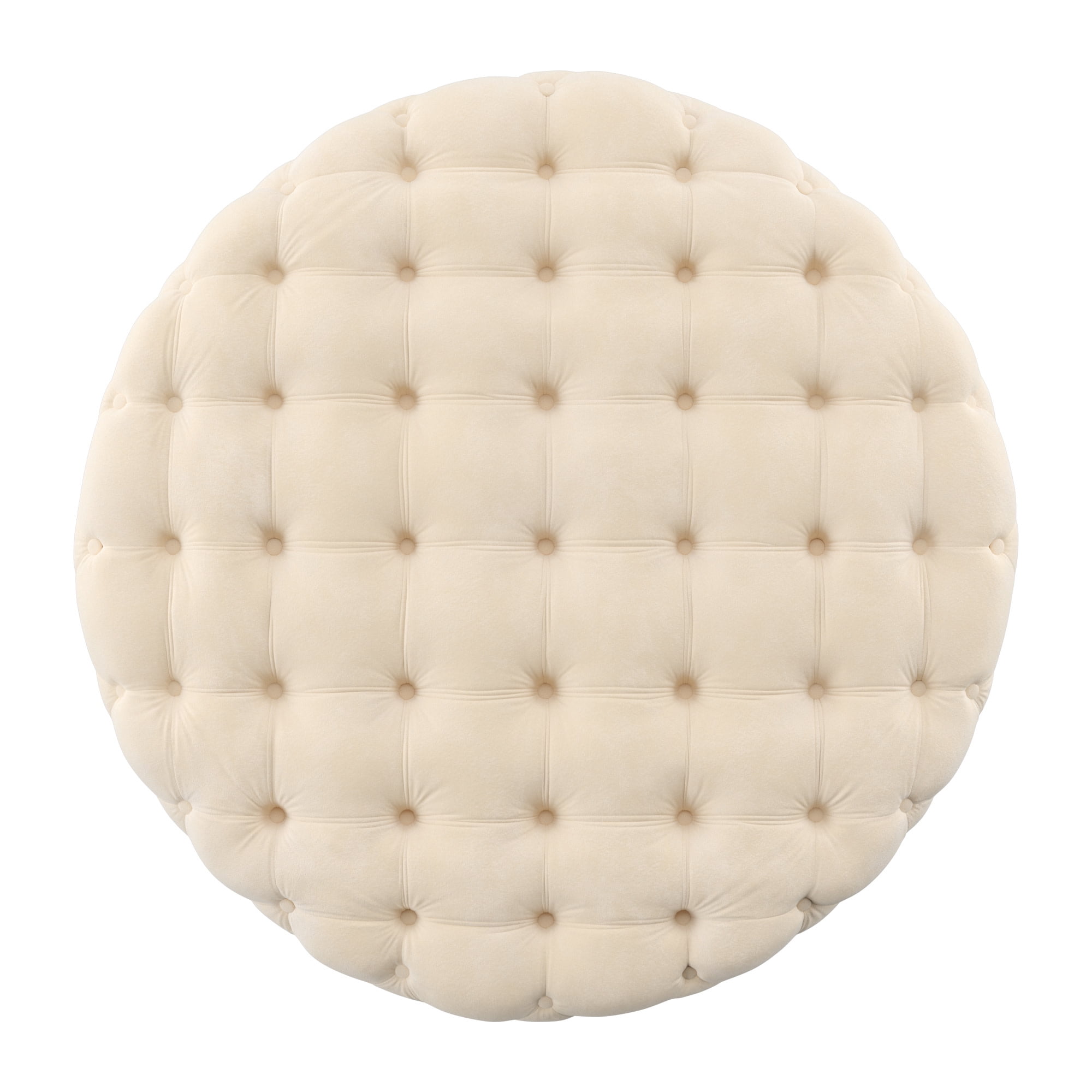 Includes one beige (1) round ottoman Overall dimensions: 41.75 in. diameter x 16 in. height All-over button tufting Soft fabric upholstery Five (5) non-locking casters Crafted with plywood, fabric, and foam Ships in one (1) box