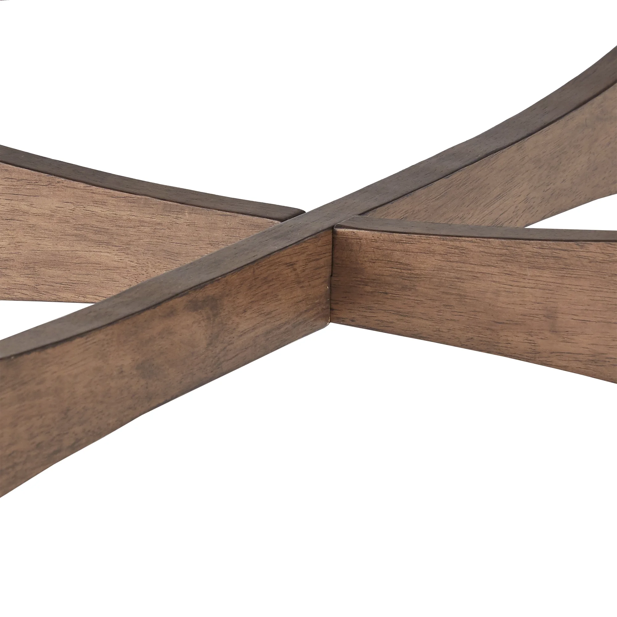 Dimensions: 47.5W x 26D x 18H in. Solid rubberwood frame Choose finish from available X-shaped stretcher with angled legs Minimalist transitional look