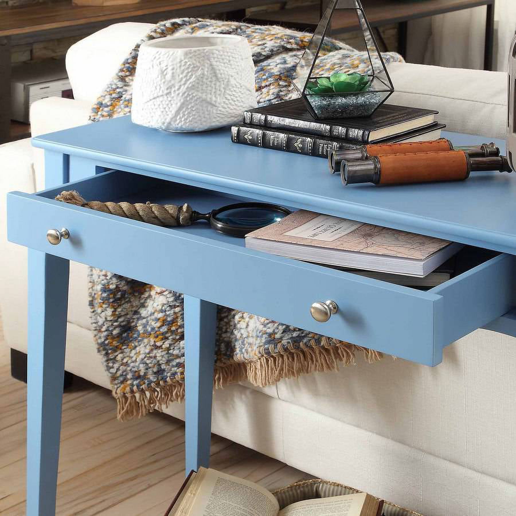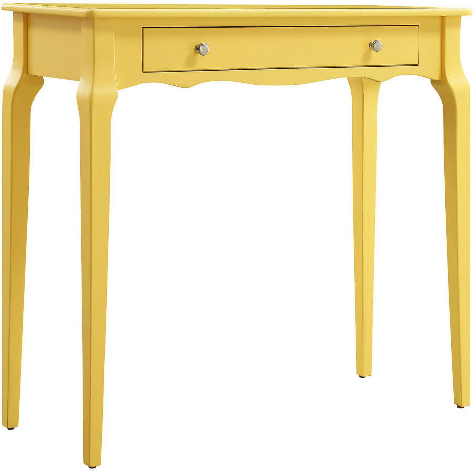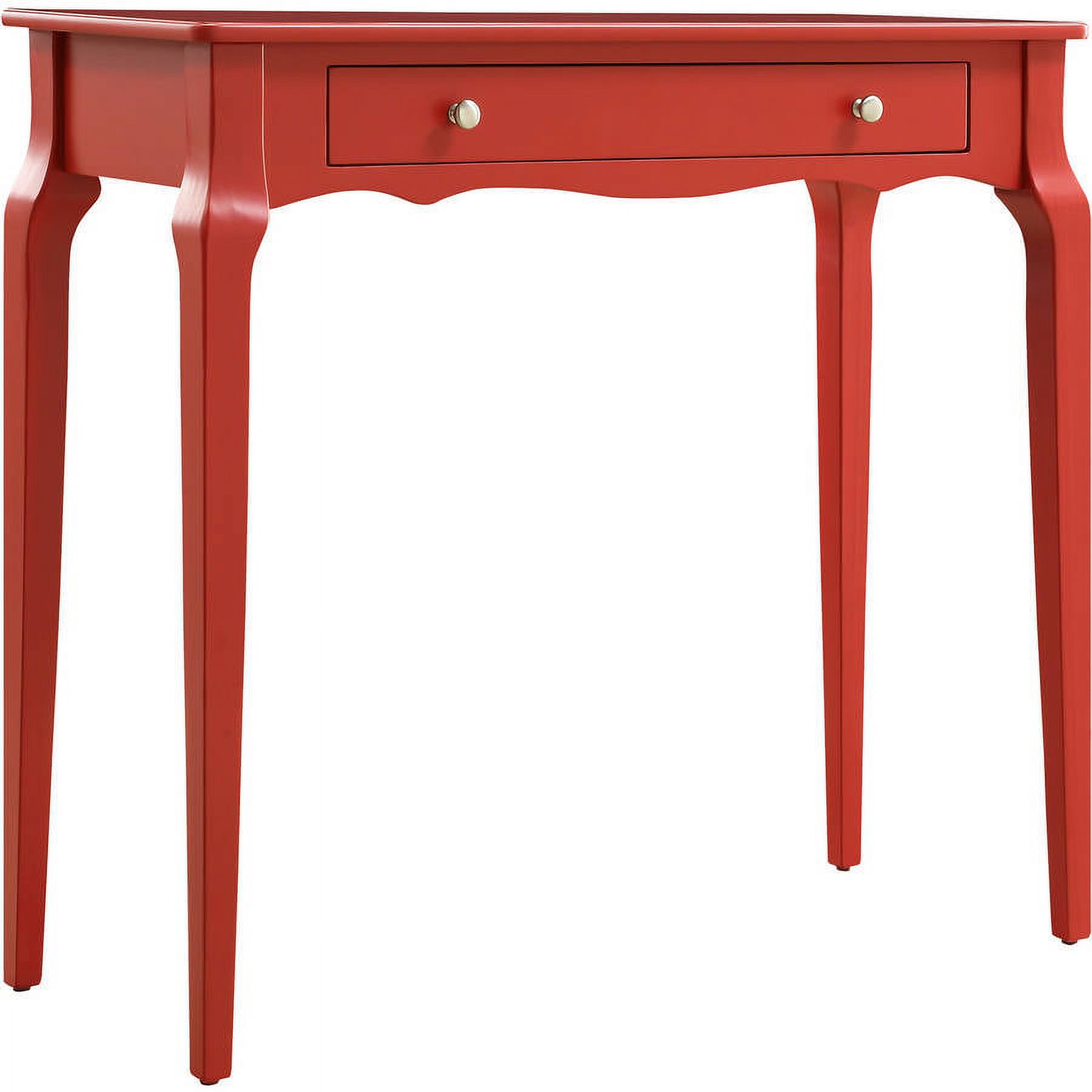 Give your home a touch of colorful style with this curvaceous console table. This table features a fully functioning drawer and open roomy shelf, perfect for a little extra storage. Its large, spacious table top is the perfect place to display some of your favorite belongings. Available in a variety of colors, so you can match it with any style or color scheme.