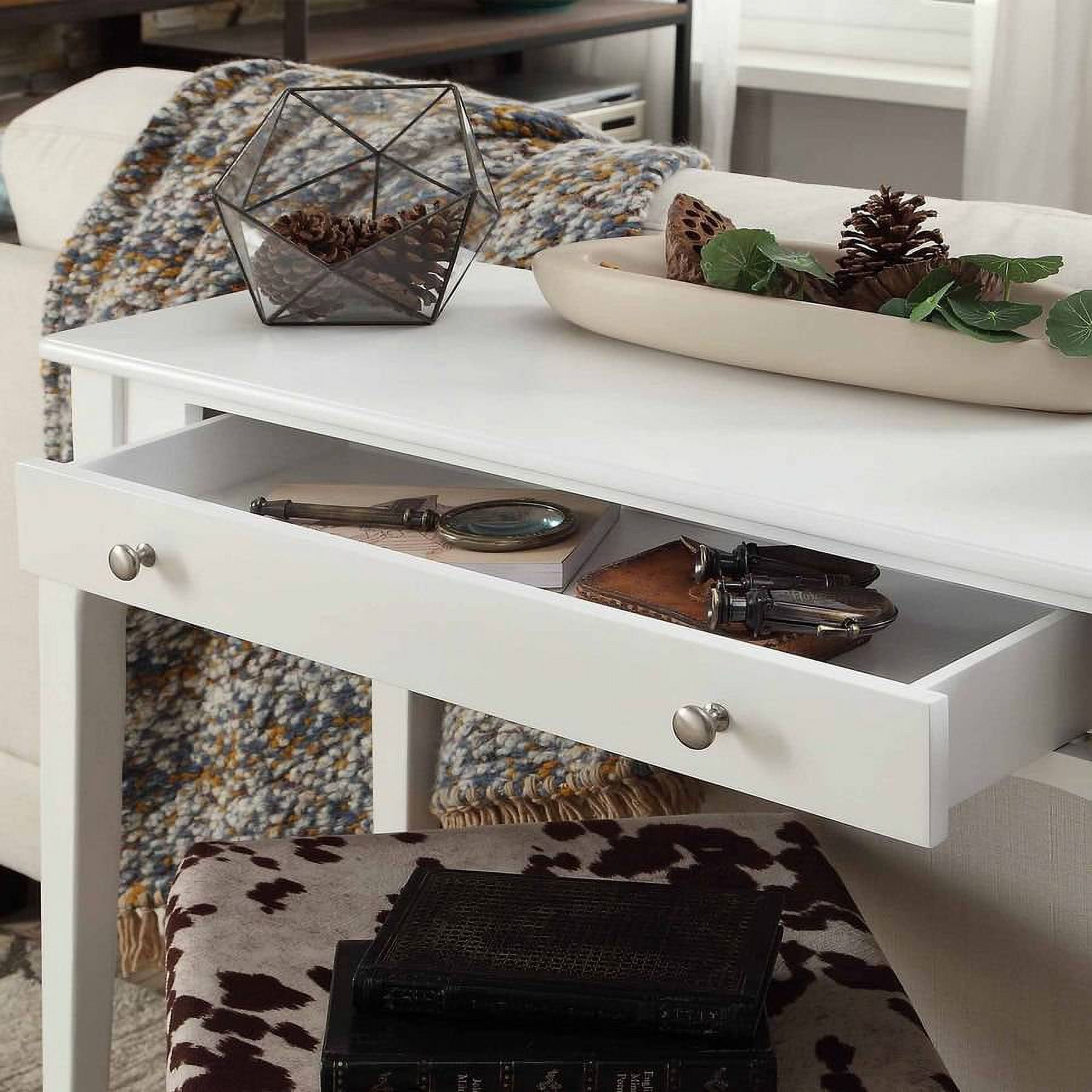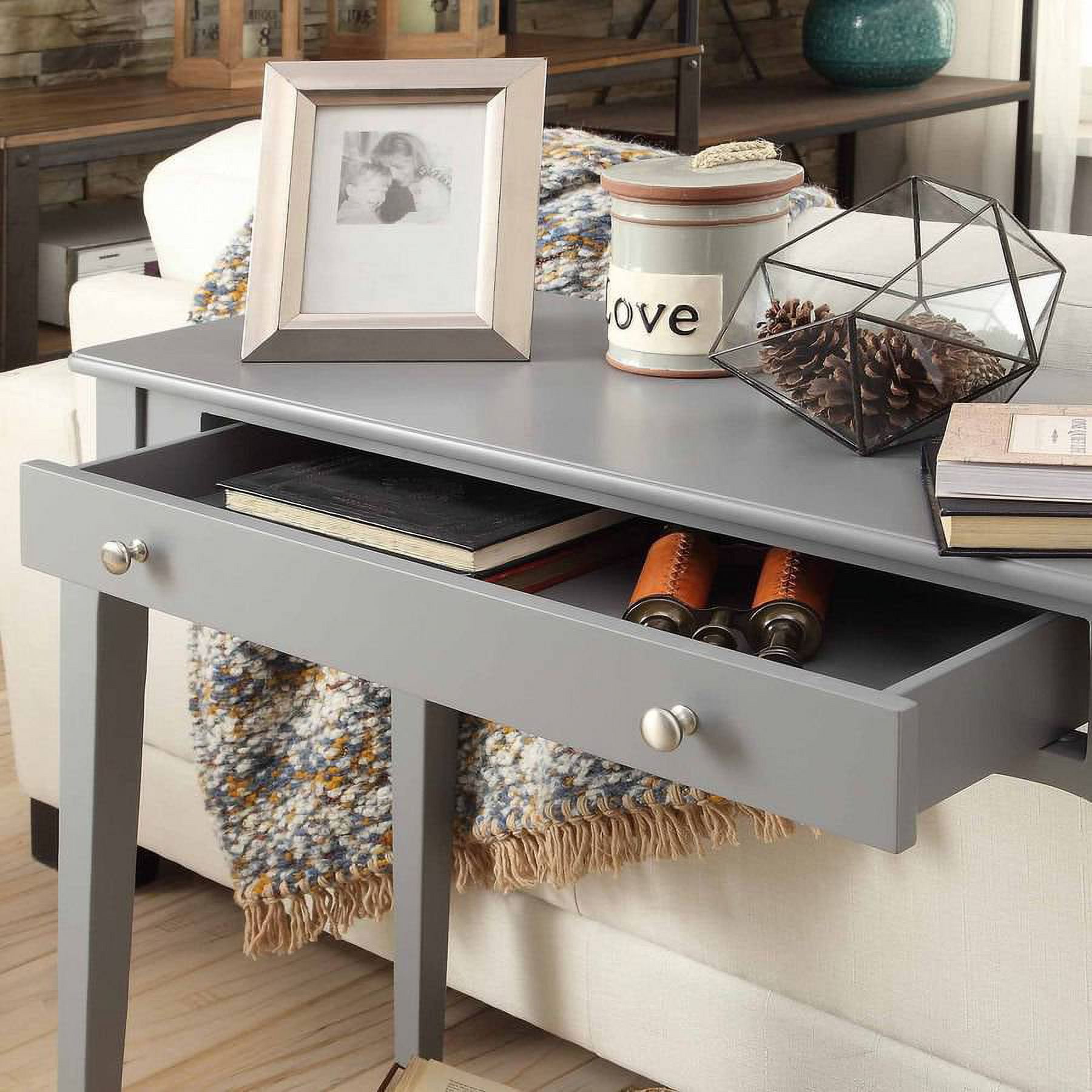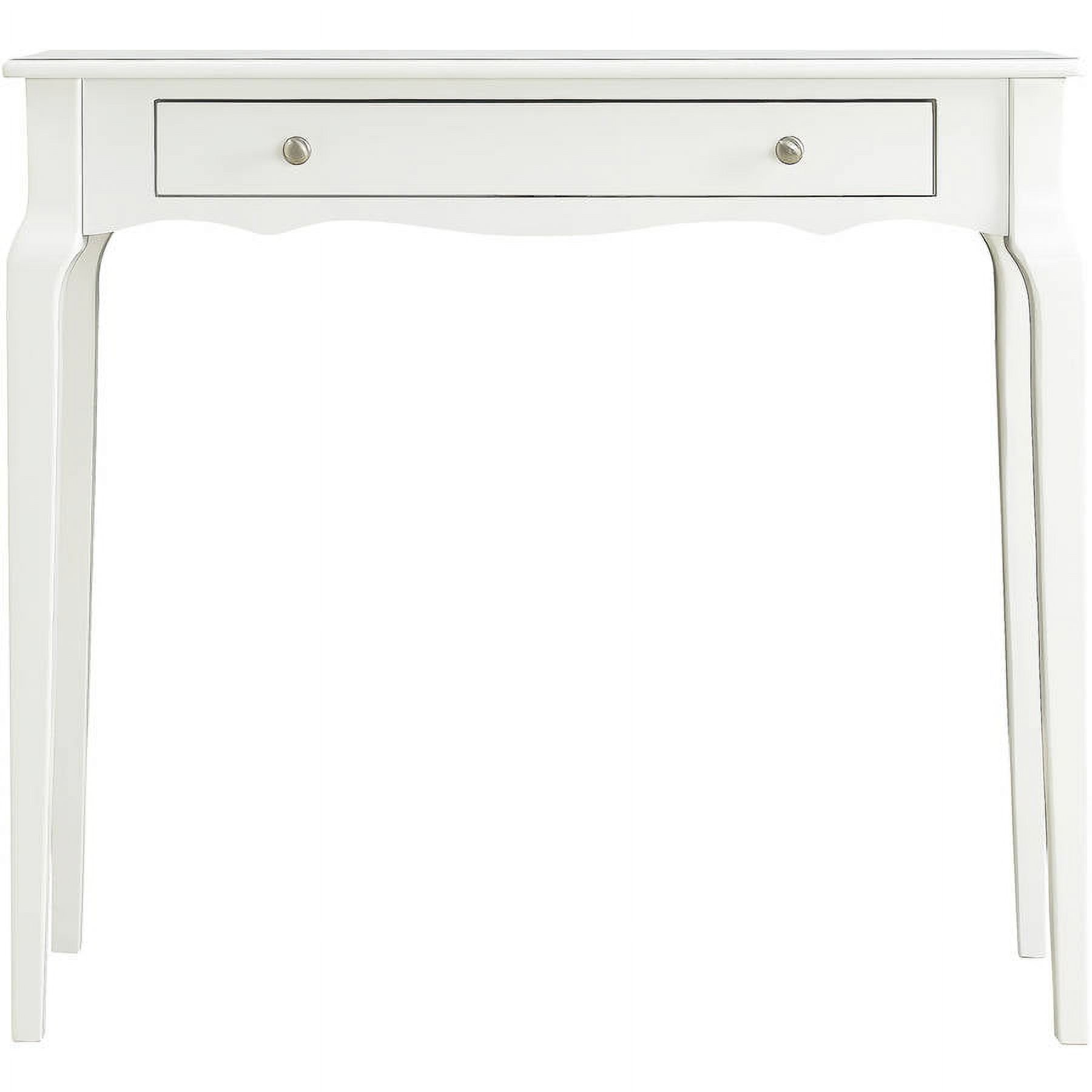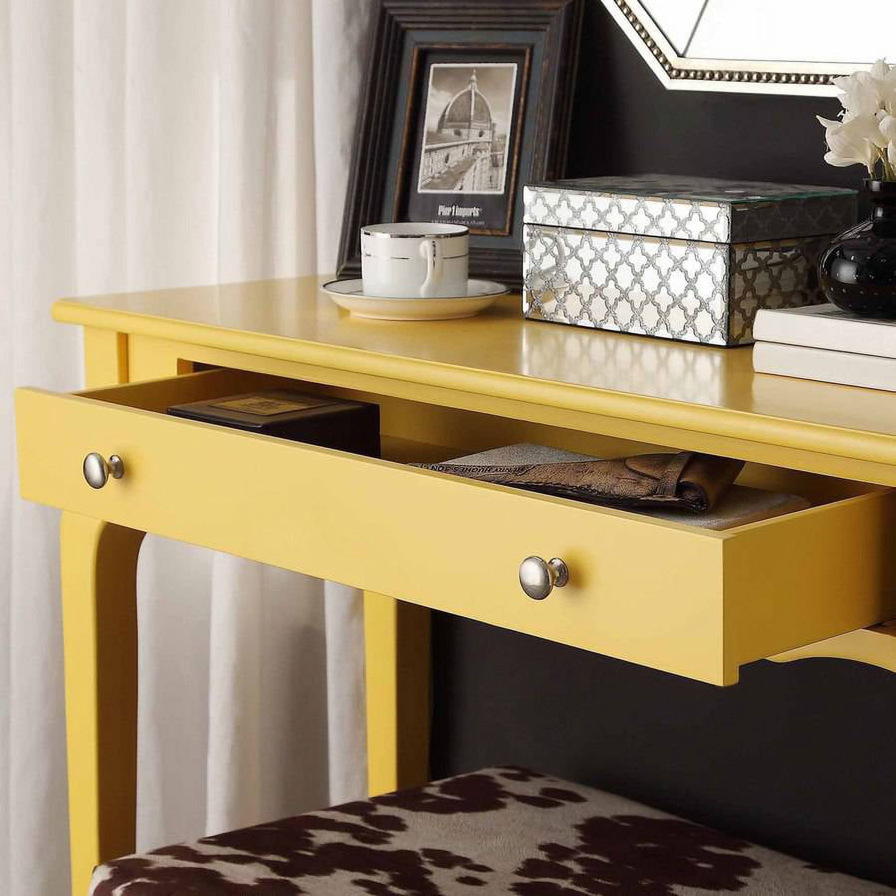 Give your home a touch of colorful style with this curvaceous console table. This table features a fully functioning drawer and open roomy shelf, perfect for a little extra storage. Its large, spacious table top is the perfect place to display some of your favorite belongings. Available in a variety of colors, so you can match it with any style or color scheme.