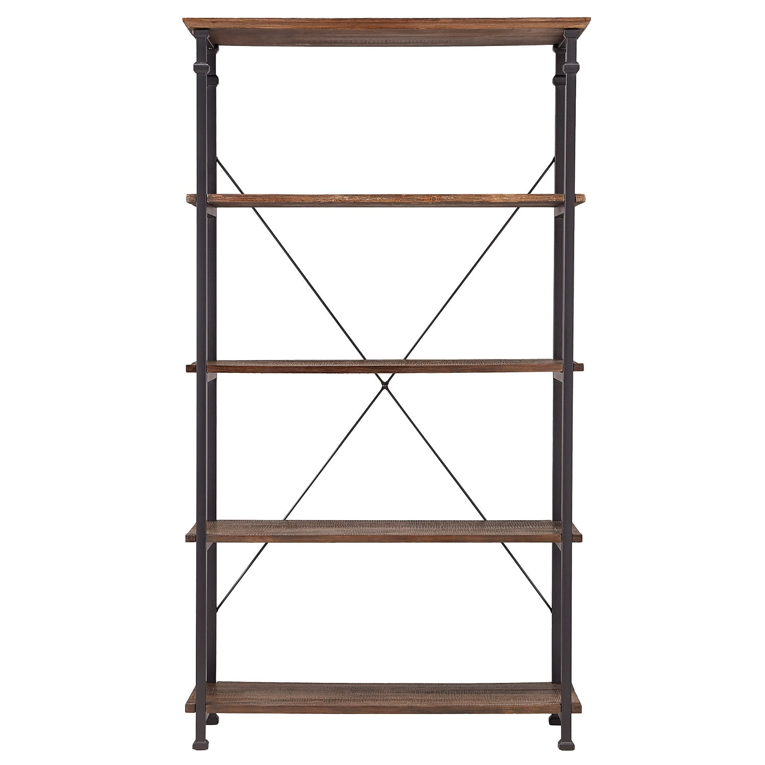 Weston Home Clayton 5 Shelf Wide Wood and Metal Bookcase, Dark Brown Shelves