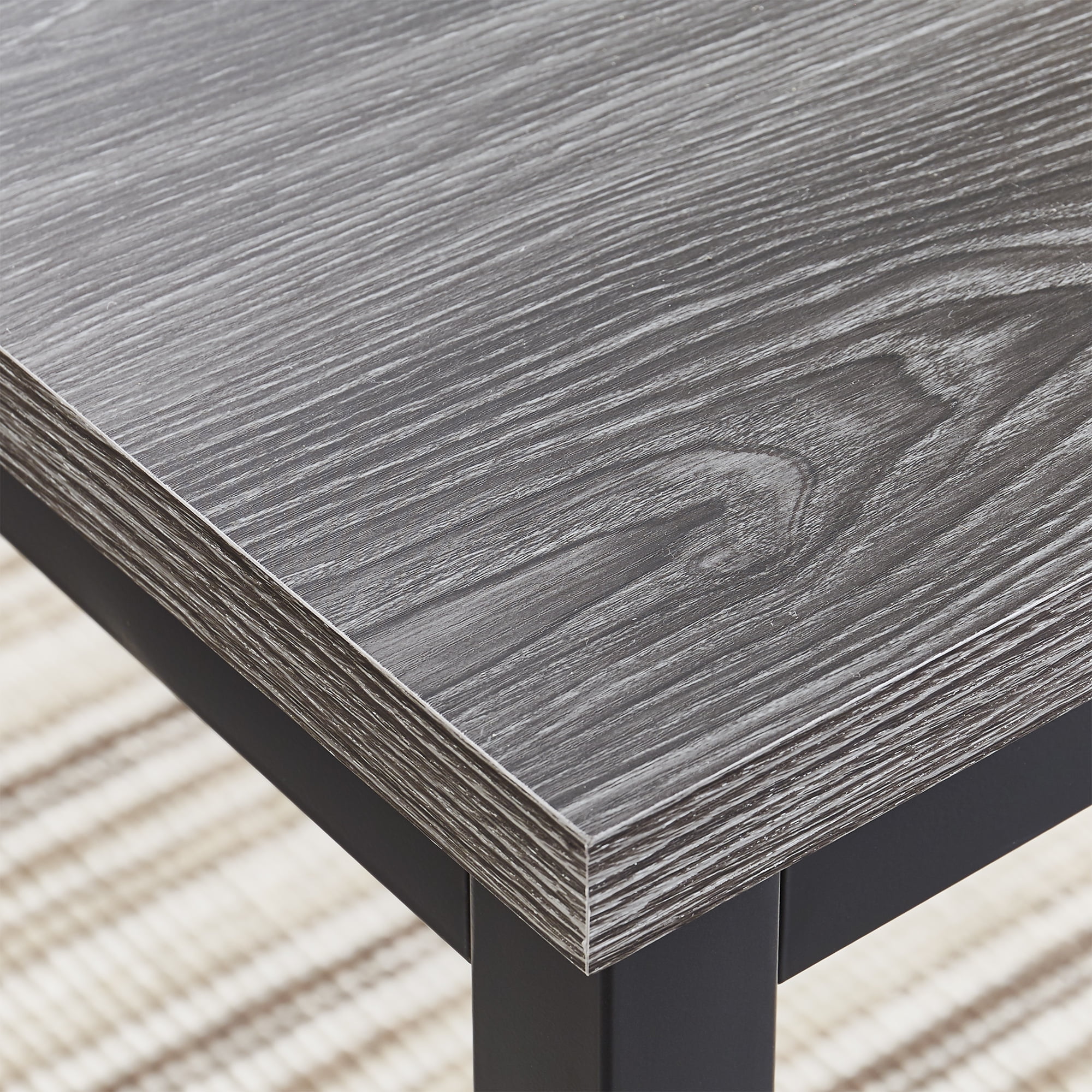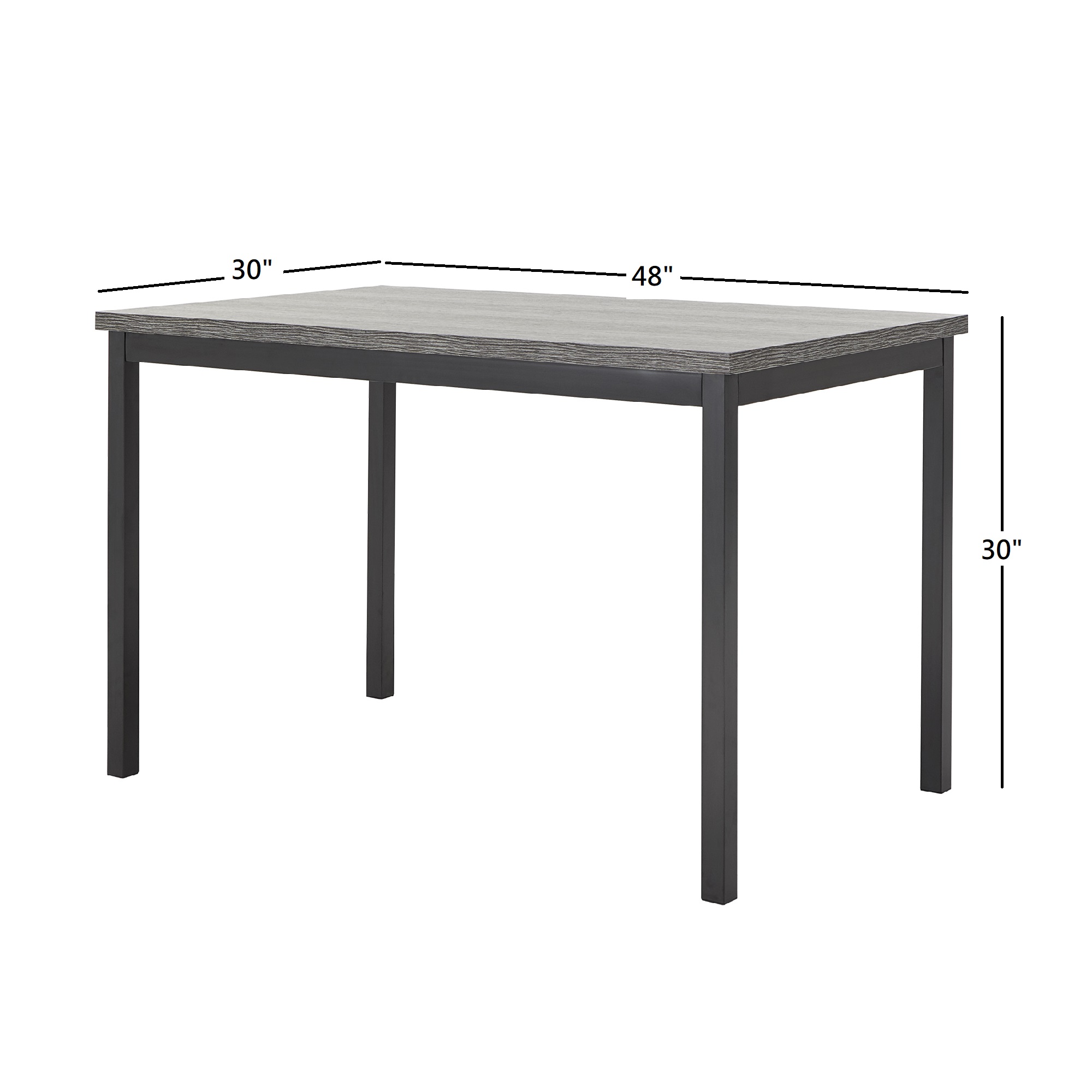 Set includes: One (1) Dining Table Brown Wooden Table Surface Black modern metal frame Metal, MDF, and veneer construction Seats up to four (4) Overall Table Dimensions: 48 inches long x 30 inches deep x 30 inches high Assembly required Ships in one (1) box