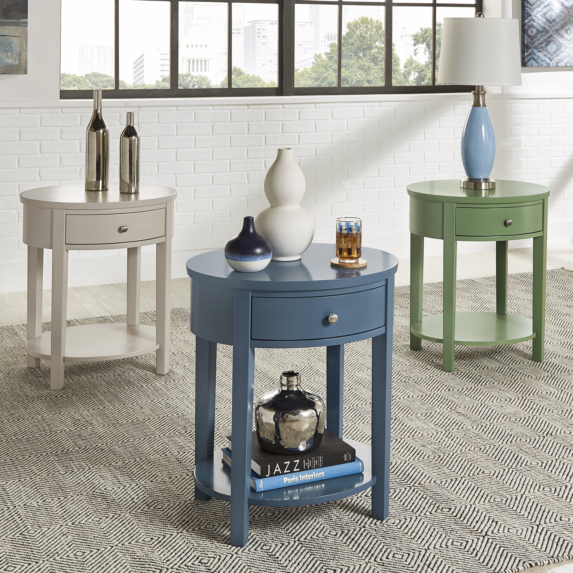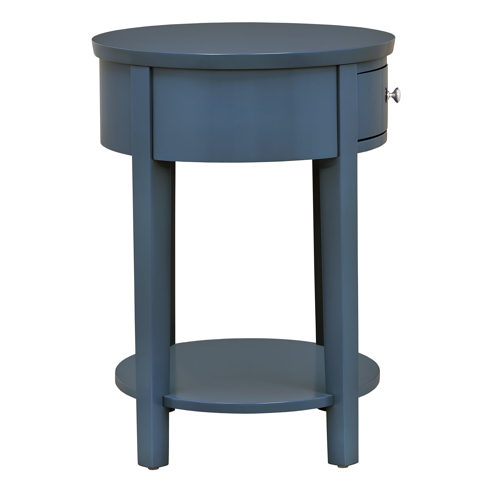 Weston Home Easley Circle End Table With Drawer And Lower Storage, Blue Steel