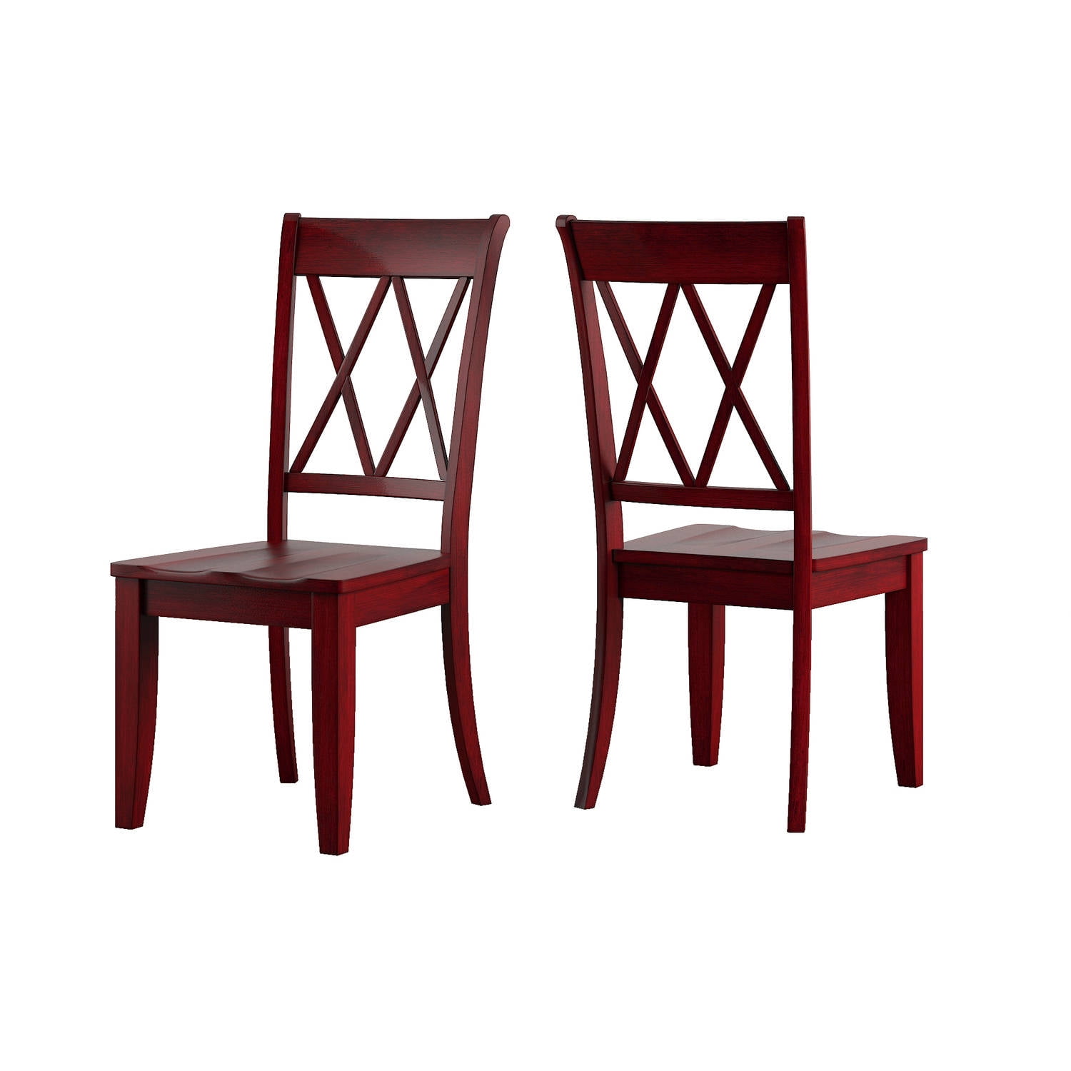 Weston Home Farmhouse Dining Chair with Cross Back, Set of 2, Berry Red