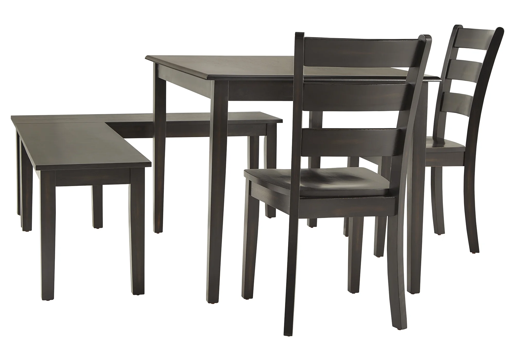 Turn your small space into an inviting dining area with the Weston Home Lexington 5-Piece Breakfast Nook Set with Rectangular Table. Set the nook up against a wall or corner, to create a beautiful farmhouse style destination for family and friends to enjoy many happy meals together. The set includes one (1) dining table, two (2) benches and two (2) ladder back dining chairs.