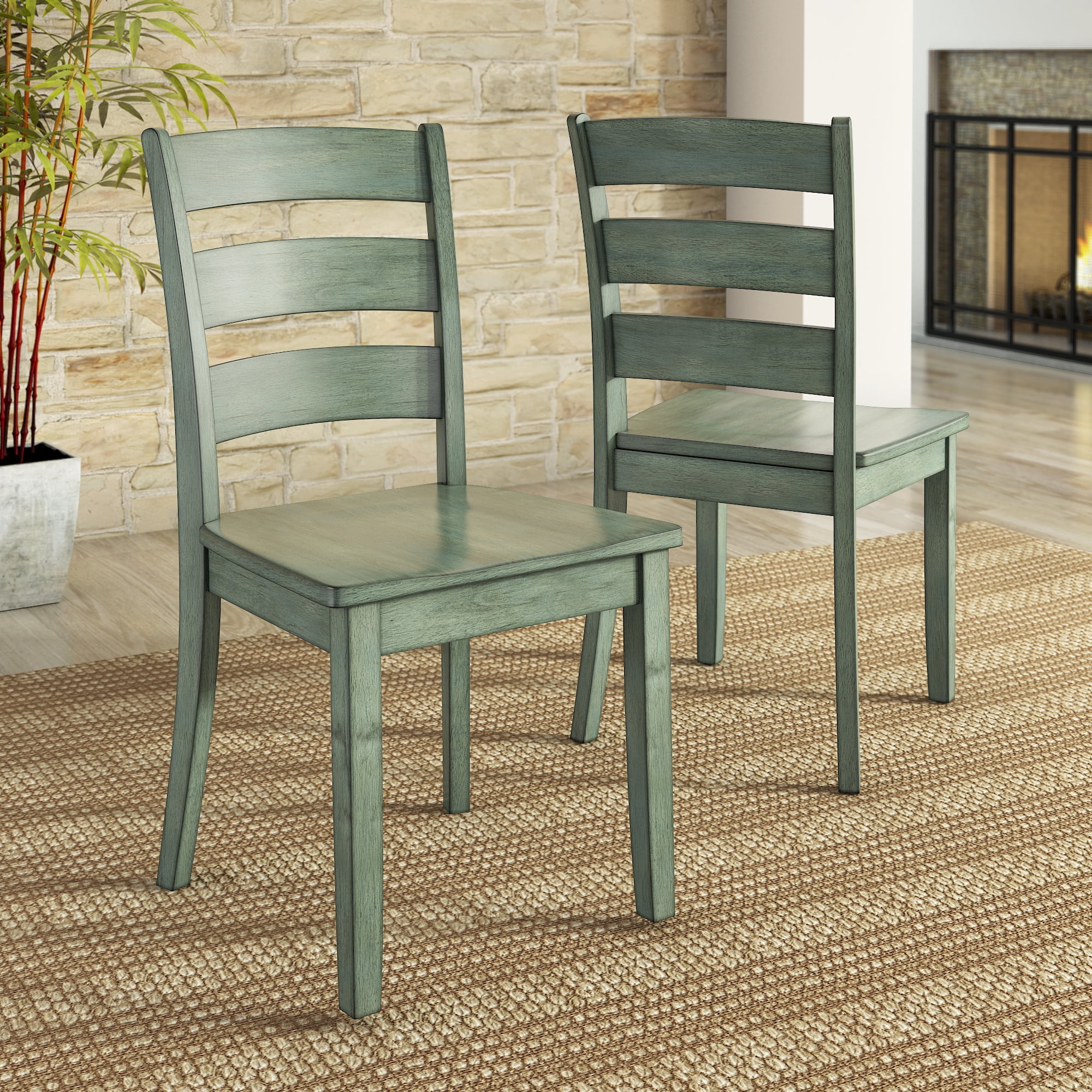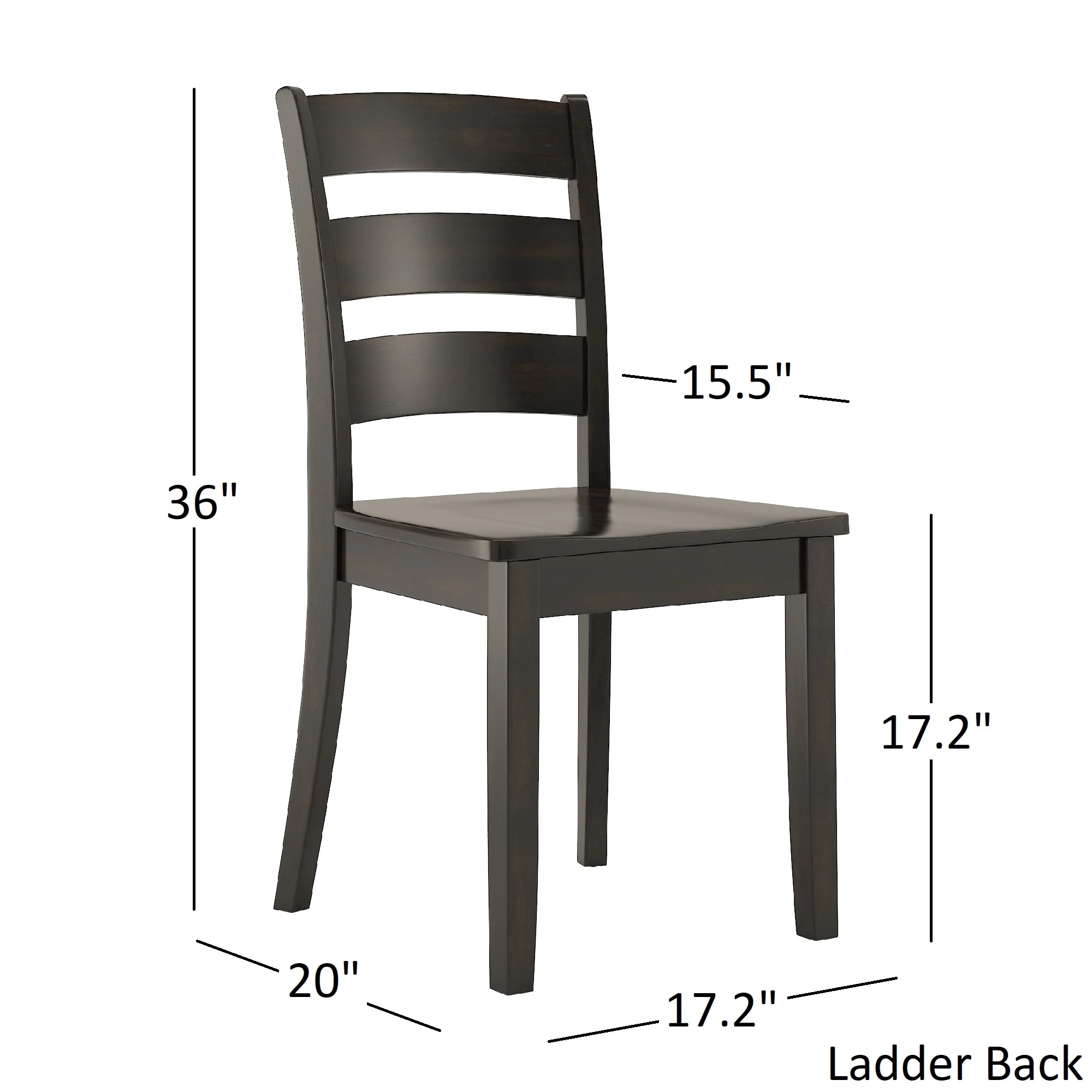 - Includes one (1) 42-inch diameter pedestal table, two (2) dining benches and two 2) ladder back dining chairs
