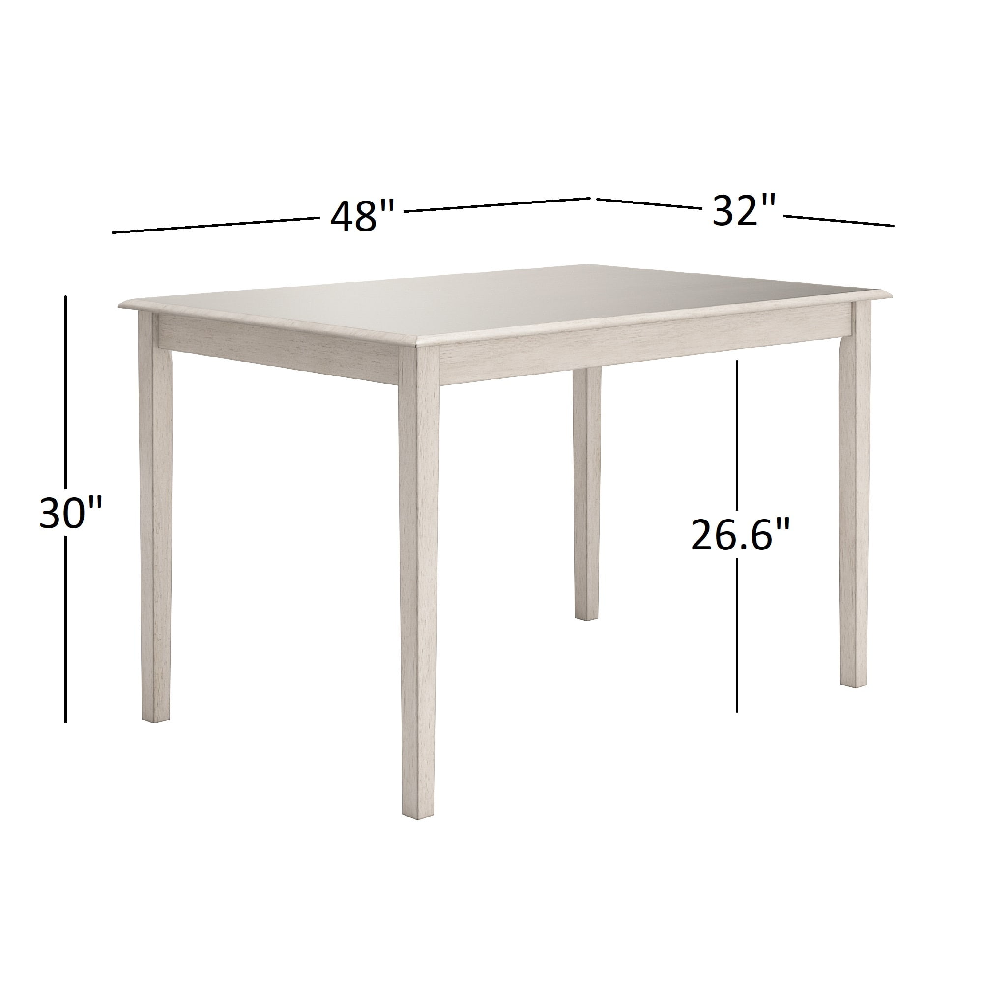 Set includes one (1) rectangular dining table and four (4) chairs Constructed from Rubberwood Table Dimension: 48″L x 42″W x 30″H Table Top Thickness: 0.7″ Chair Dimension: 20″L x 17.2″W x 36″H Ships in three (3) Boxes