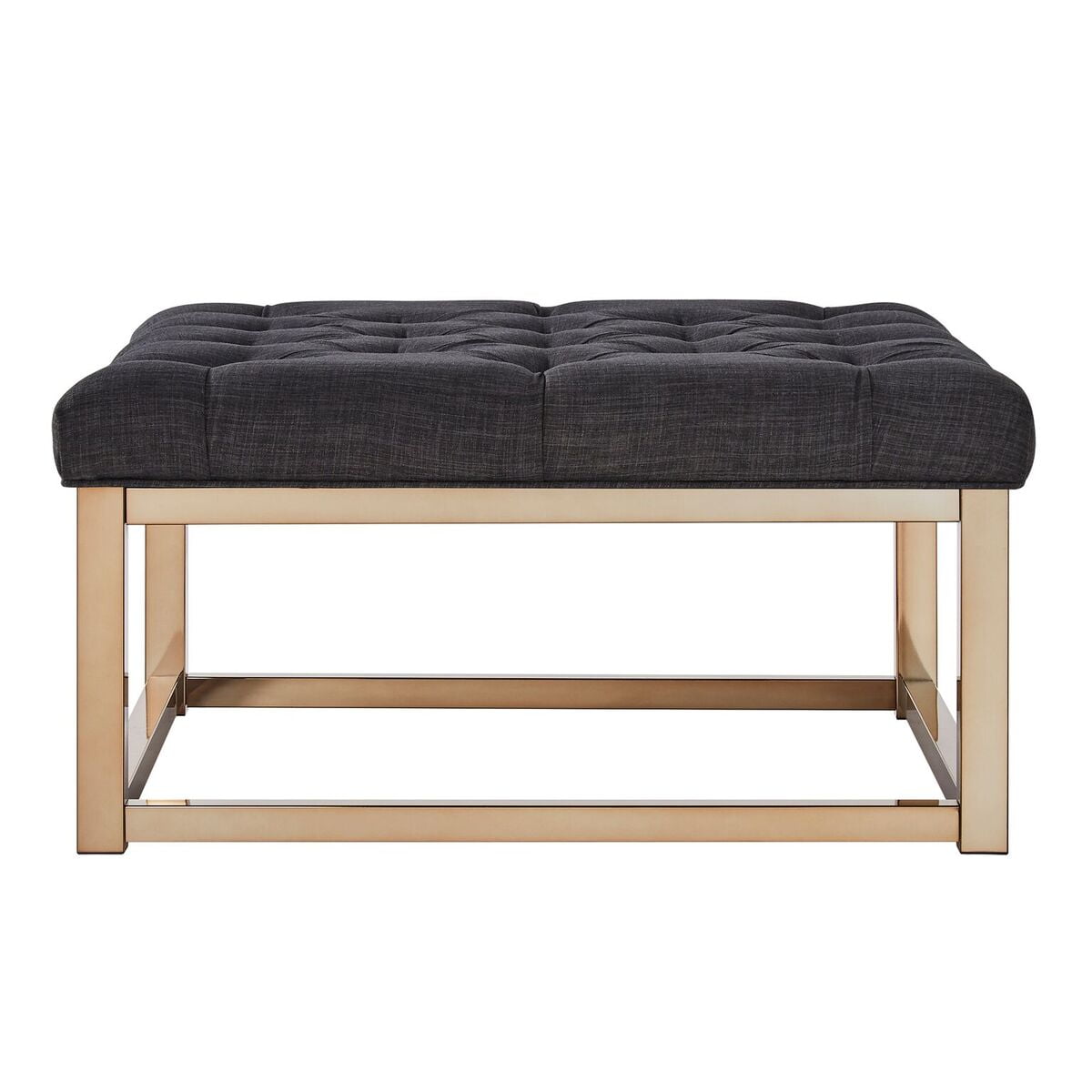 Weston Home Libby Button Tufted Cushion Ottoman Coffee Table with Champagne Gold Straight Base, Dark Grey Linen