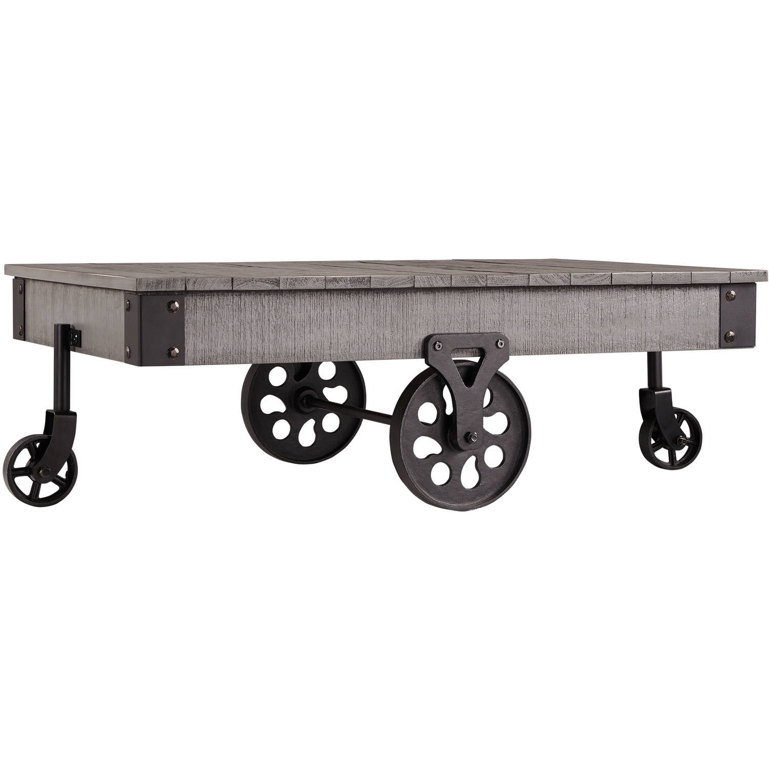 Weston Home Metal Supports Cocktail Table with Functional Wheels, Grey