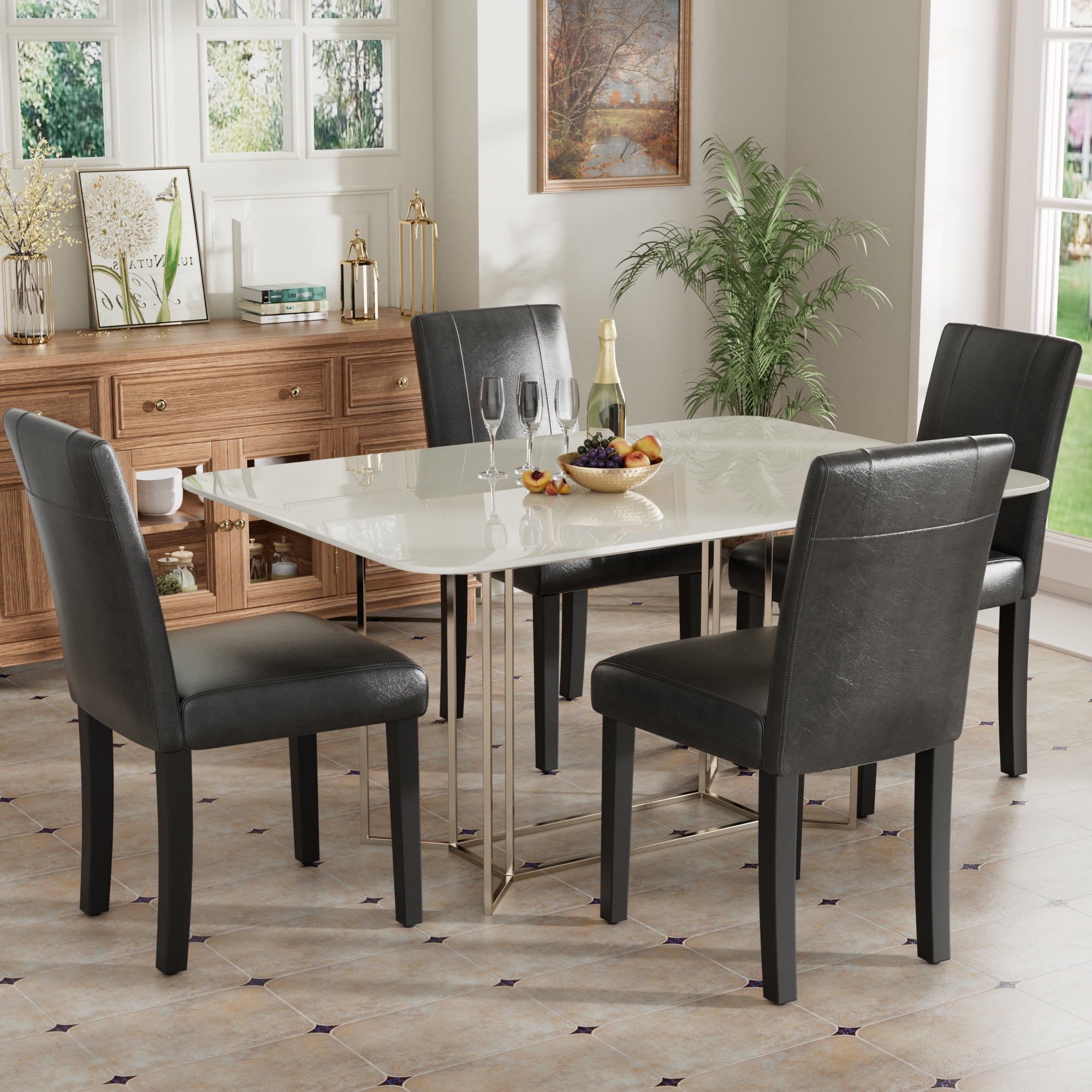 Set includes: One (1) Dining Table Overall dimension: 60 inches long x 35.4 inches wide x 29.33 inches high Under table clearance: 26.4 in. height Tabletop thickness: 0.7 in. Made with rubberwood, MDF, and veneer Natural wood grain detail Mid-century modern design Finish: Natural oak or walnut Assembly required Tapered, angled legs Ships in one (1) box Rooms: Dining Room, Kitchen, Breakfast Nook