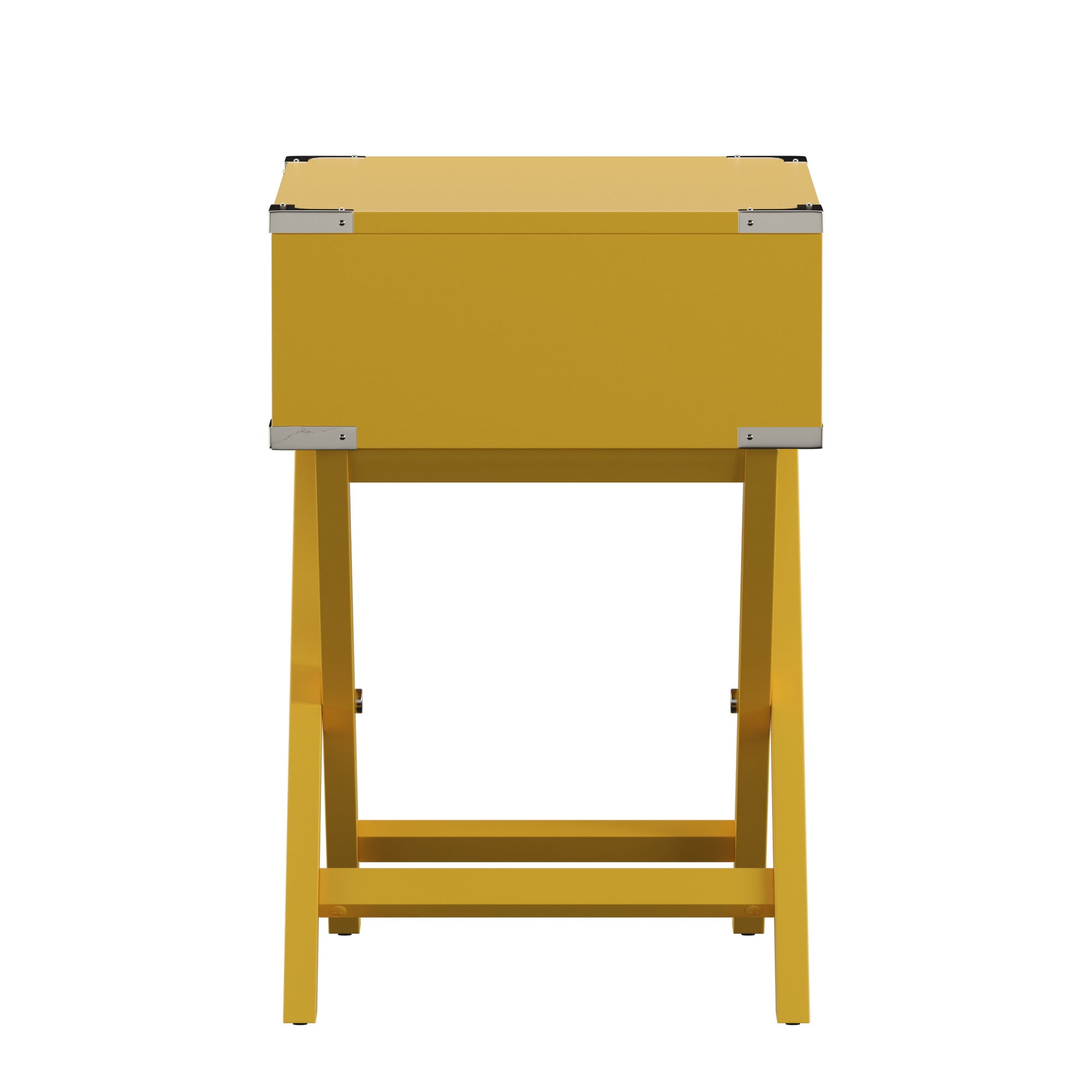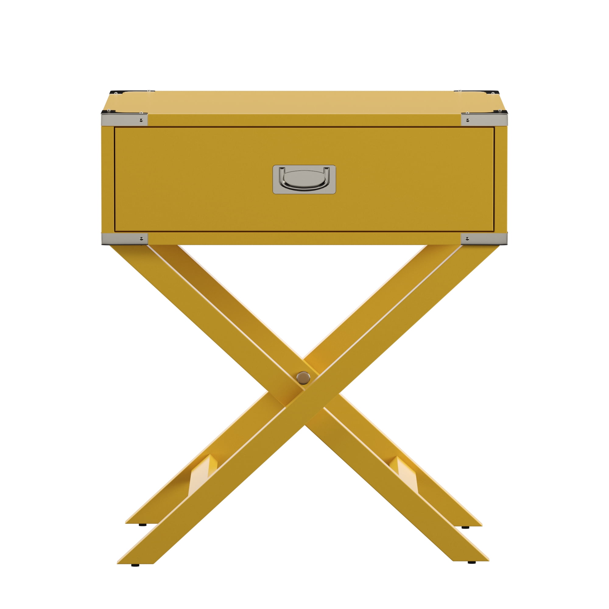 Weston Home Modern End Table with X-Base Legs and Drawer, Yellow