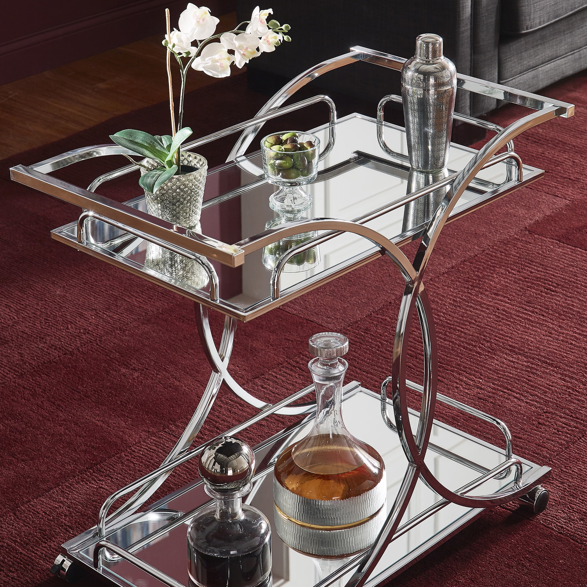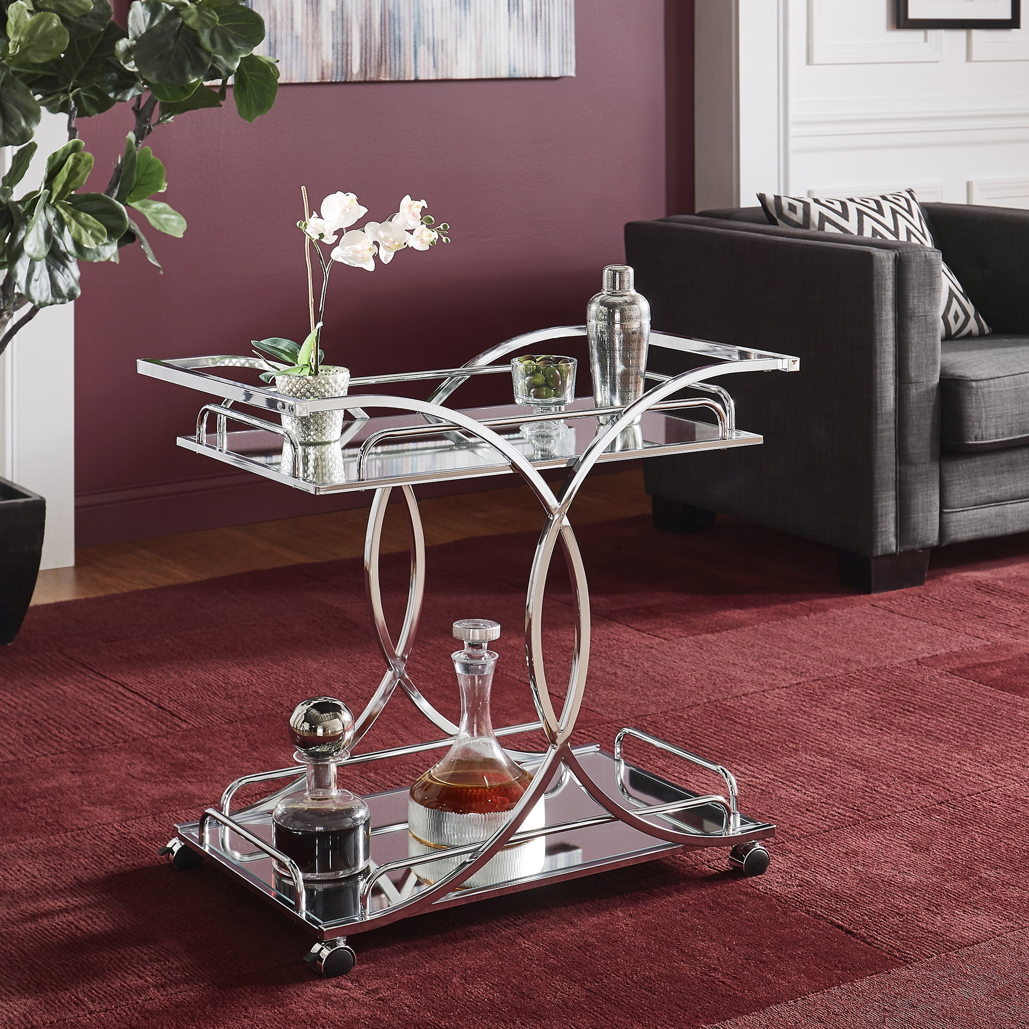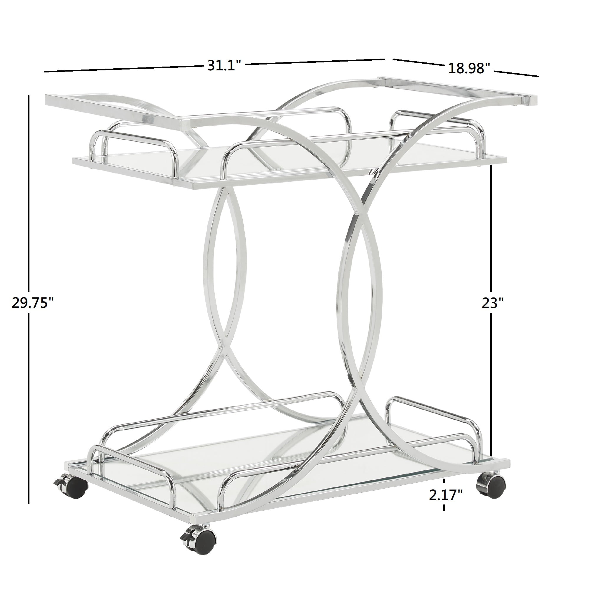 Weston Home Nicole Chrome Finish Bar Cart with Curving Metal Frame