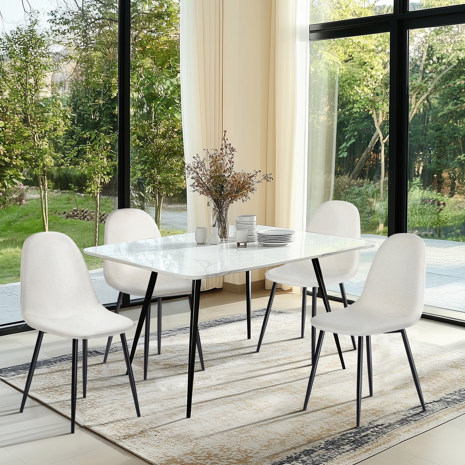 Dimensions (each): 19.37W x 18.7D x 35H in. Includes 2 matching side chairs All metal construction Wood-look finish in your choice of available color X-shaped chair backs Slightly contoured seats and subtly rounded backs Weight capacity: 250 lbs. Seat height: 18.51 in. Farmhouse or cottage style Assembly required