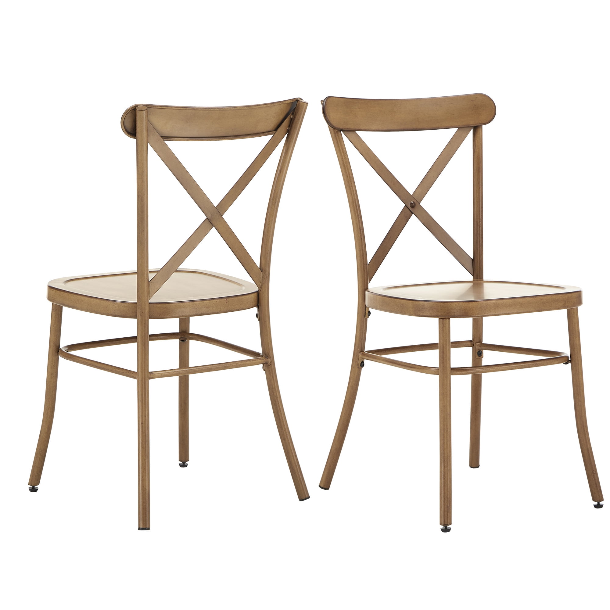 Weston Home Perry X-Back Metal Dining Chairs, Set of Two, Oak Finish
