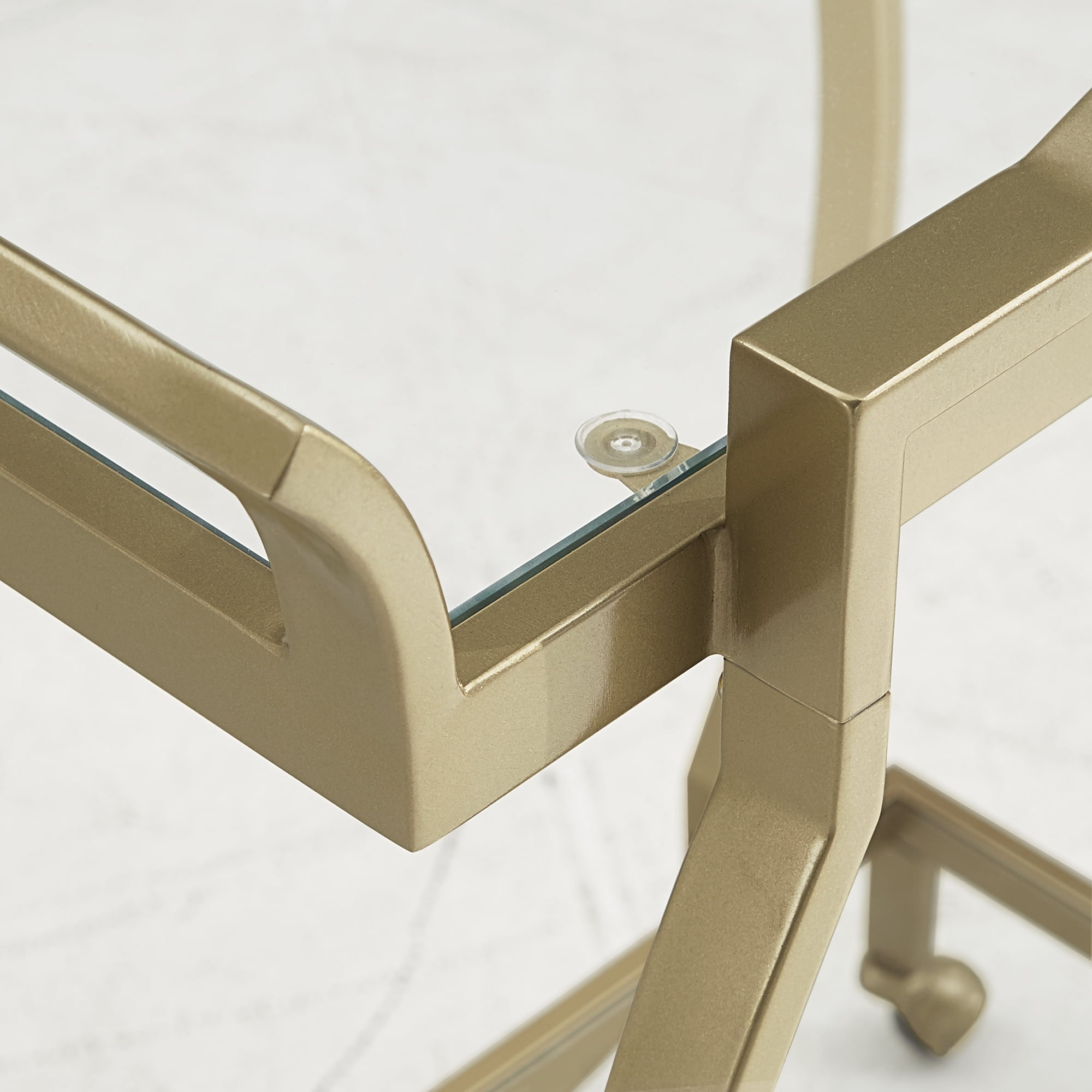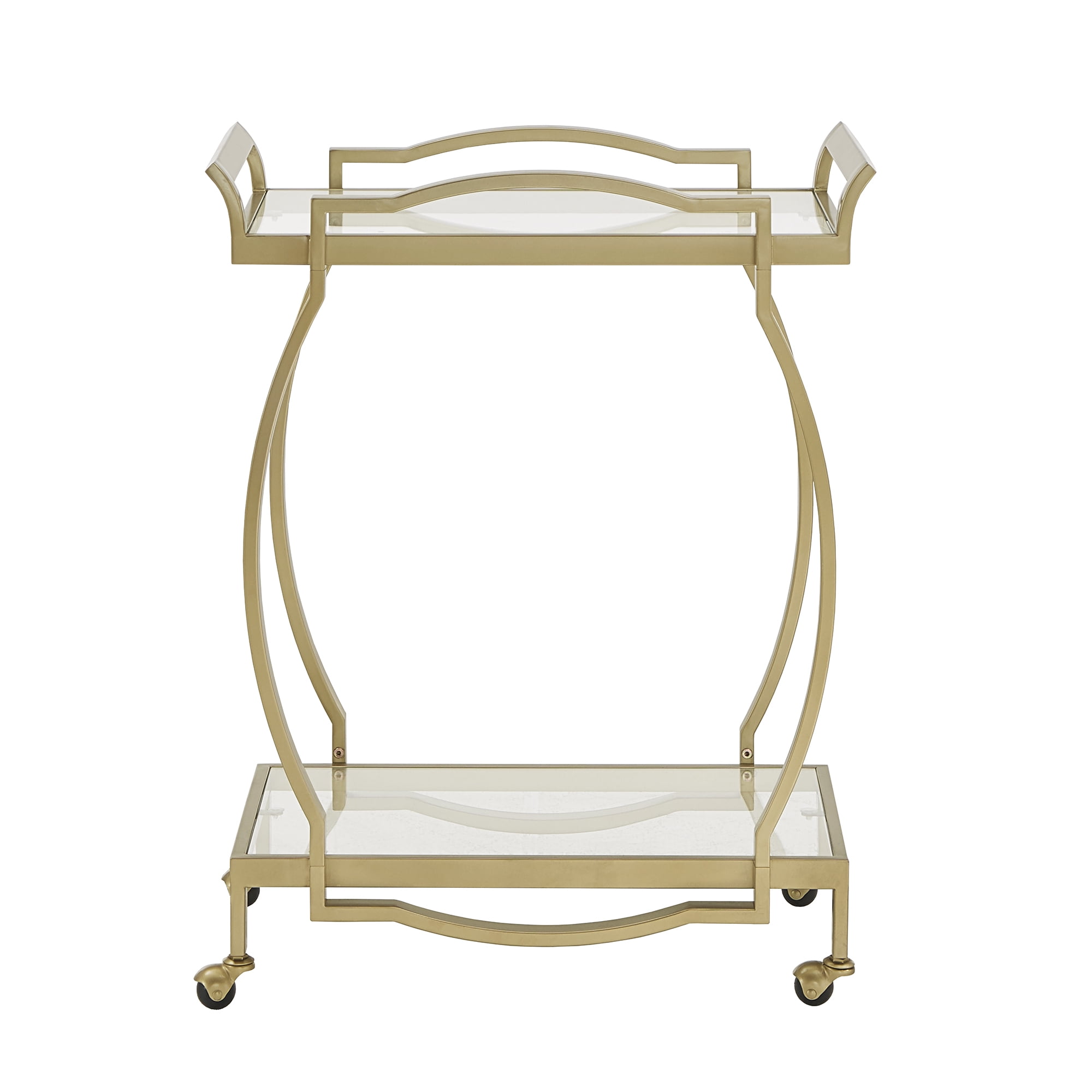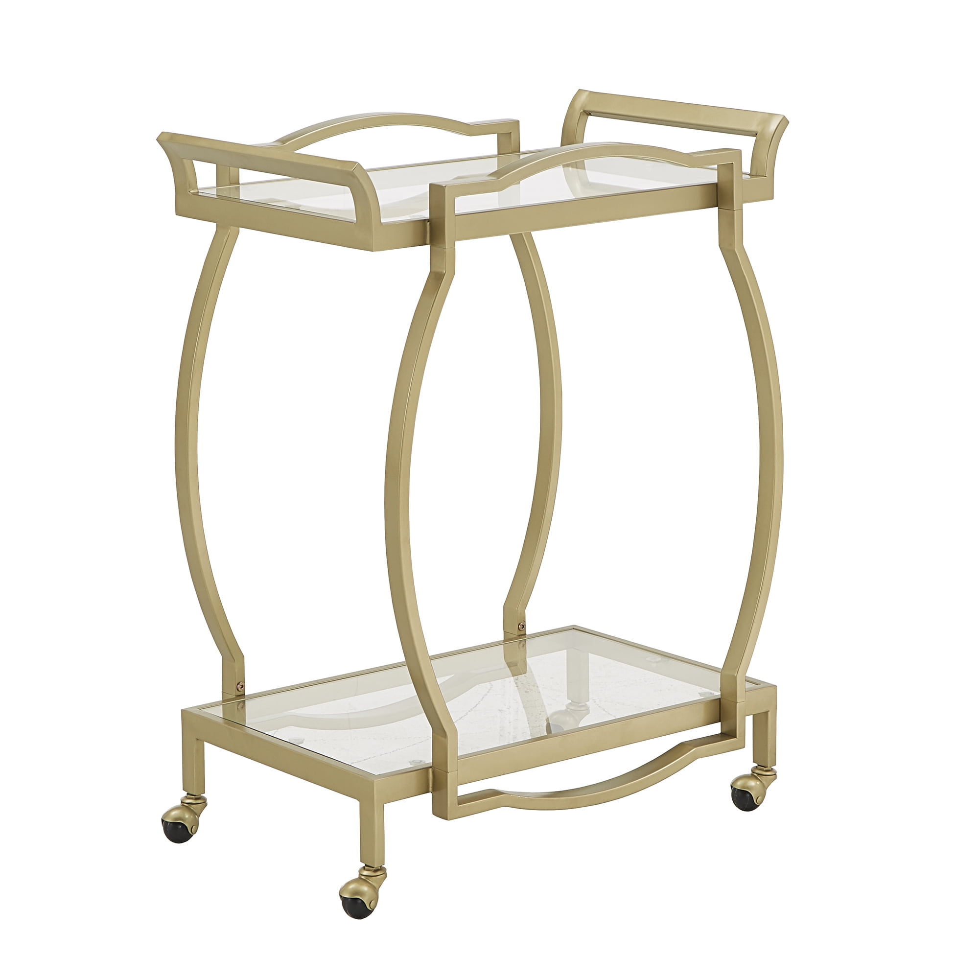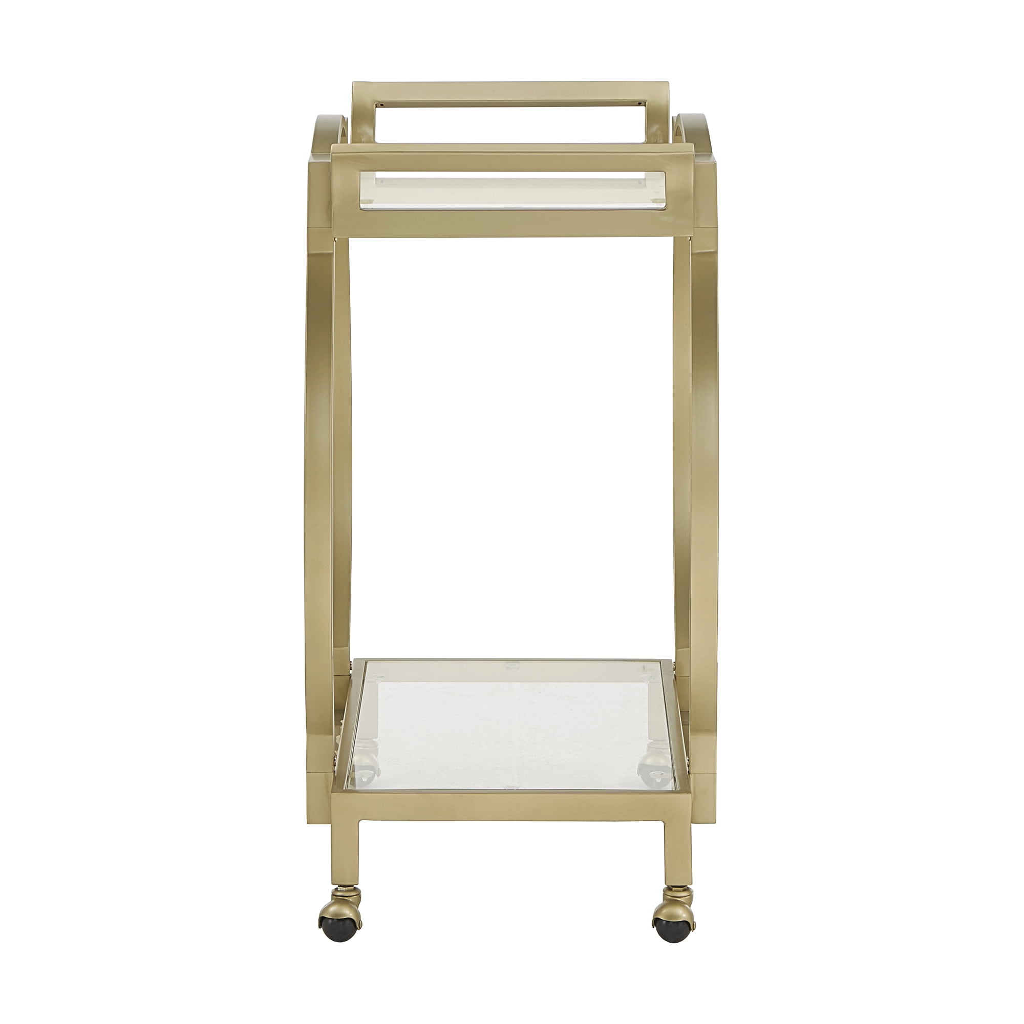 Weston Home Raven Gold Finish Clear Tempered Glass Metal Bar Cart