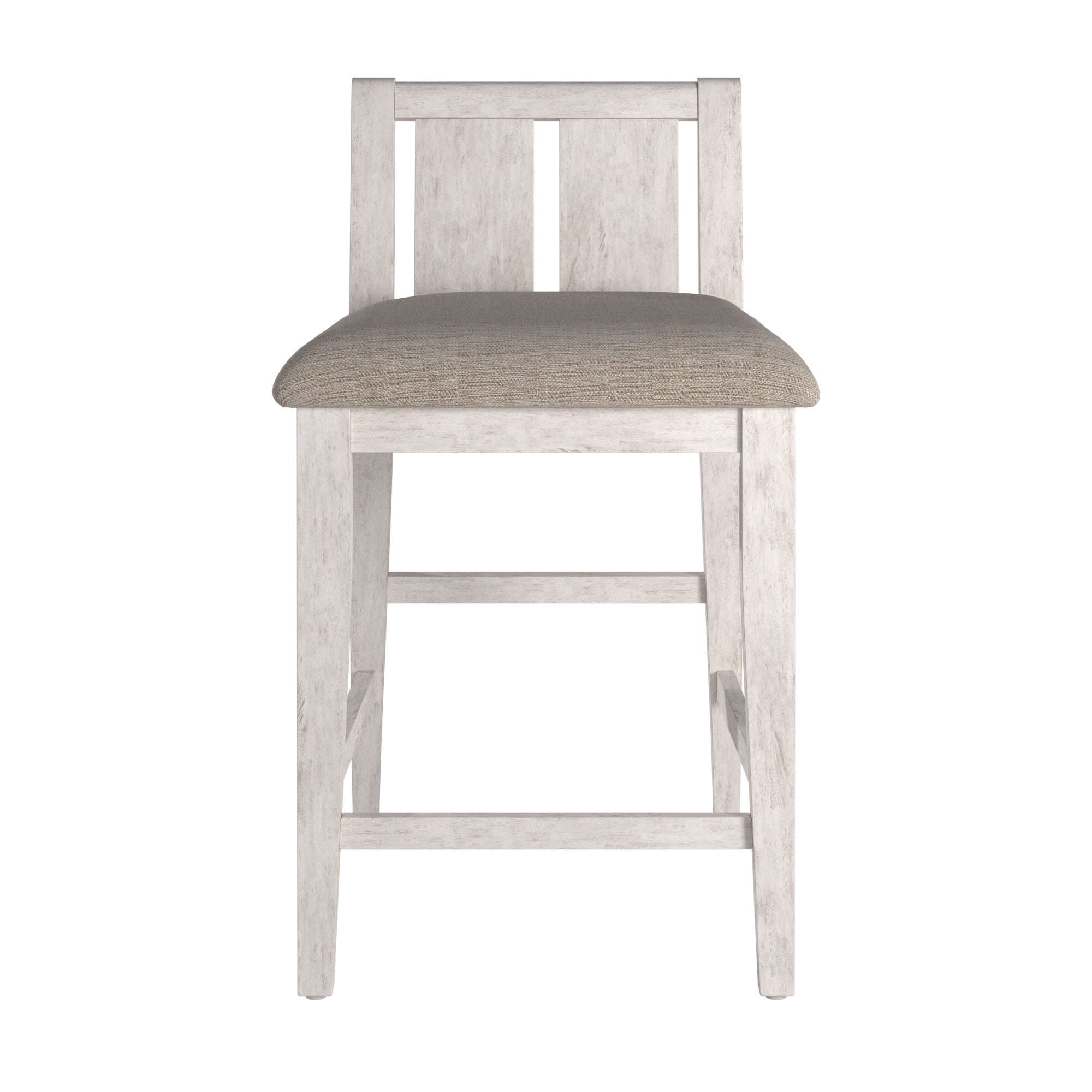Includes two (2) counter height chairs Low backrest Fabric upholstered seats Multiple finish options available Made with MDF, Mindy veneer, rubber wood, foam, and fabric Overall dimensions: 20 in. x 21.25 in. x 34 in. Seat dimensions: 20 in. width x 18 in. depth x 25 in. height Assembly required Ships in one (1) box