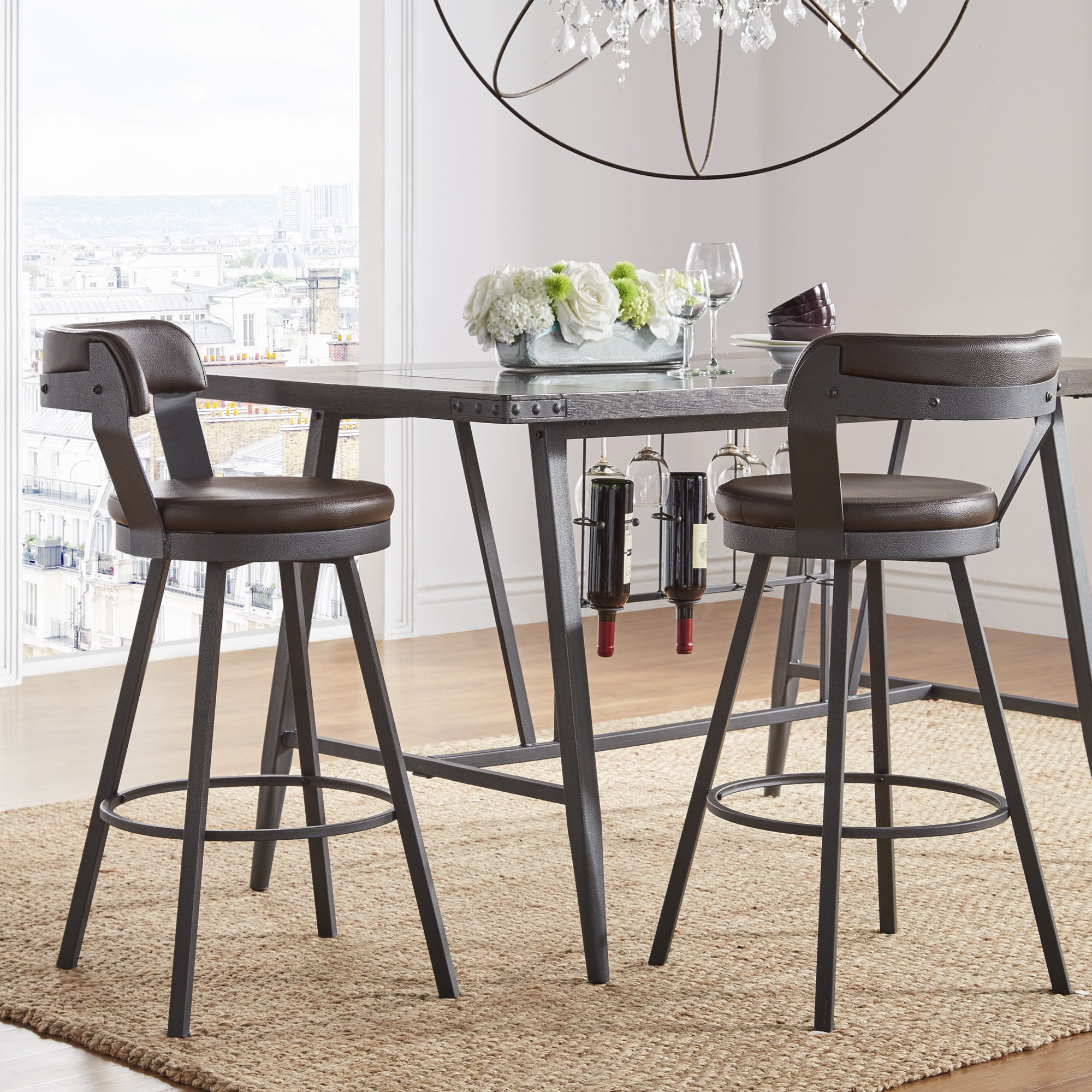 Weston Home Reinhold Bar Stool with Swivel, Brown, Set of 2
