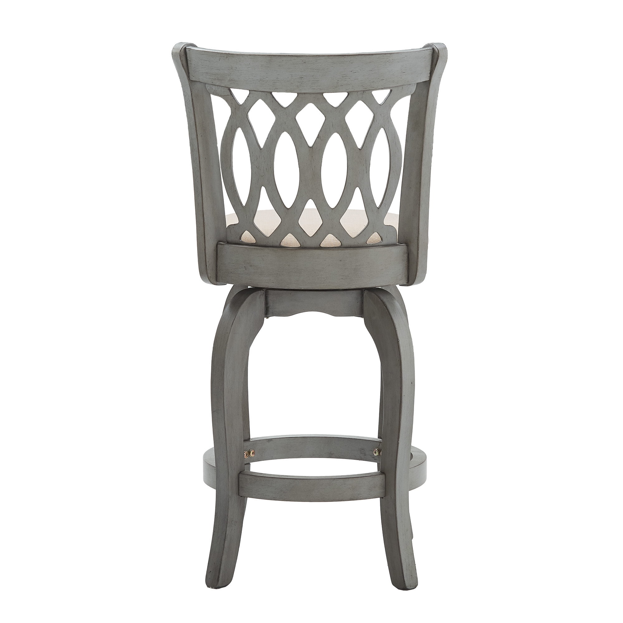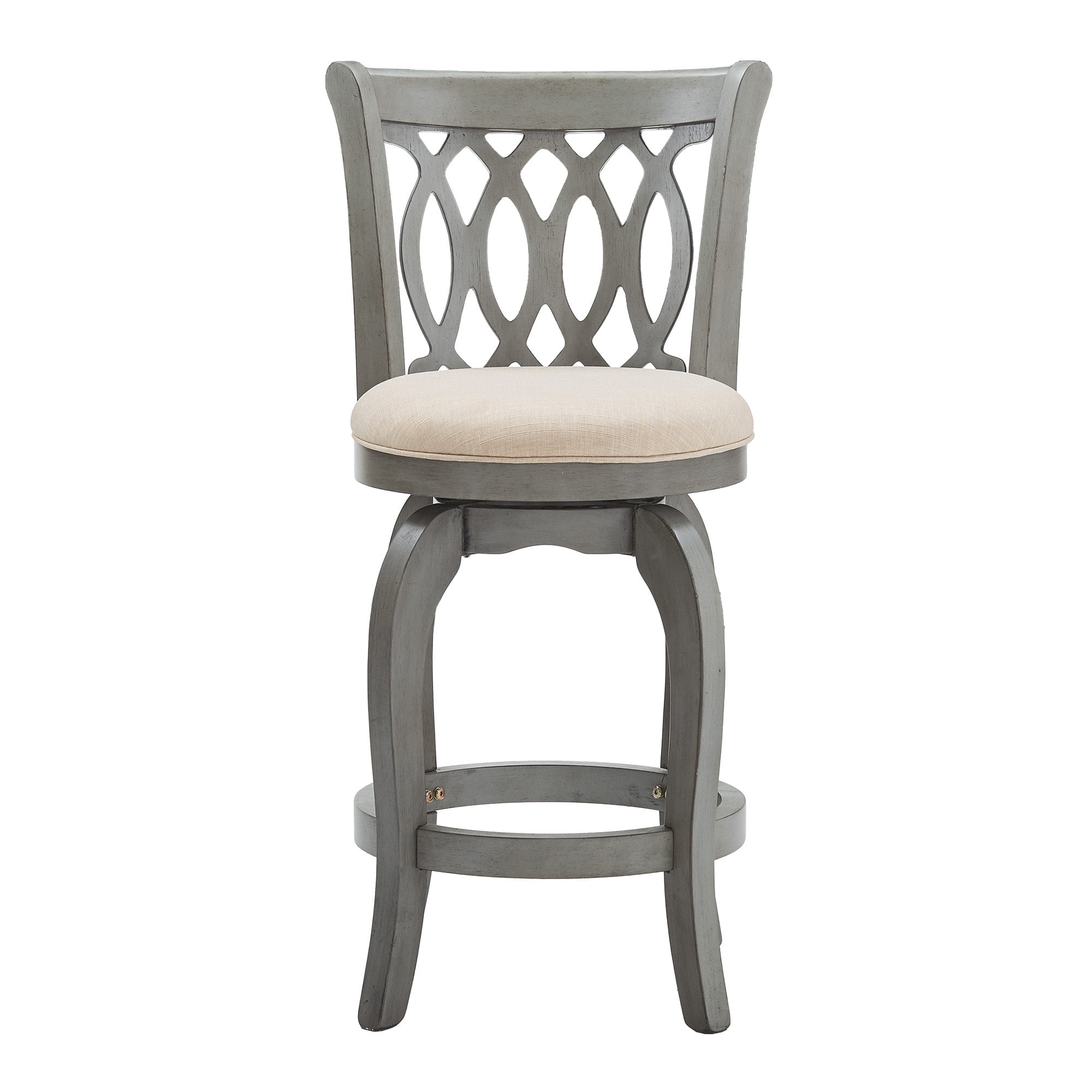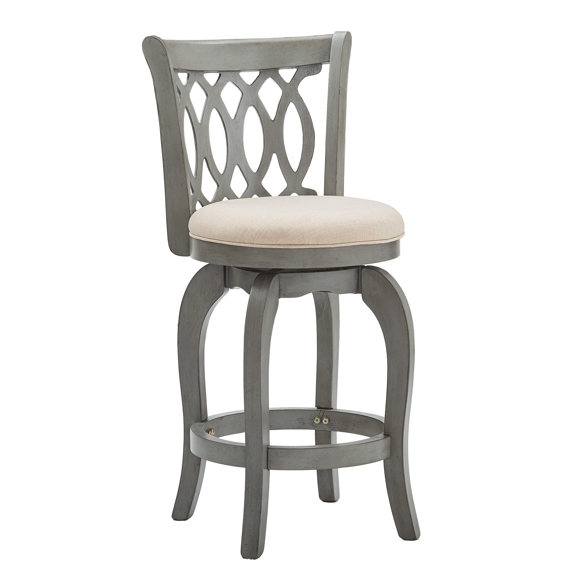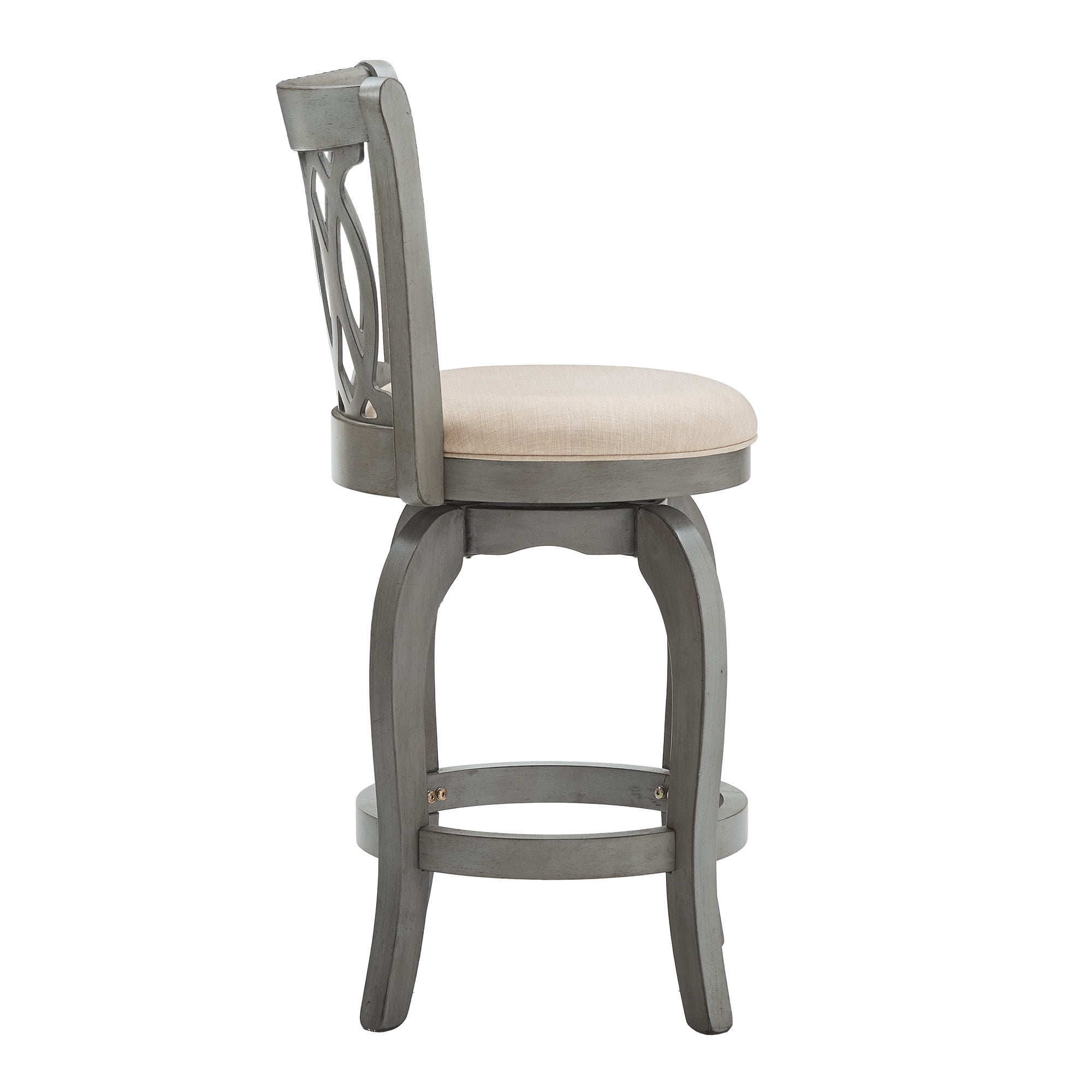 Weston Home Shapel Scroll Back Swivel Stool, 24″ Counter Height, Antique Grey Finish, Beige Linen
