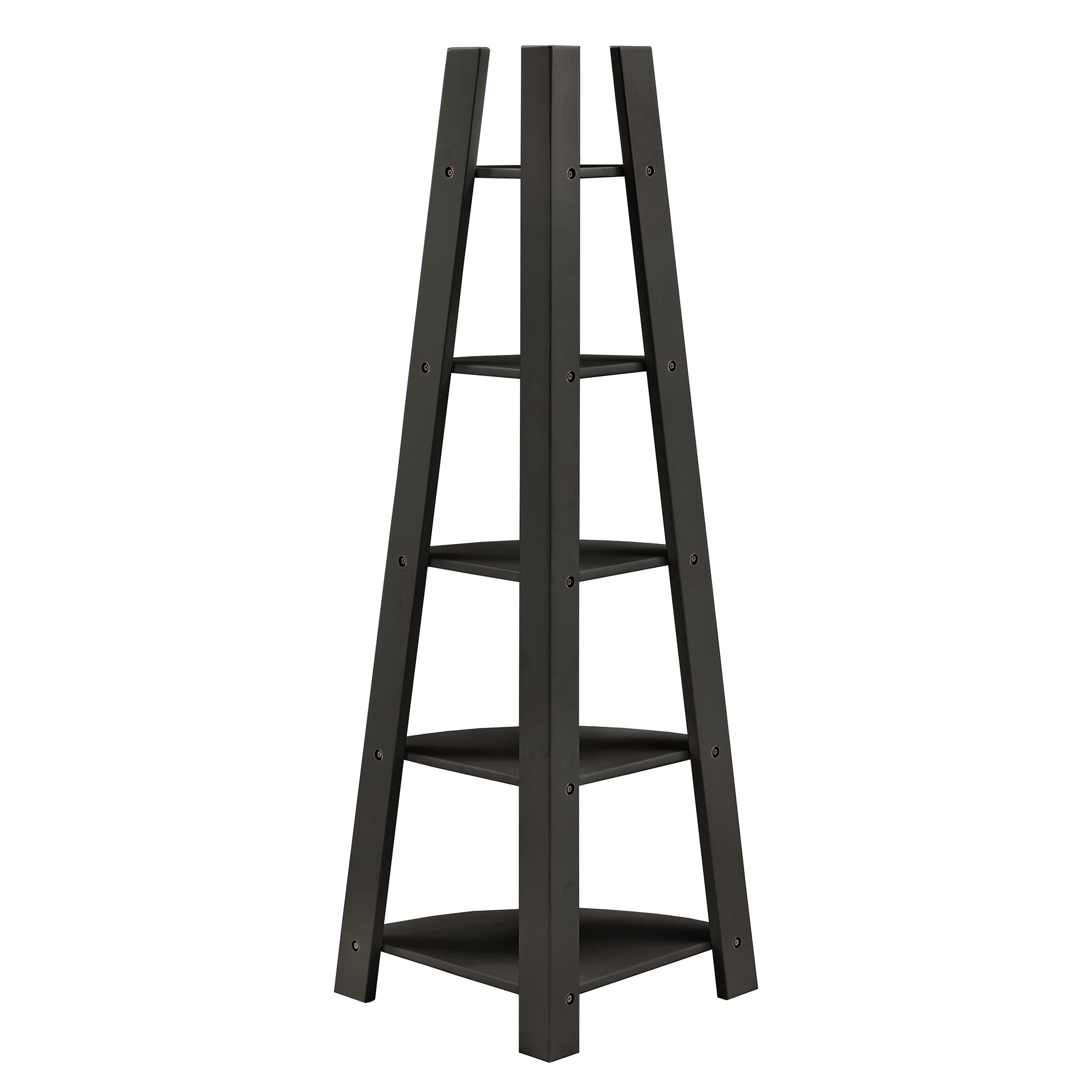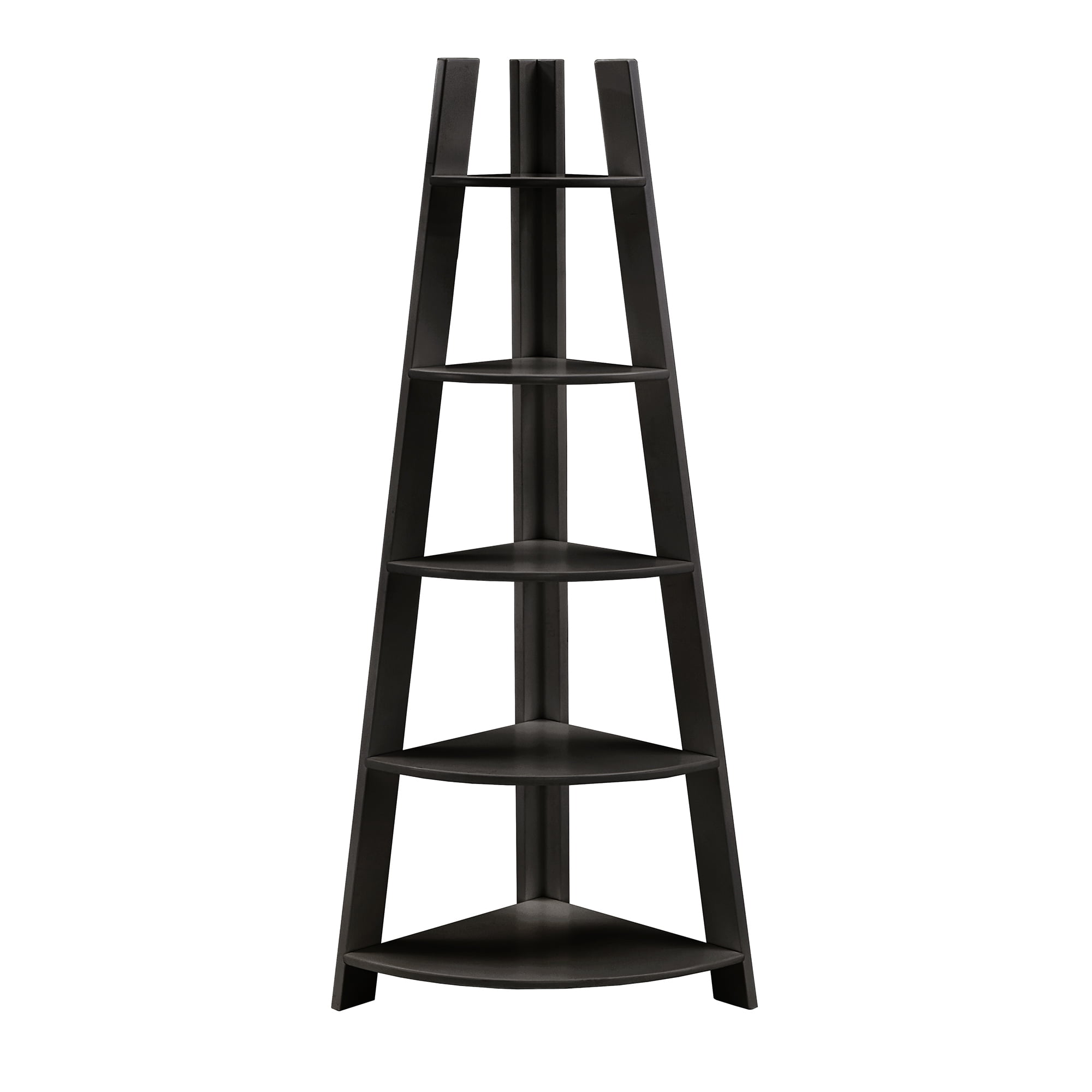 Weston Home Solvig Corner Ladder 5 Shelf Bookcase, Black