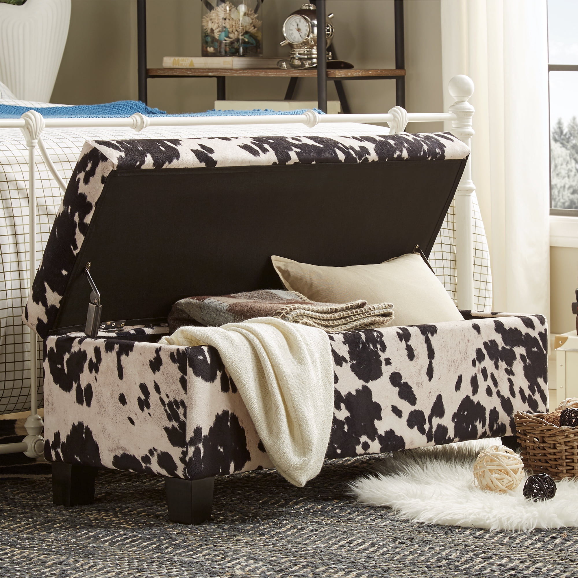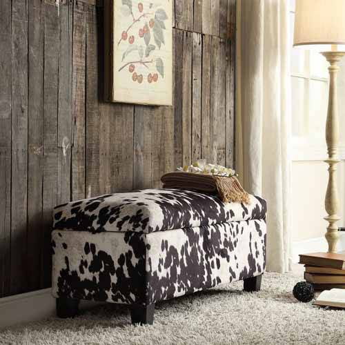 Weston Home Storage & Upholstered Bench, Black Cow