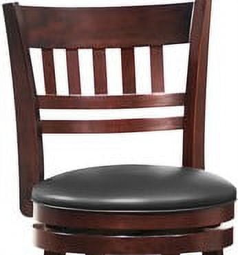 Enjoy easy conversation with anyone in the room from this Shapel collection cherry swivel stool. Foam fill cushioning provides a soft, comfortable seat while the base swivels smoothly, providing a complete 360-degree rotation for easy socializing. Perch your feet on the ring footrest that circles the base for relaxation and swivel control. The solid wood construction of this swivel stool offers strong support and long-lasting durability. Impart an old world pub feel to your entertainment room with the black faux leather upholstery on this comfortable high-back stool. Features: Solid wood frame Dark cherry finish Faux leather upholstery 360-degree swivel Comfortable footrest Bar height design Assembly required Specifications: Upholstery Material: Faux Leather Product Dimensions: 43.00″ H x 18.00″ W x 18.50″ D Target Audience: Adult (18 Years and Up) Assembly details: Adult Assembly Required, Tools Not Provided Product Color: Brown Maximum Seating Capacity: 1 Seat height maximum floor to seat top: 43 Seat height minimum floor to seat top: 43 Adjustability: Fixed Height Furniture Subtype: Bar Stools Seat Width: 16.5″ Seat Depth: 16.5″ Seat Height: 30″ Product Weight: 21.5 lbs Weight Capacity: 250 lbs
