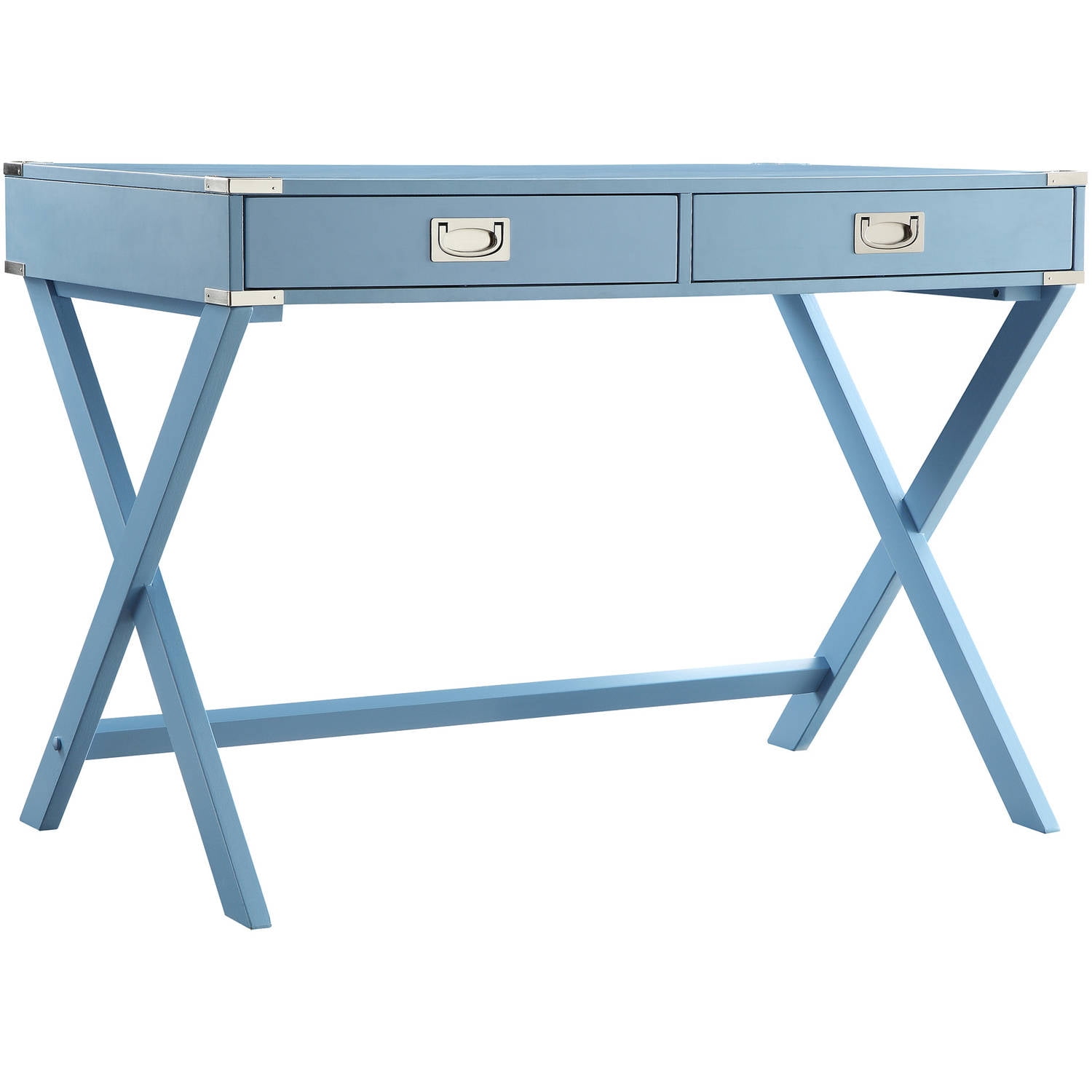 Weston Home Wood X-Base Campaign Writing Desk with Drawers, Heritage Blue