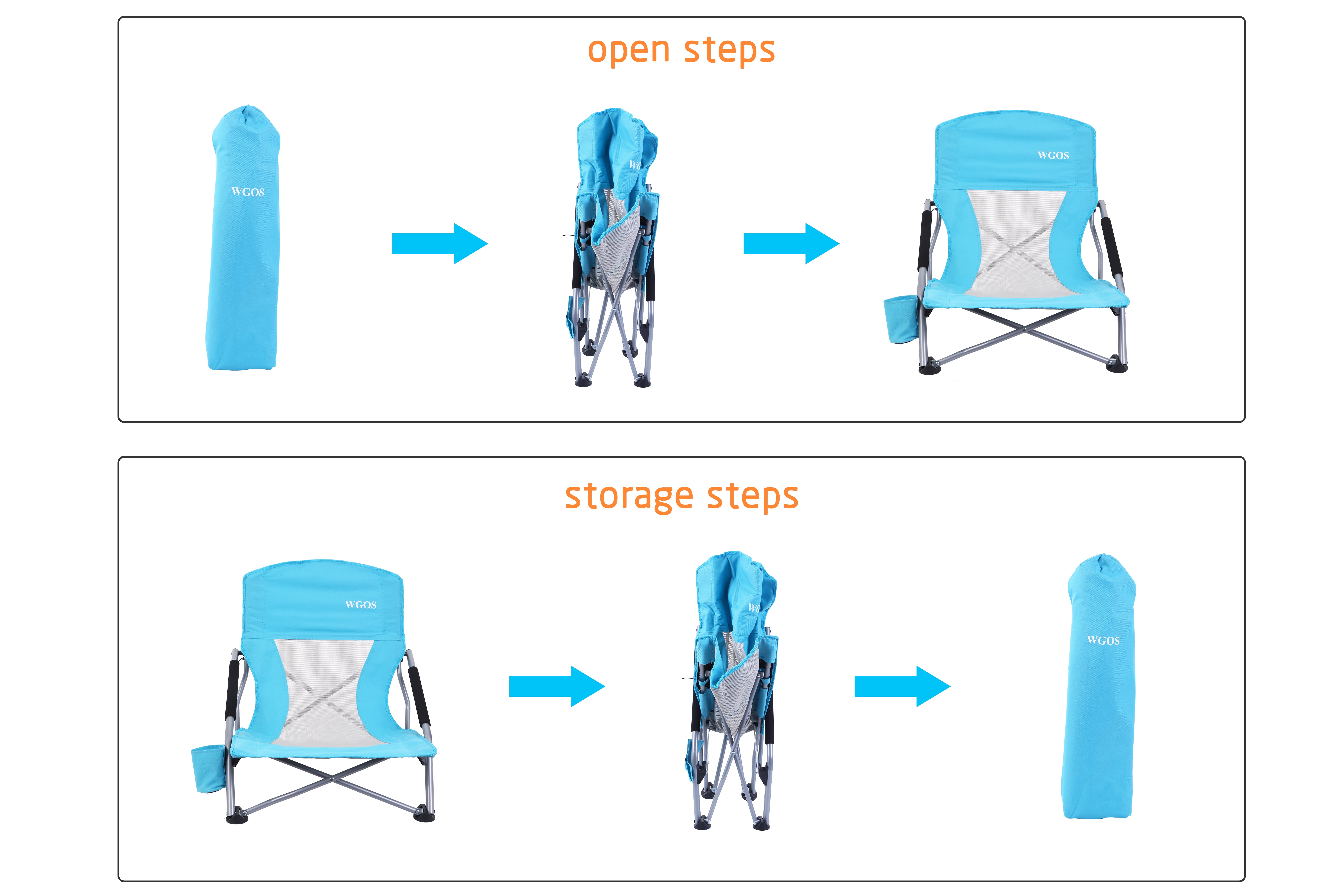 WGOS Portable Low Beach Chair with Detachable Umbrella and Cup Holder, Blue