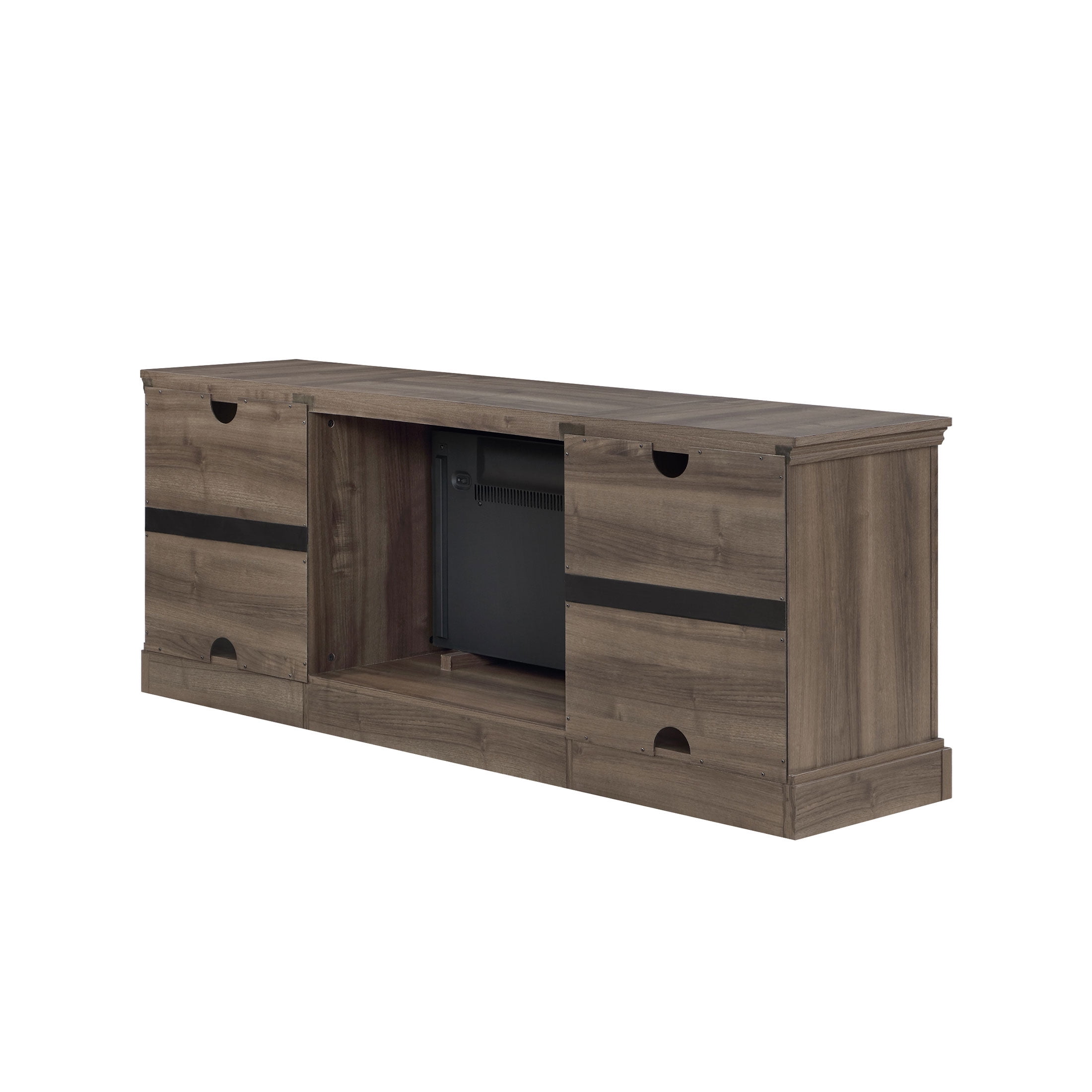 Whalen Furniture Quantum Flame Media Fireplace TV Stand for TV’s up to 75”, Walnut Brown Finish