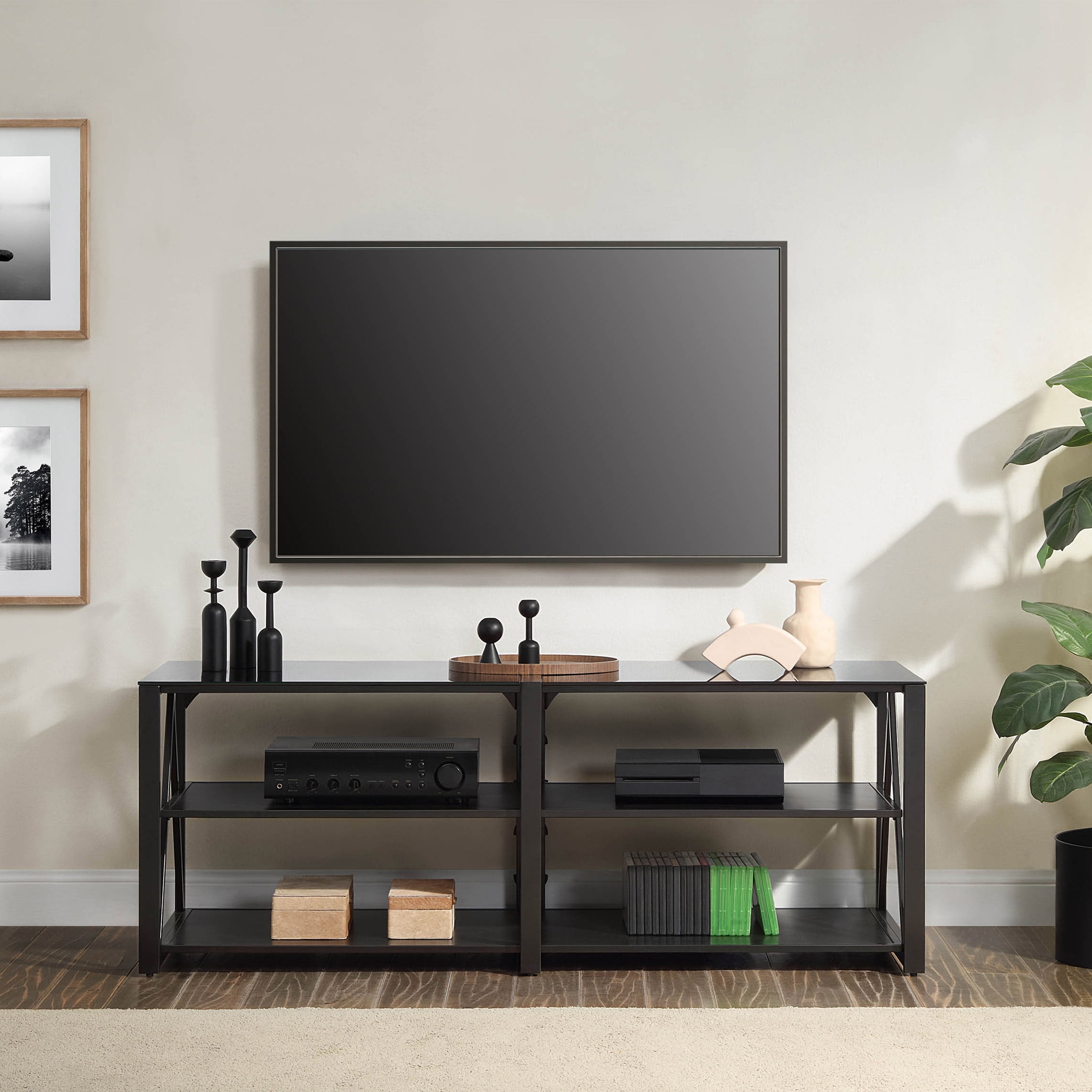 Whalen Spectrum 3-in-1 TV Stand for TVs up to 82”, Black Finish