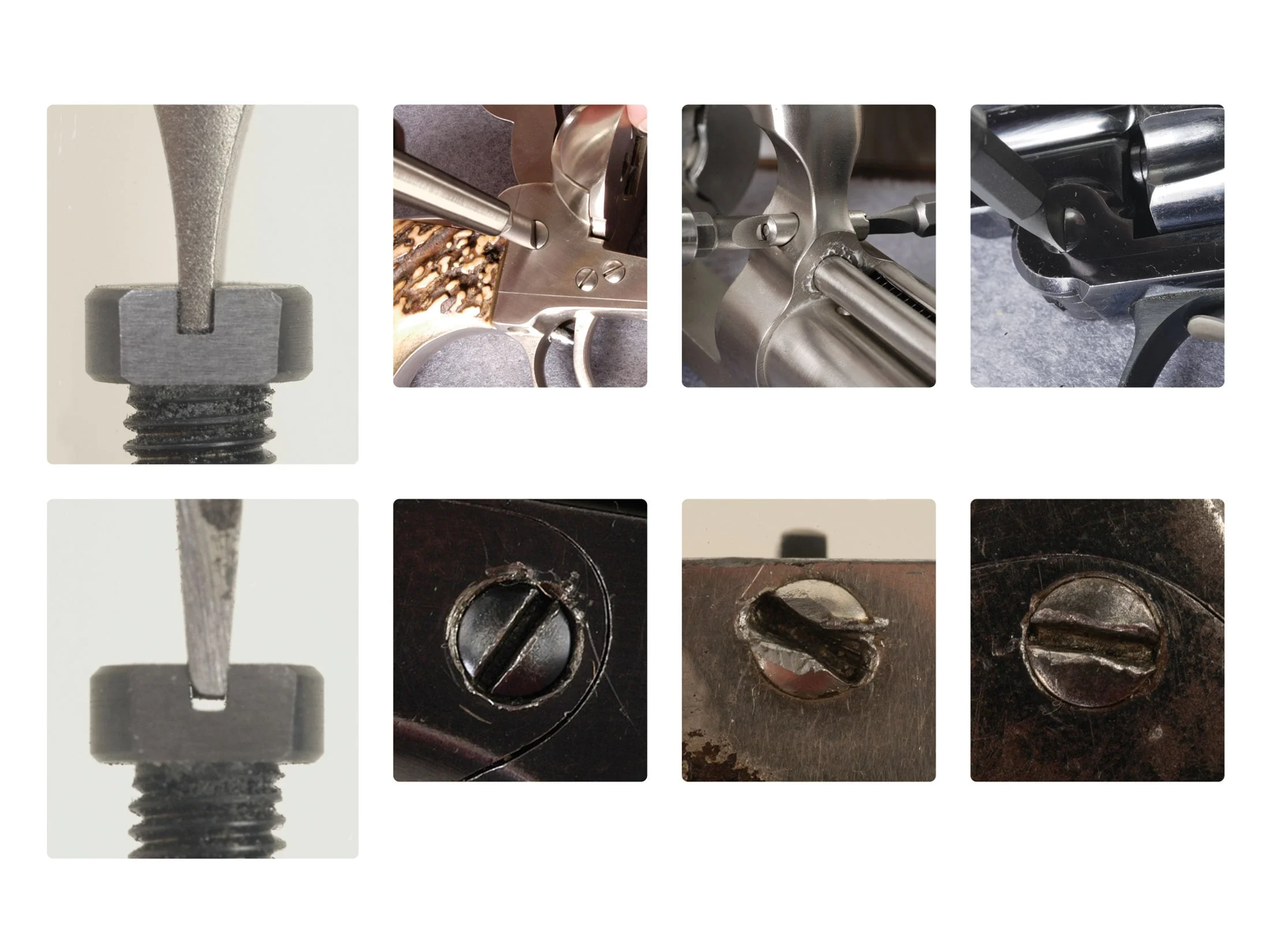 661120546214 WH 954621 Features:Hollow-ground bitsDurable S2 tool steelNo-slip handleMost popular bits for gunsmithingConvenient storage caseMagnetic bit retention in driverWheeler Professional Gunsmith 43 Piece Screwdriver Set Screwdrivers are the most important and most-used gunsmithing tools. Wheelers Professional Gunsmith 43 Piece Screwdriver Set is a kit that belongs on every gunsmiths bench. The well thought-out bit selection will put an end to burred buggered busted up screw slots on any gun that comes your way. The bits make up the heart of any screwdriver set and Wheelers are the finest available. They’re made from S2 tool steel and hardened to 56-58 Rockwell C. The hollow-ground bits are gently curved as it reaches the tip instead of being straight to protect the fit and finish of the screw. The hollow-ground shape spread forces equally along the sides of the screw slot resulting in no damage. The 43 Piece Screwdriver Set features a very comfortable overmolded screwdriver handle to ease all of your work. Never lose a bit with the durable custom box that?s ready for the bench or your range kit.WH 954621 661120546214