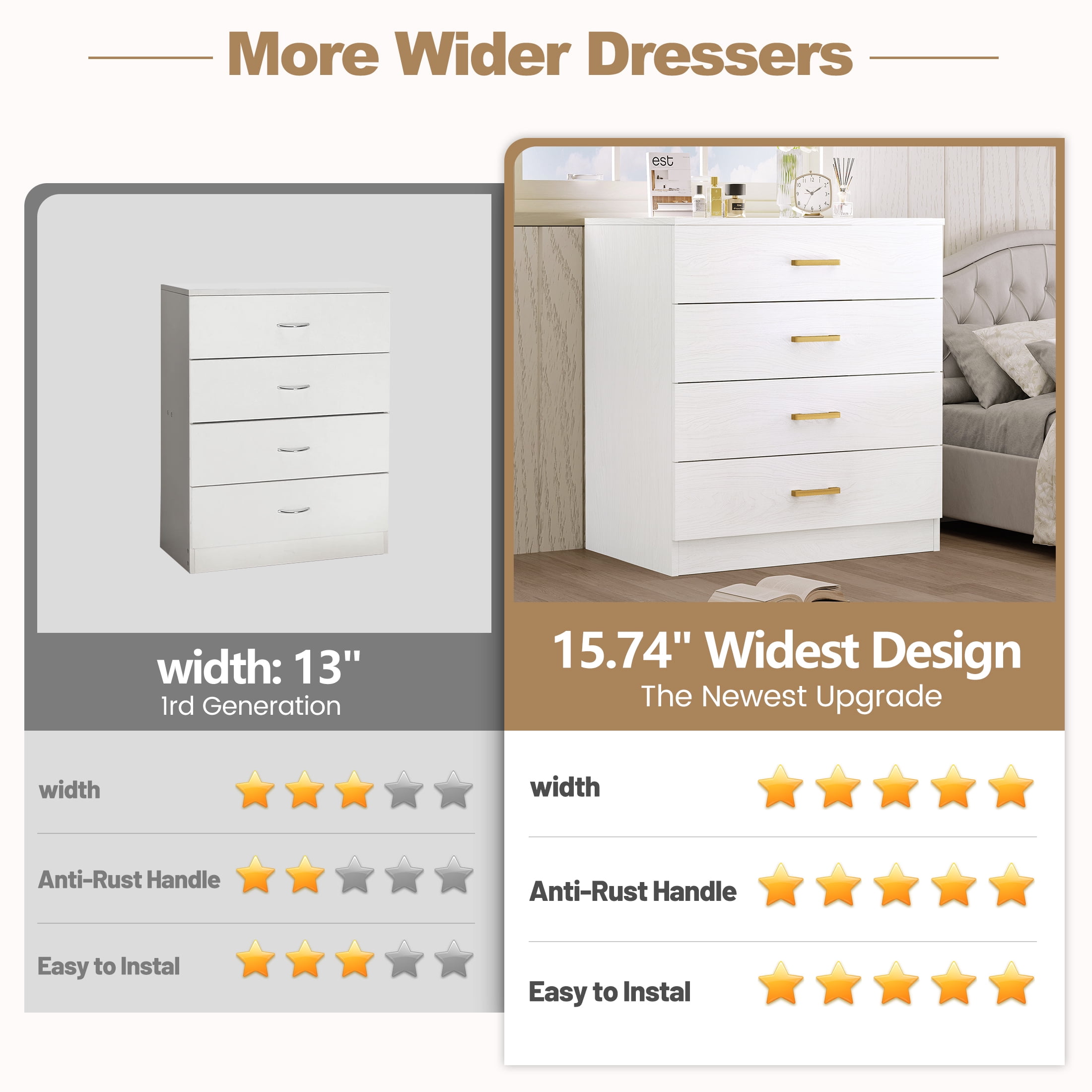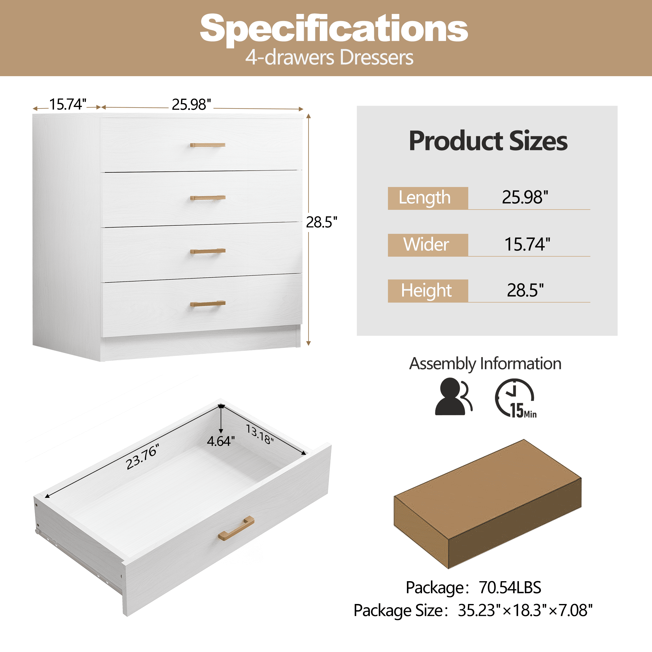 4 Drawer Dresser as the newest Stylish Design, which match perfectly with other Segmart storage towers. This chest of drawers is great for bedroom, closet, living room, hallway, dorm and office. The wood dressers for bedroom is ideal for organizing your daily necessities. WHY CHOOSE THIS UPGRADED PRODUCT? 1. Pay Attention to Our Upgraded Width — 15.74 inch 2. Add Design to Prevent Tipping — Safety for Children 3. Indispensable Load-bearing Capacity — 150LBS ✔️【White Dresser for Bedroom — Ample storage space】– Assembled dimension: 25.98″W x 15.74″D x 28.5″H. This wood dresser is designed with a spacious interior. Features 4 spacious drawers, this chest of drawers help you sort items by type. ✔️【150 lbs Load Capacity — Durable Construction】– The dressers & chests of drawers is all made of solid wood, which is very strong and stable. Each wood drawer can hold up to 45lbs, and the wood tabletop can hold up to 150 lbs, which make it more stable and safe. ✔️【Easy Assembly — Just 20 Minutes】– With detailed instructions, you can have your dresser set up in 20 minutes. Our package comes with instructions and tools required for installation. ✔️【Classic Chest of Drawers — Two Colors to Choose】– We offer 2 types of drawers for you to choose. The bedroom dresser is in a simple and modern style, which is very classic. It can be matched with any home style. ✔️【Elaborate Production — Without Noise】– Each drawer is equipped with metal handle and slide rail, which can help you pull the drawer out smoothly without making noise. Specifications: Item Name: 4-Drawer Dressers Table Dimension: 35.03″ x 18.11″ x 7.87″(L x W x H) Package Weight: 70Ibs Package Includes: 1 x 4-Drawer Dressers 1 x Instruction