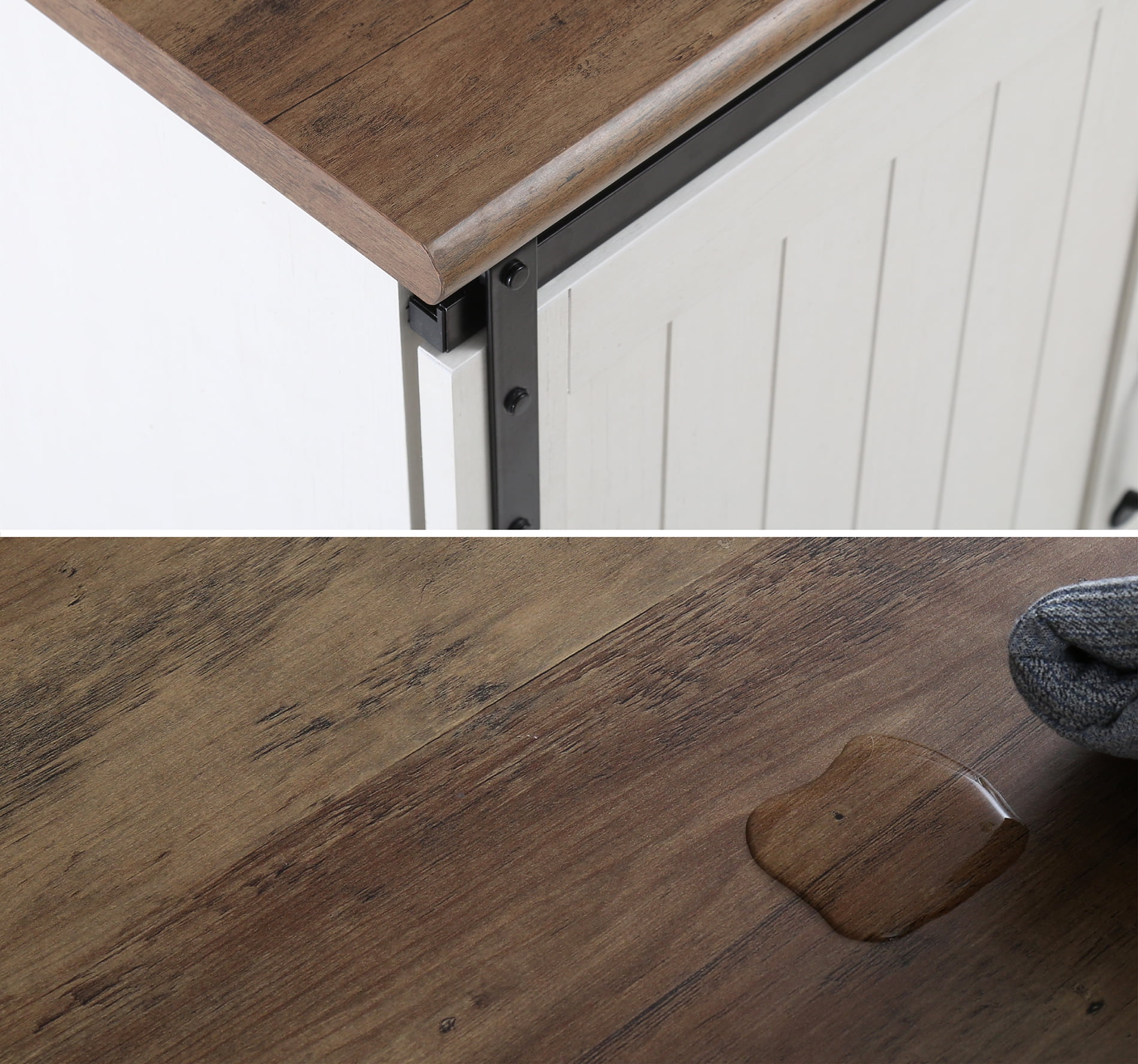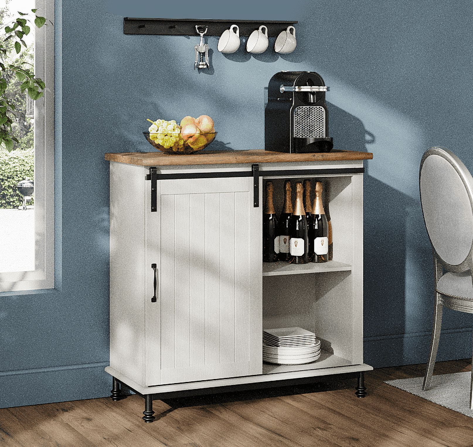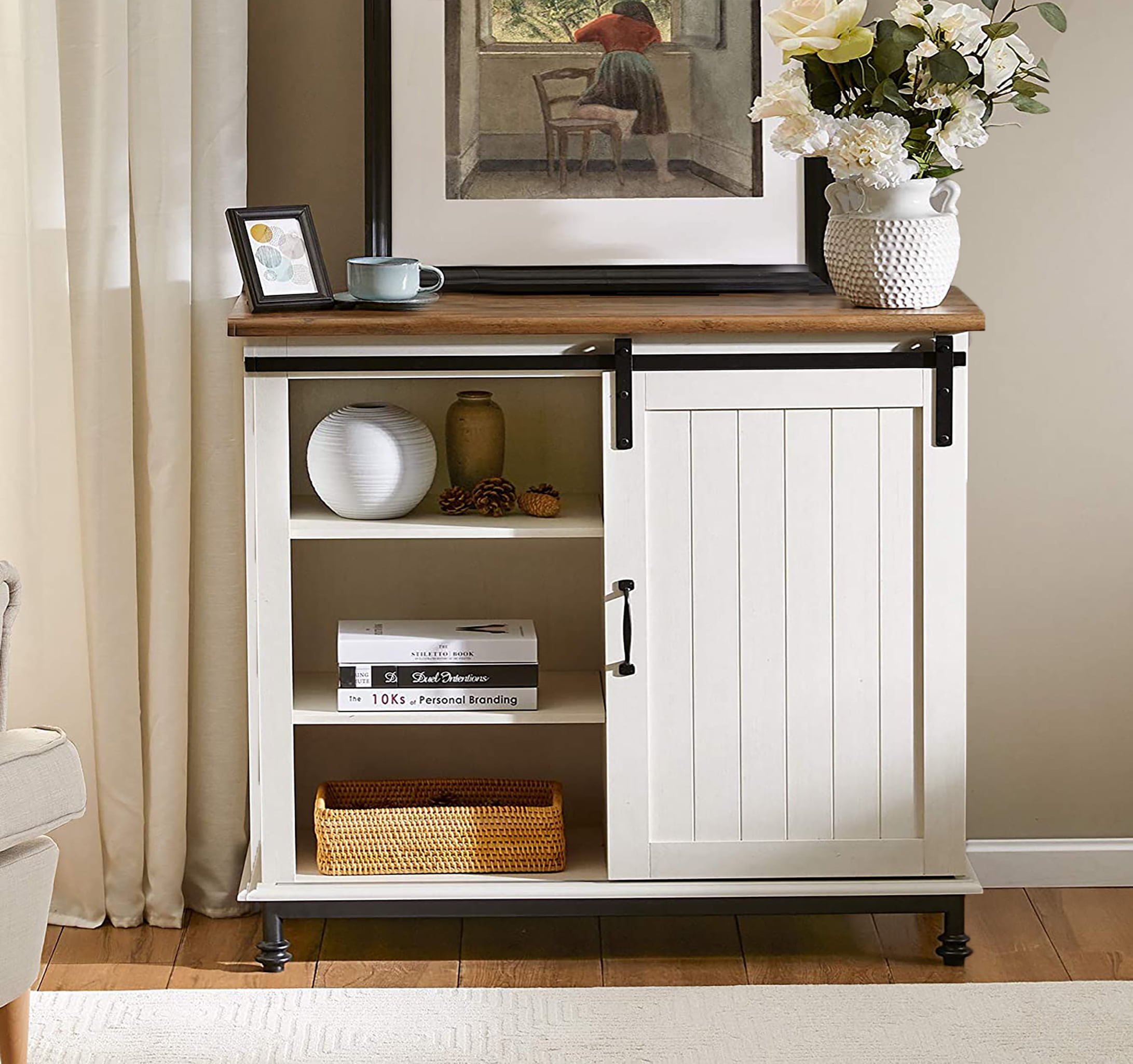 【Sturdy and Durable】: Composed of high grade MDF material makes it stable. The wooden storage cabinet is surely your reliable helper in refreshing your home to a neat and organized place. Perfect for Diningroom, Entryway, Living Room, Kitchen, Bedroom etc. 【Smoth Sliding Barn Door 】Designed with slide rail and retro black metal hardware for easily push and pull, which does a good job of saving space and thus is great for small rooms. 【Multifunctional Cabinet & Adjustable Shelf】: Featuring the height adjustable shelves, you can adjust it by removing the board directly according to your needs. 【High Load Capacity】This buffet cabinet boasts a load capacity up to 99lb on the top, 66lbs on the bottom board and 33lb on each of the three adjustable shelves .You can store all the items with a total weight up to 250 lbs approximately. 【Easy to Assemble】A Clear instruction is included, which has straightforward illustrations and descriptions. Each screw and pin has its own code and boards are clearly labeled to let you easily understand the assembly progress. In case of any problem or you are not satisfied, please tell us without hesitation, we will try our best to solve your problem and provide professional service.