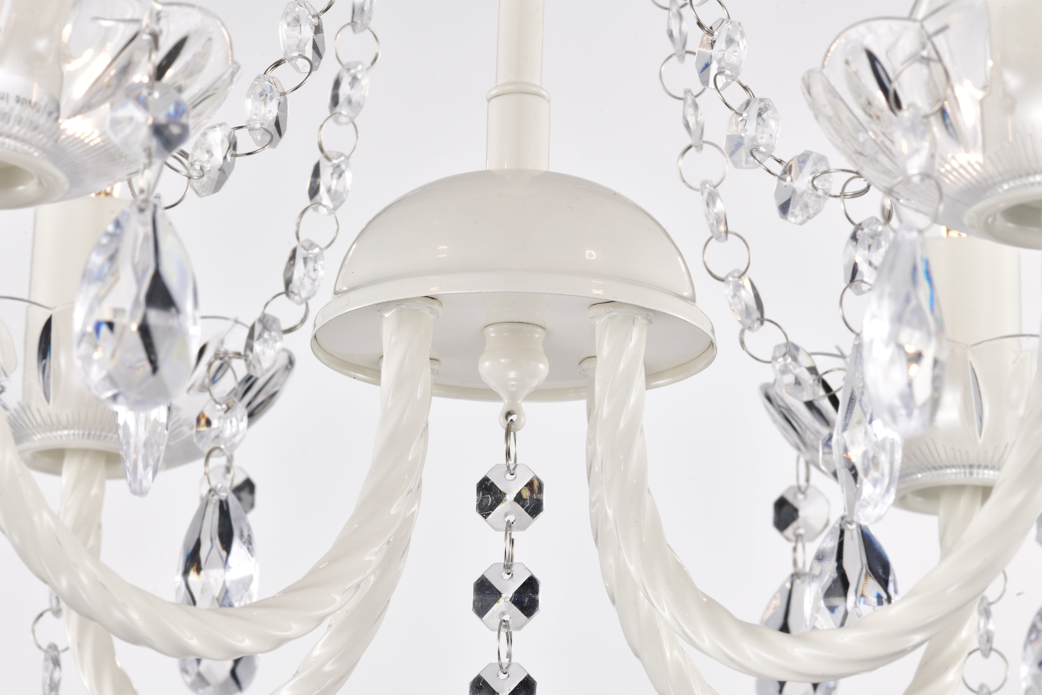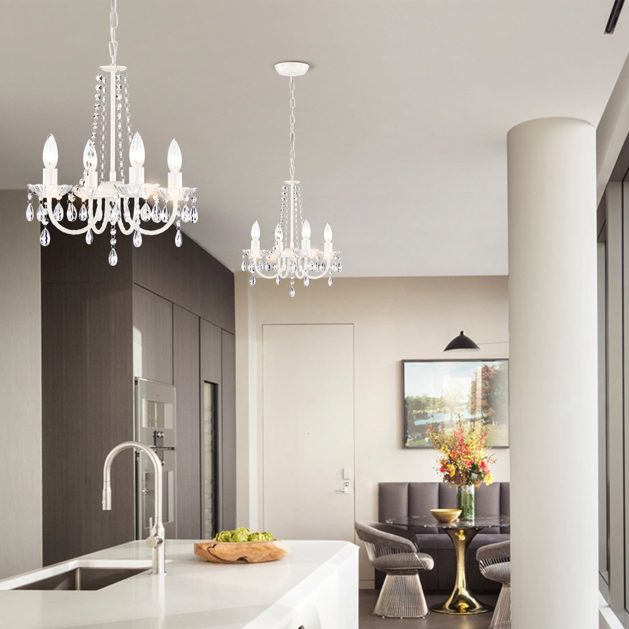 Mini Crystal chandeliers features a 4-light design and is decorated and draped with clear acrylic crystals that capture and reflect the light of the bulbs. white crystal chandelier combines a sophisticated white structure with sparkling crystals in several different shapes. White bedroom light fixture is perfect for your main living room or bedroom.