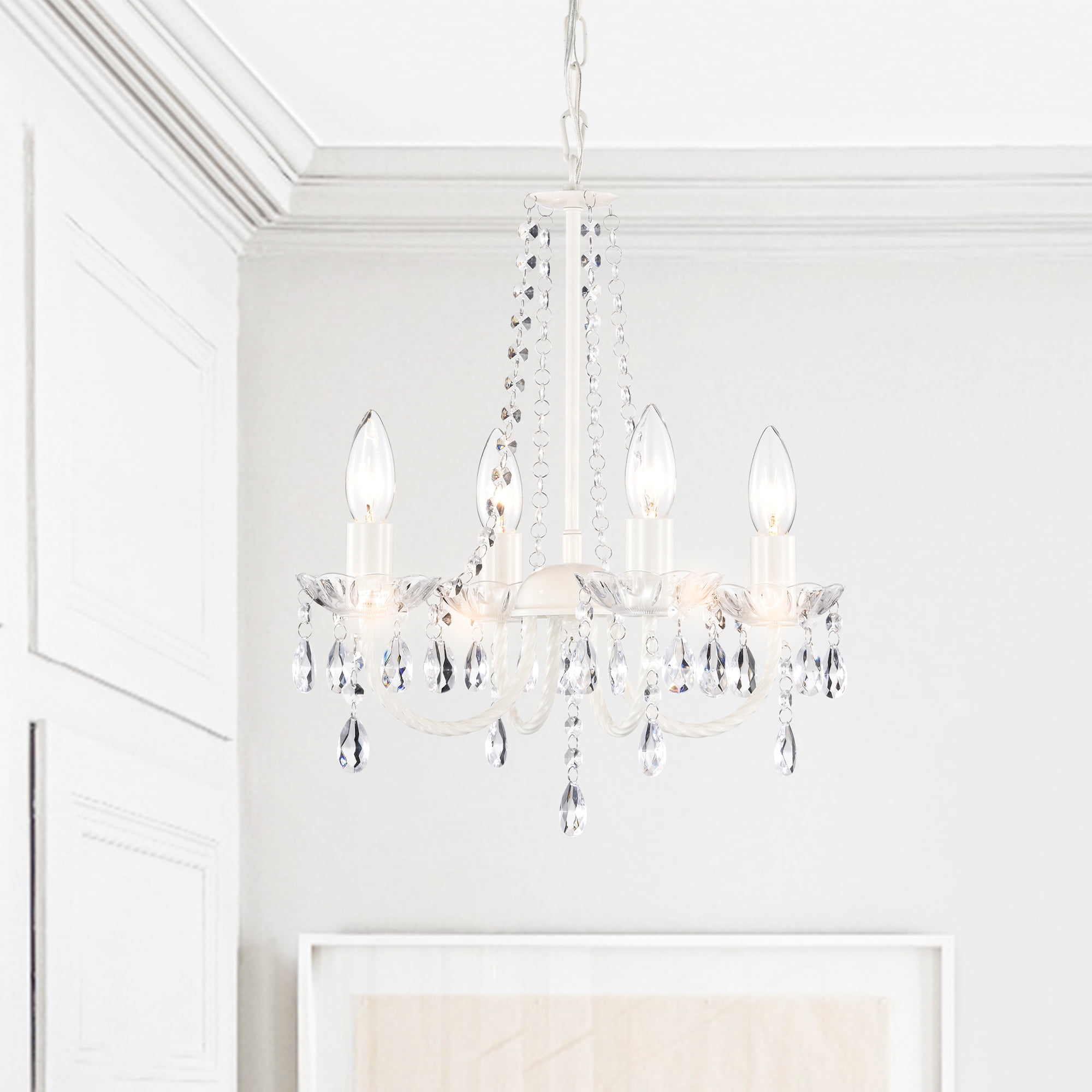 White Chandelier 4-Light Crystal Chandelier Light Fixture Girl Chandelier for Bedroom