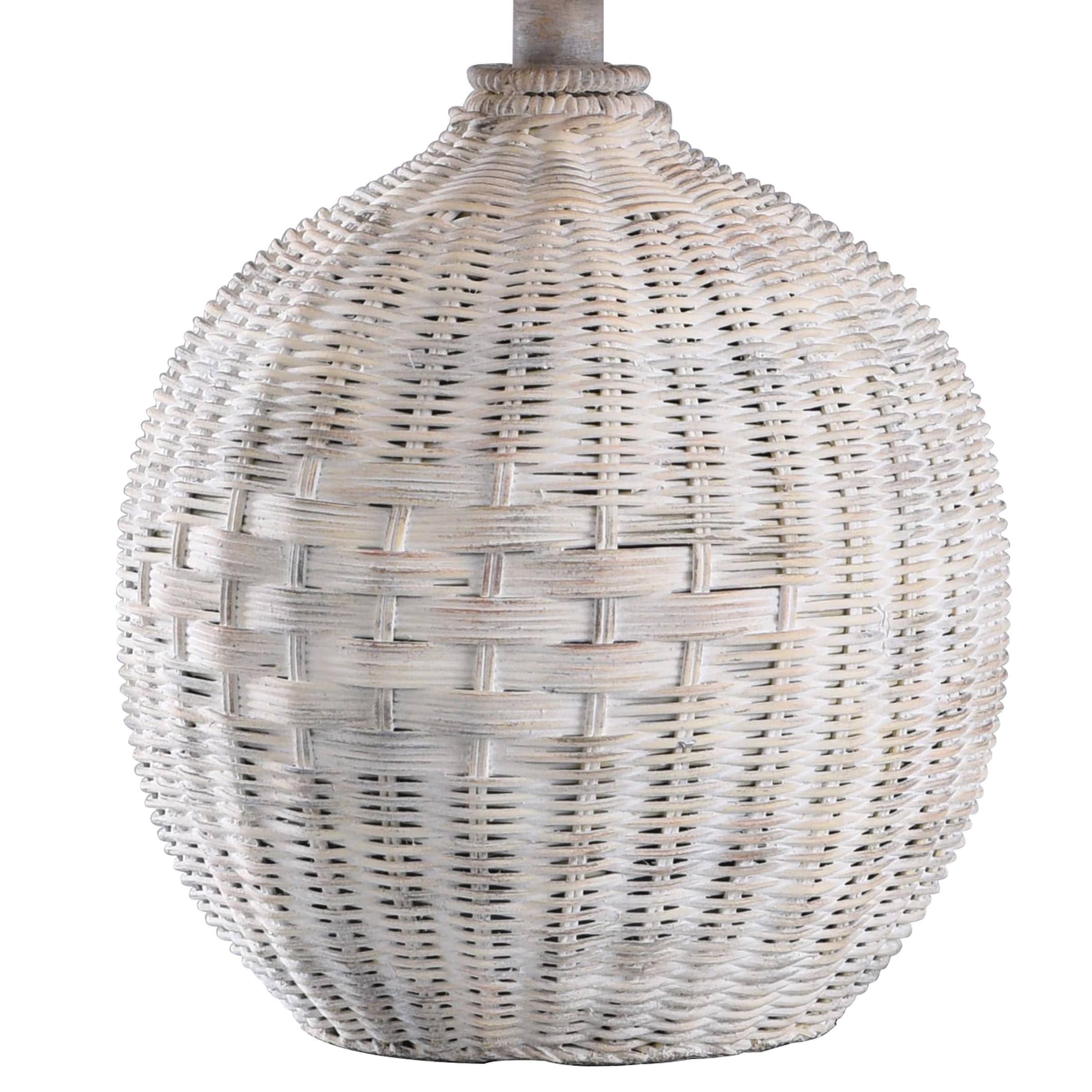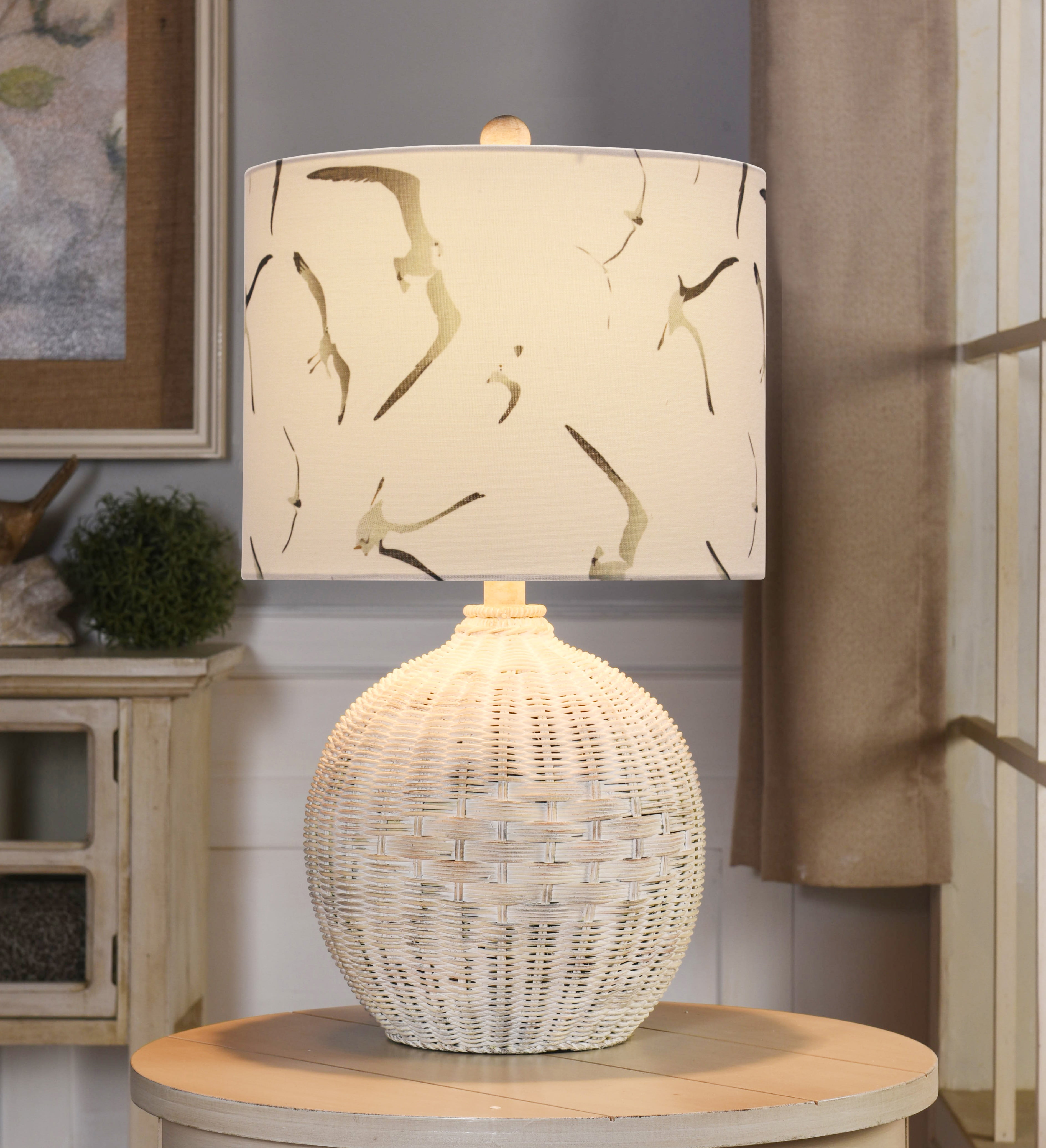 White Rattan Table Lamp – Natural With Wash – White, Seagull Print