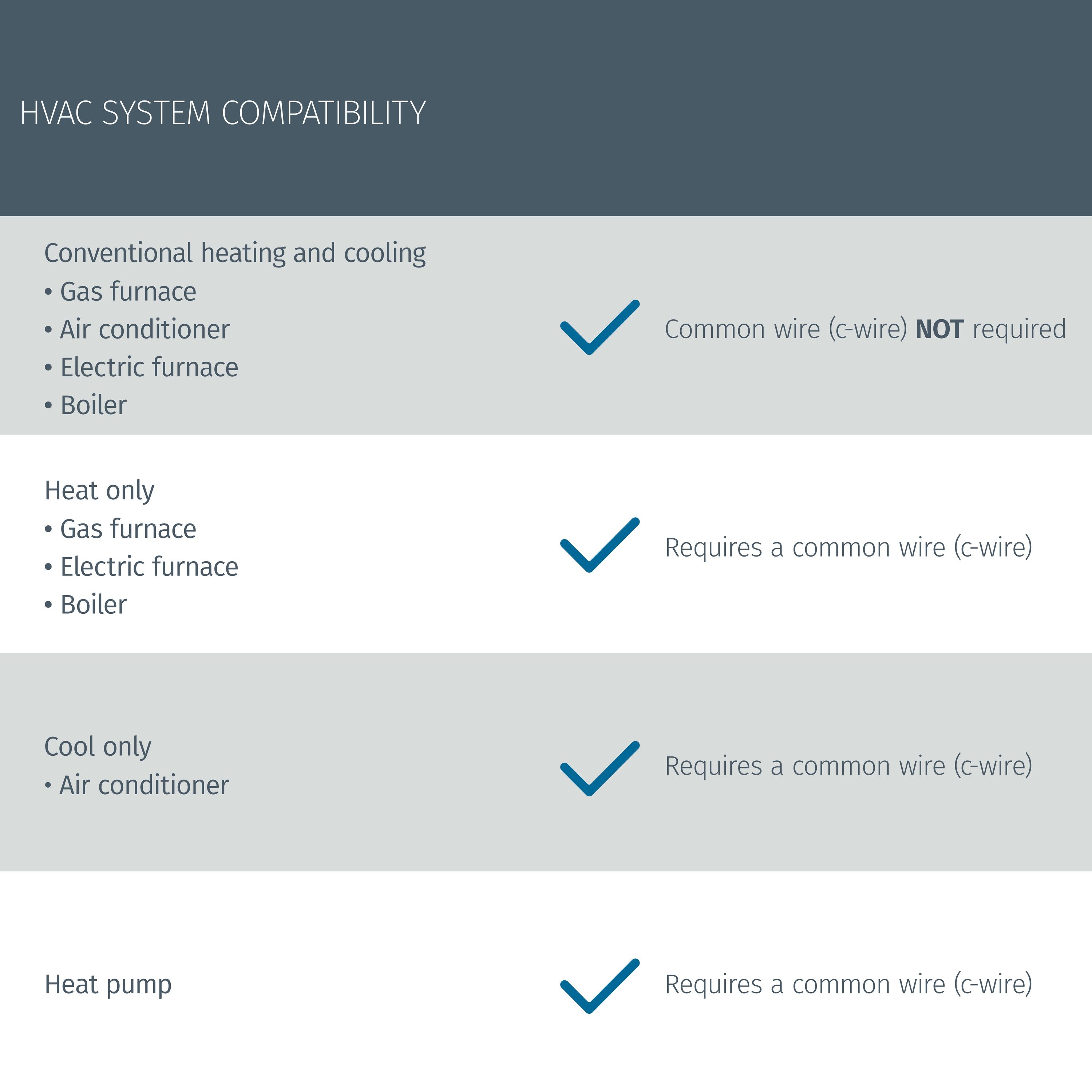 From across the room or across the country, your Sensi™ Wi-Fi thermostat makes it easy to remotely control and schedule your home comfort. Designed to work with the wires you already have, Sensi thermostat does not require a common wire (c-wire) for most installations, so it is compatible with the HVAC equipment in many homes. A c-wire is required for heat-only, cool-only and heat pump (without aux) systems. Check compatibility on our website..