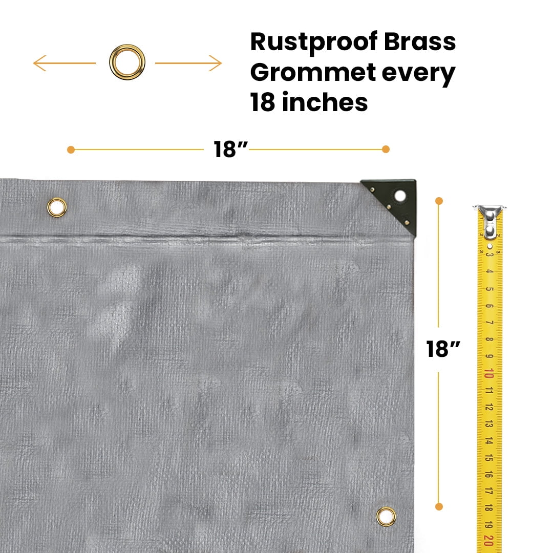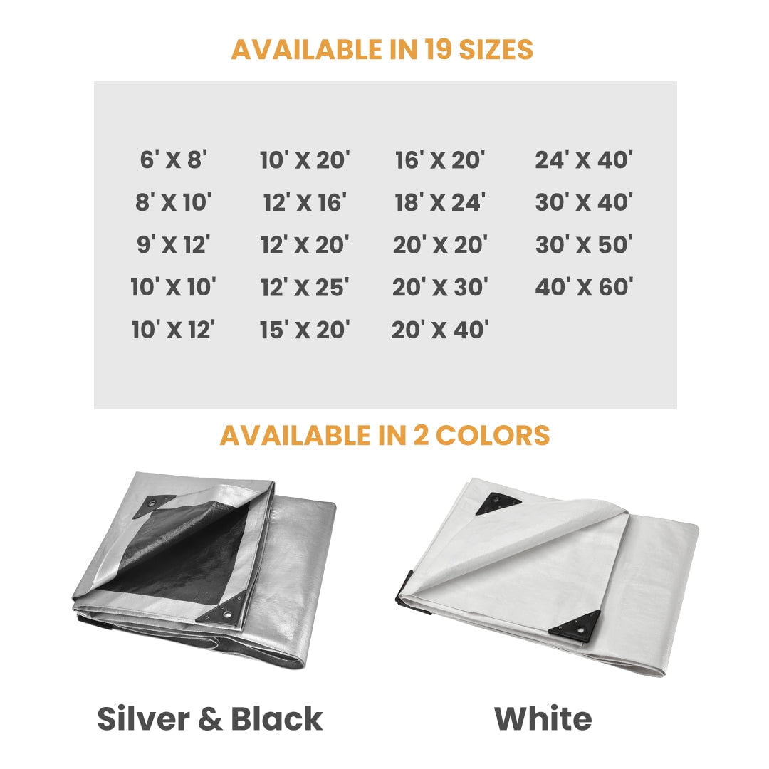 TIGHTLY WOVEN FABRIC: Durable and lightweight tarp is made from high-density, tightly woven, made-to-last polyethylene fibers and woven into fabric which is then laminated on both sides. Available in 16 Mil (8 oz. per square yard, 16 x 16 weave count) and 10 Mil (5.9 oz. per square yard, 14 x 14 weave count) Thickness. We have used high strength yarn to provide EXTRA UV PROTECTION against harmful sunrays and fading. SUPER HEAVY DUTY & EXTRA REINFORCED: This tarp is extra reinforced for greater durability and superior strength. The corners and edges are reinforced by hemming the edges with poly twine rope/ border piping which makes it tear resistant. All seams and hems are heat sealed. These four season poly tarps are designed to provide all-weather ultimate protection from wind, rain, sunlight, UV rays and can withstand any weather condition MULTI-FUNCTIONAL FEATURES: We use rustproof brass grommets spaced every 18 inches or 1.5 feet apart, all around and at each corner allowing the tarps to be tied down easily and secured in a robust manner no matter how big a size. We have used plastic capped bar on all corners with additional rivets to make it extra sturdy. Extra reinforced corners will reduce wear on tarp, prevent grommet pull-out due to high winds or extreme strapping conditions and extend the life of your tarp MULTIPLE SIZES: Our tarps come in over 20 sizes ranging from 6×8 to 40×60. These poly tarps are thick waterproof, UV resistant, rip and tear resistant, and shrink proof. These are four season heavy duty tarps for everyday use as it provides protection against heavy rain and UV rays or wherever you need to keep valuables covered, can withstand the elements outdoors MULTIPURPOSE USE: These tarps are used to cover/shelter boats, truck, cars, motor vehicles, industrial or farm equipment, outdoor patio furniture, barbecue grills, backyard pool, wood piles, campers for ultimate protection. They can also be used as an emergency roof patch material or building material for homeowners, construction workers/sites. They can be used as a drop cloth while painting or polishing. Can be used outdoors for camping, hunting, turn it into a canopy or a tent fly