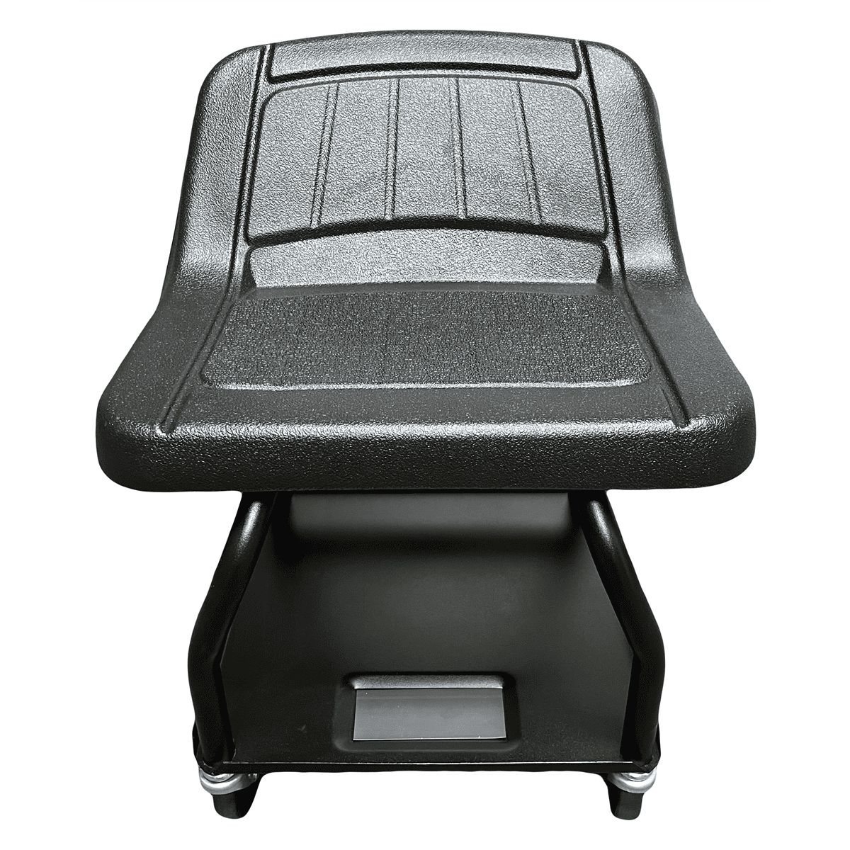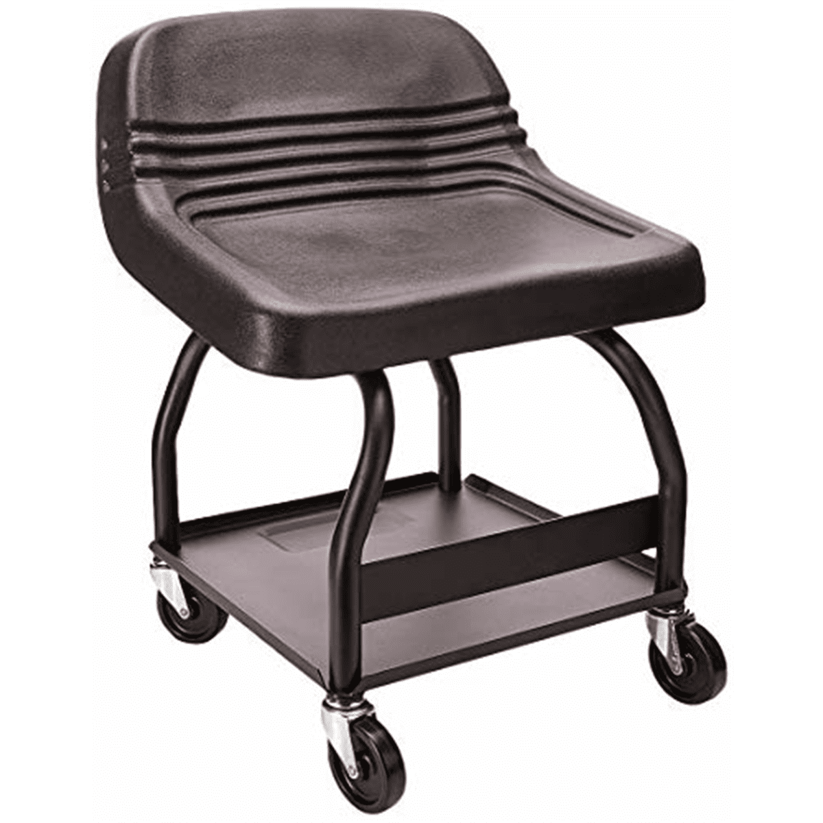Whiteside Machine Company 4-Wheel Professional Mechanic’s Seat Features and Benefits: Wide base for better stability 15″ x 15″ Storage tray with magnetic strip to hold small parts and tools Heavy duty 1″ steel tube frame 3″ Oil-resistant swivel rollers Large high back padded for comfort Wide base for better stability